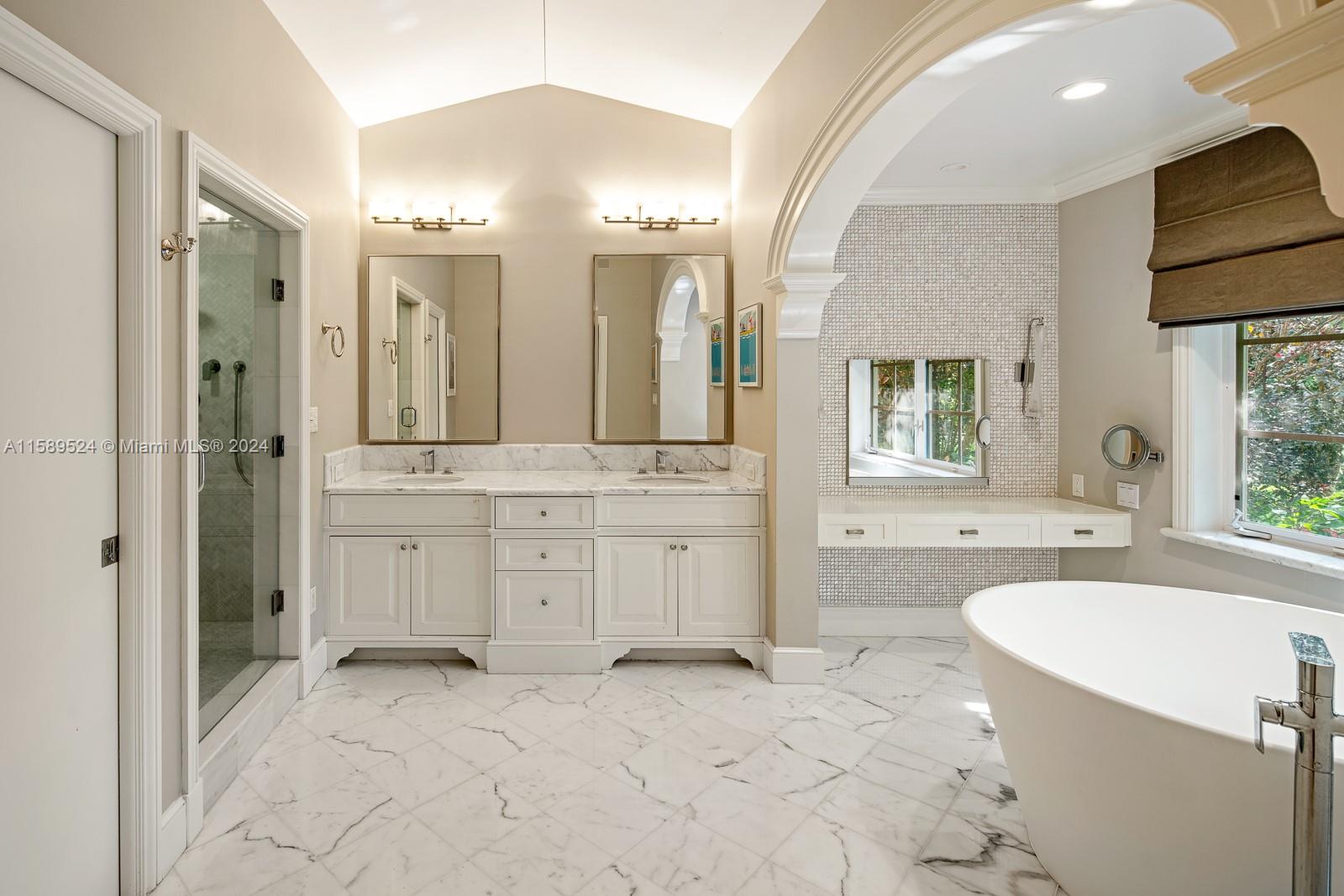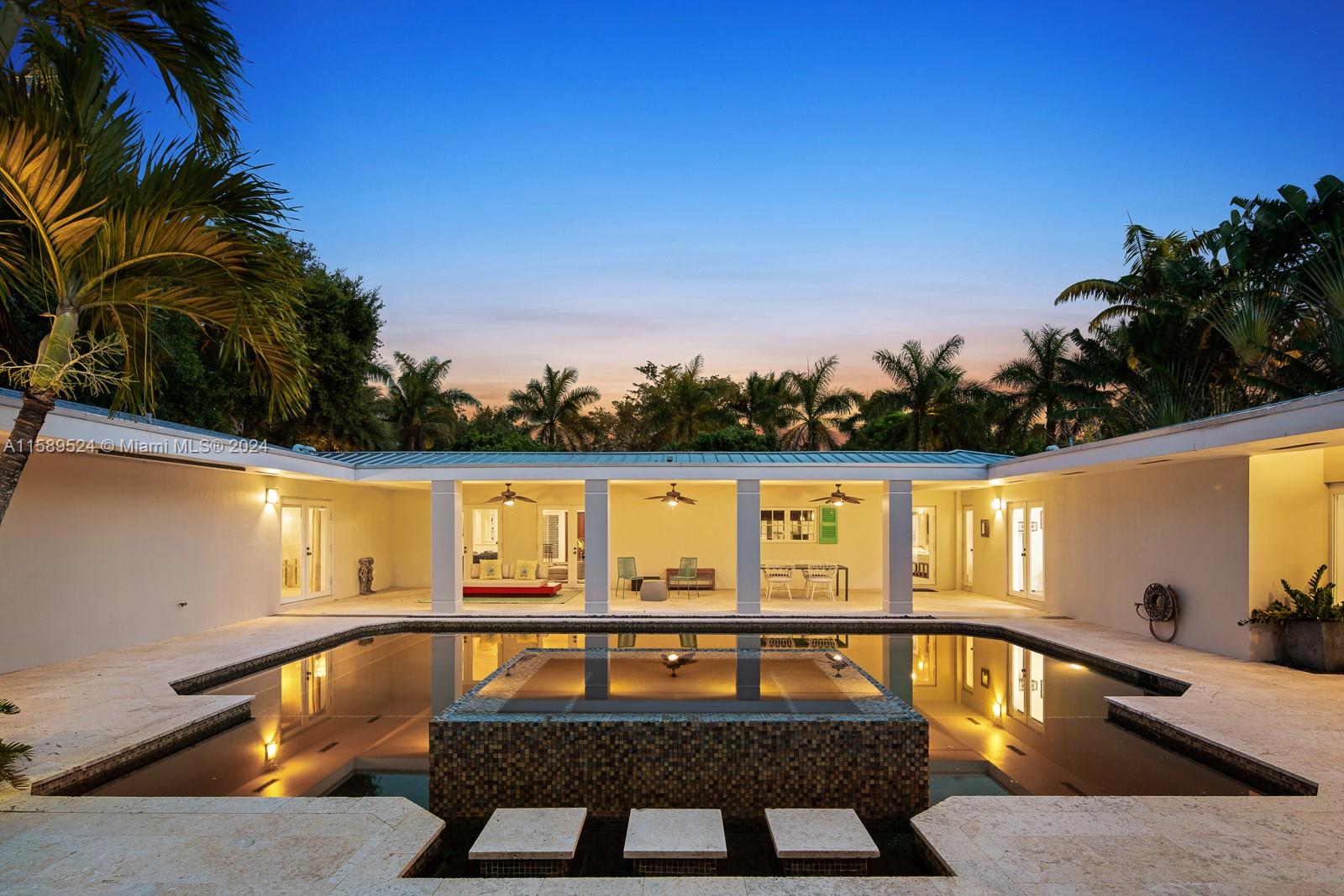 This North Pinecrest walled & gated 1-story resort-style estate truly has it all: 4919 gross living area per appraisal on a 35,109 sq. ft. lot, 4/4, a car collector's dream air-conditioned 4-car-garage with lift, security system, work-station & loft, luxurious poolside primary suite w/ double walk-in closets, master chef's kitchen w/ top-of-the-line appliances & newly installed quartz counters, dramatic high-ceilinged main living room & formal dining room, new 4th bedroom & laundry room added in 2023, capacious covered terrace w/fully outfitted summer kitchen, flex space: gym/yoga studio or air conditioned space for 2 cars, resort-style pool & spa, native plantings, koi pond, whole house generator & more! Public Schools are "A" schools: Pinecrest Elementary. & Palmetto High