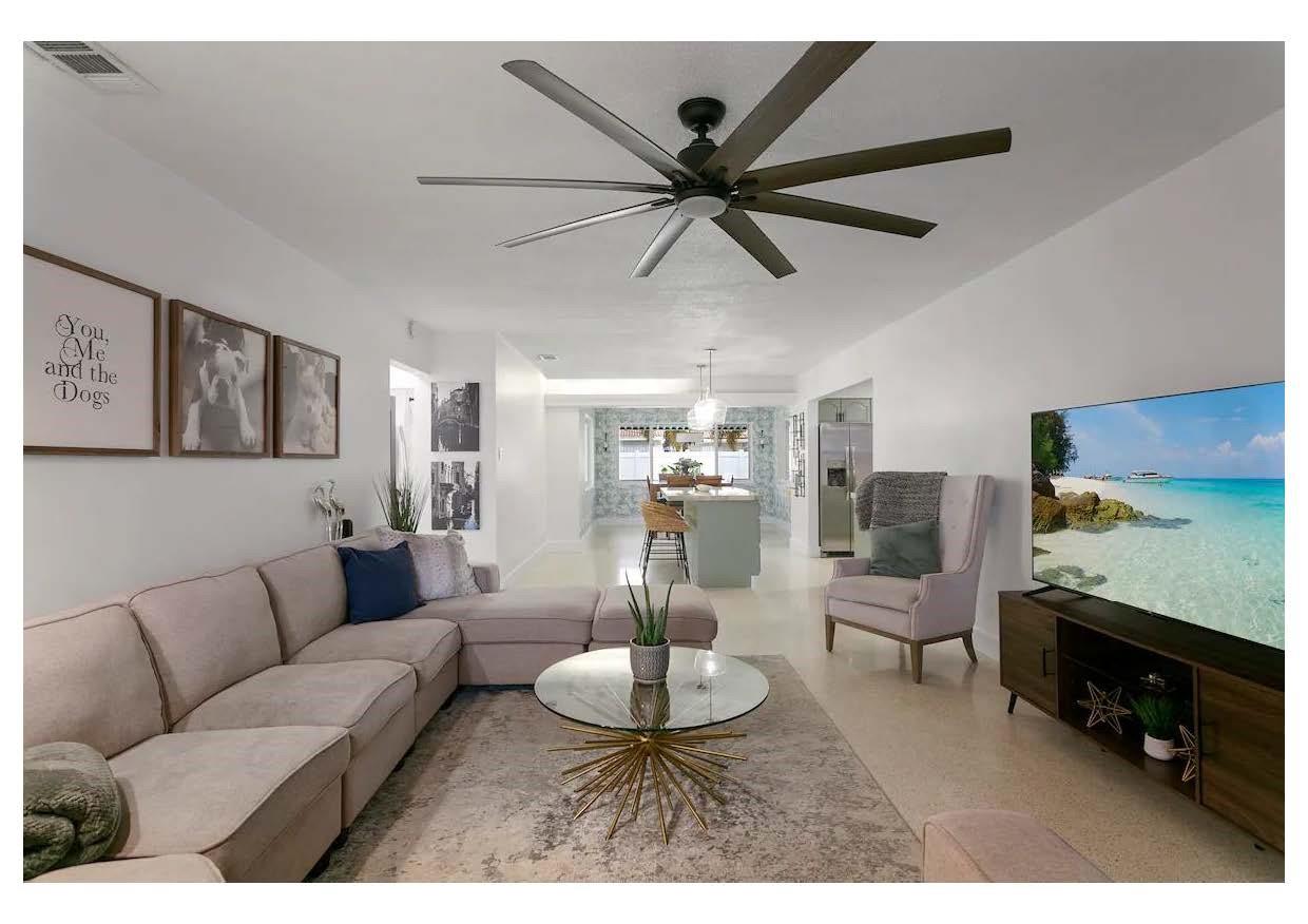 Step into easy living with this completely remodeled pool homes boasting an inviting open floor plan. The heart of the home, the charming chef's kitchen, sits centrally, perfect for entertaining guests around the large island. Outside, discover your personal oasis with a pool area featuring a tiki hut seating area and an outdoor TV, ideal for enjoying some sunshine or hosting pool gatherings. You can also rest easy knowing this home is equipped with a brand new roof and impact windows and doors. The home also offer new bathrooms and other numerous upgrades throughout, creating a truly modern and sophisticated retreat. Situated close to all that South Florida has to offer this home is truly worth your attention.