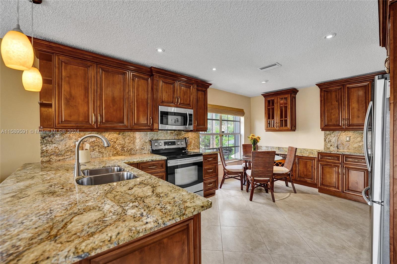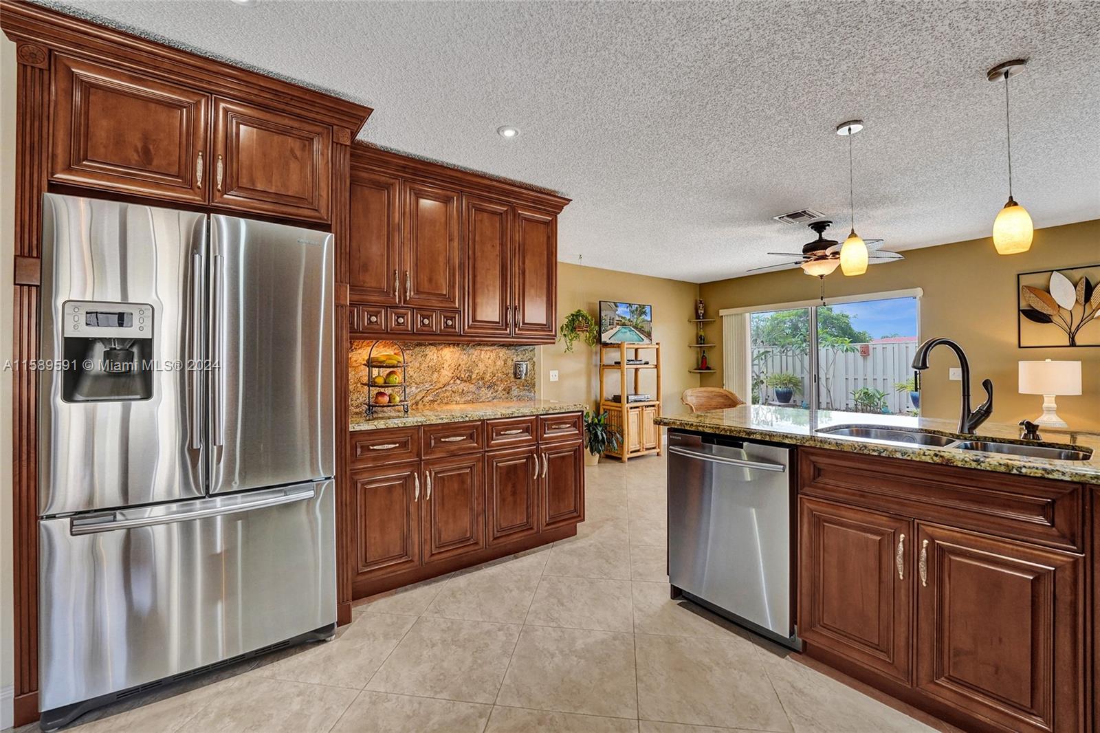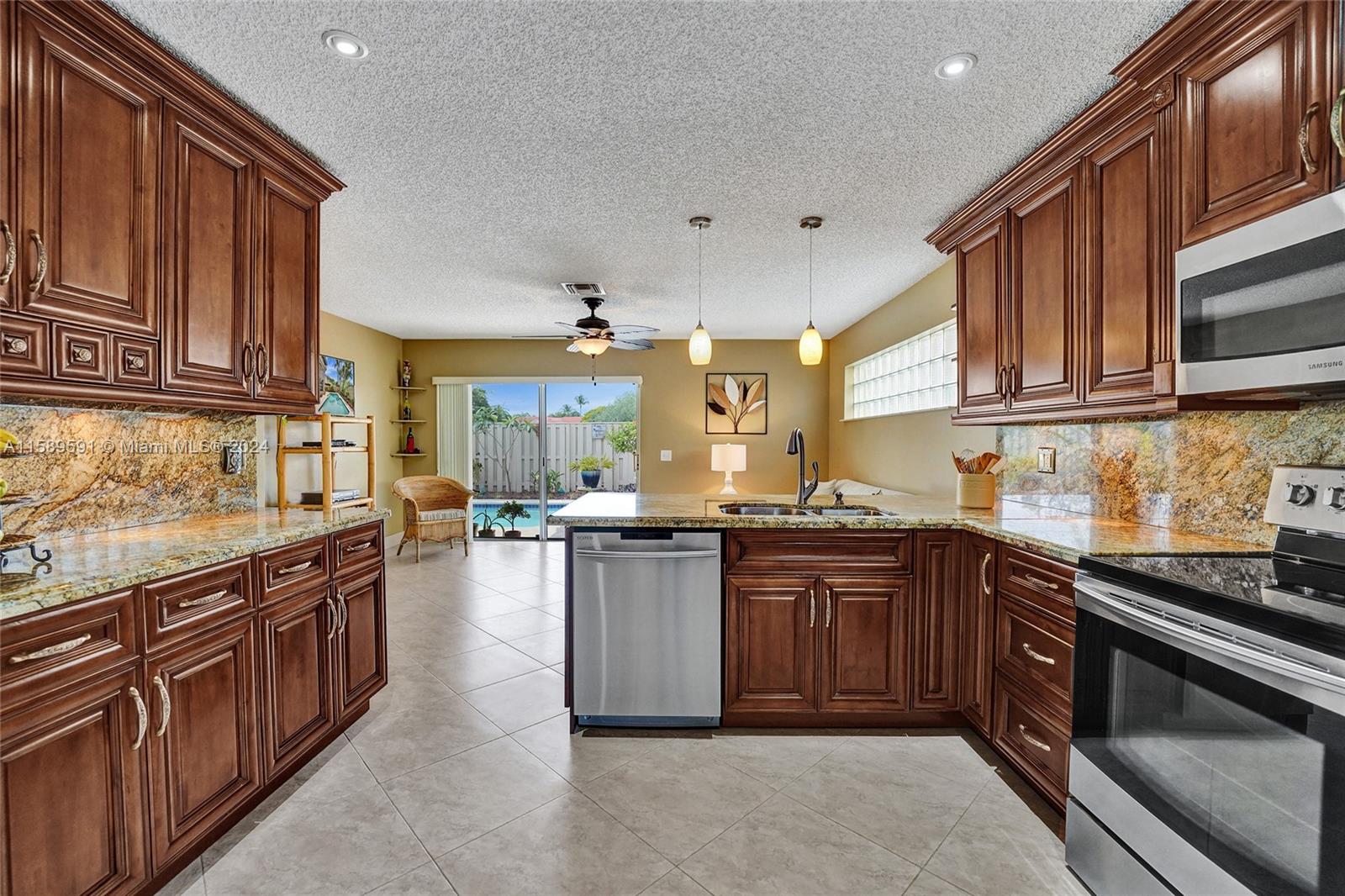 This home is a gem! Located in the sought-after Embassy Lakes, it boasts 4 bedrooms and 3.5 bathrooms, offering ample space for comfortable living. The remodeled open eat in kitchen offers stainless steel appliances, wood cabinetry, and granite countertops, it features the same neutral tile throughout the entire house. The beautifully landscaped backyard with a heated pool & salt water system is ideal for relaxing and unwinding outdoors. Pride of ownership is apparent. Excellent schools & conveniently located shopping centers making it an even more attractive option for families looking for their dream home. Garage is being used as a game room & can easily be converted back. Community clubhouse for parties, gym, pool, basketball courts, tennis, pickleball and volleyball to name a few!
