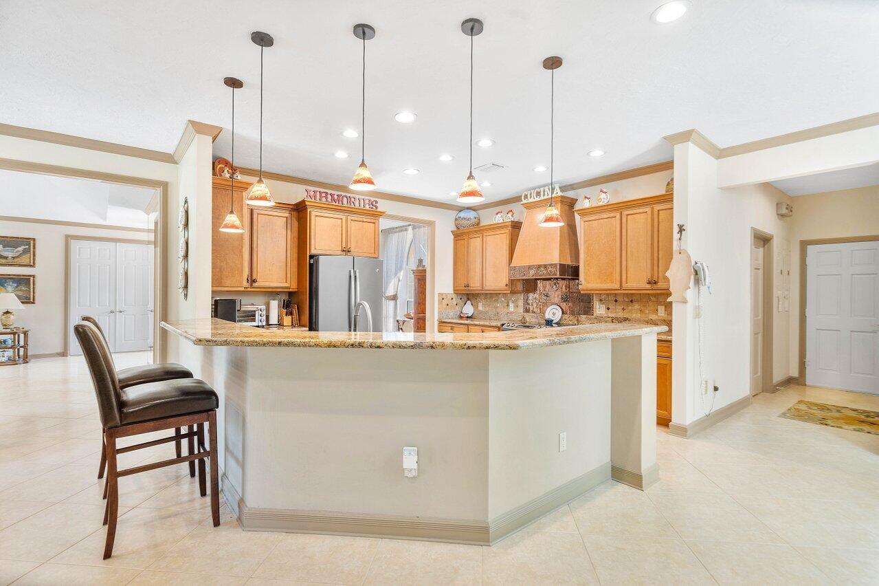 TOTALLY UPDATED! 3BR DEN/OFFICE, NEW GOURMET KITCH. W/CUST. WOOD CABINETS, GRANITE COUNTERS, 20X20 TILE FLRS, NEW FRENCH DOORS TO PATIO, PRIVATE WATER & GOLF VIEW, SUMMER KITCH, MAST. STE. W/LG WALK-IN CLOSET MARBLE BATH & NEW VANITIES. 2 GUEST BAR NEW. SELLER REQUIRES 24 HOUR NOTICE.