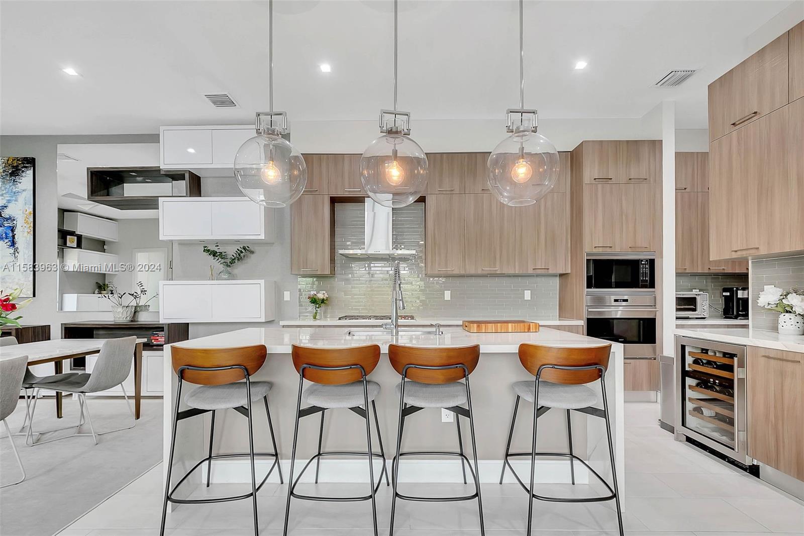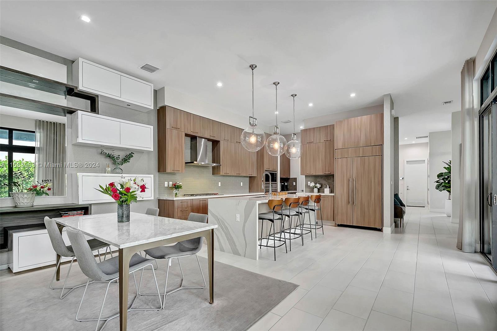 Contemporary executive home in Doral's premier community - Canarias! Easy access to Downtown Doral for shopping, dining and work! Professionally decorated and finished with custom closets, decorative built-in's, styish wall finishes, summer kitchen w/patio and turf area, and glass-encased office or studio in master suite. Chef's kitchen features Wolf & Sub Zero appliances, and opens to a vaulted family room with views to the pool. Ceiling heights of approximately 11 feet downstairs and 10 feet on second level. Upstairs den area provides for added flexibility and front bedroom features a private balcony. Master bedroom offers generous proportions all around. Precedent access to Downtown Doral Charter Elementary School.