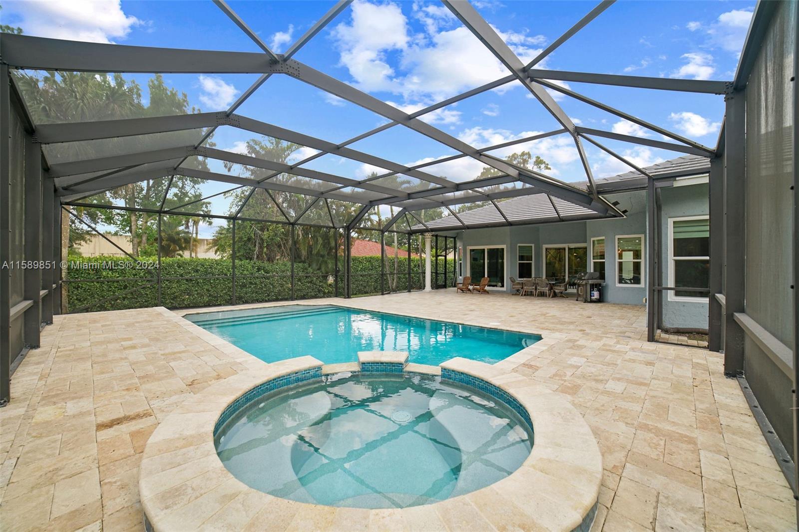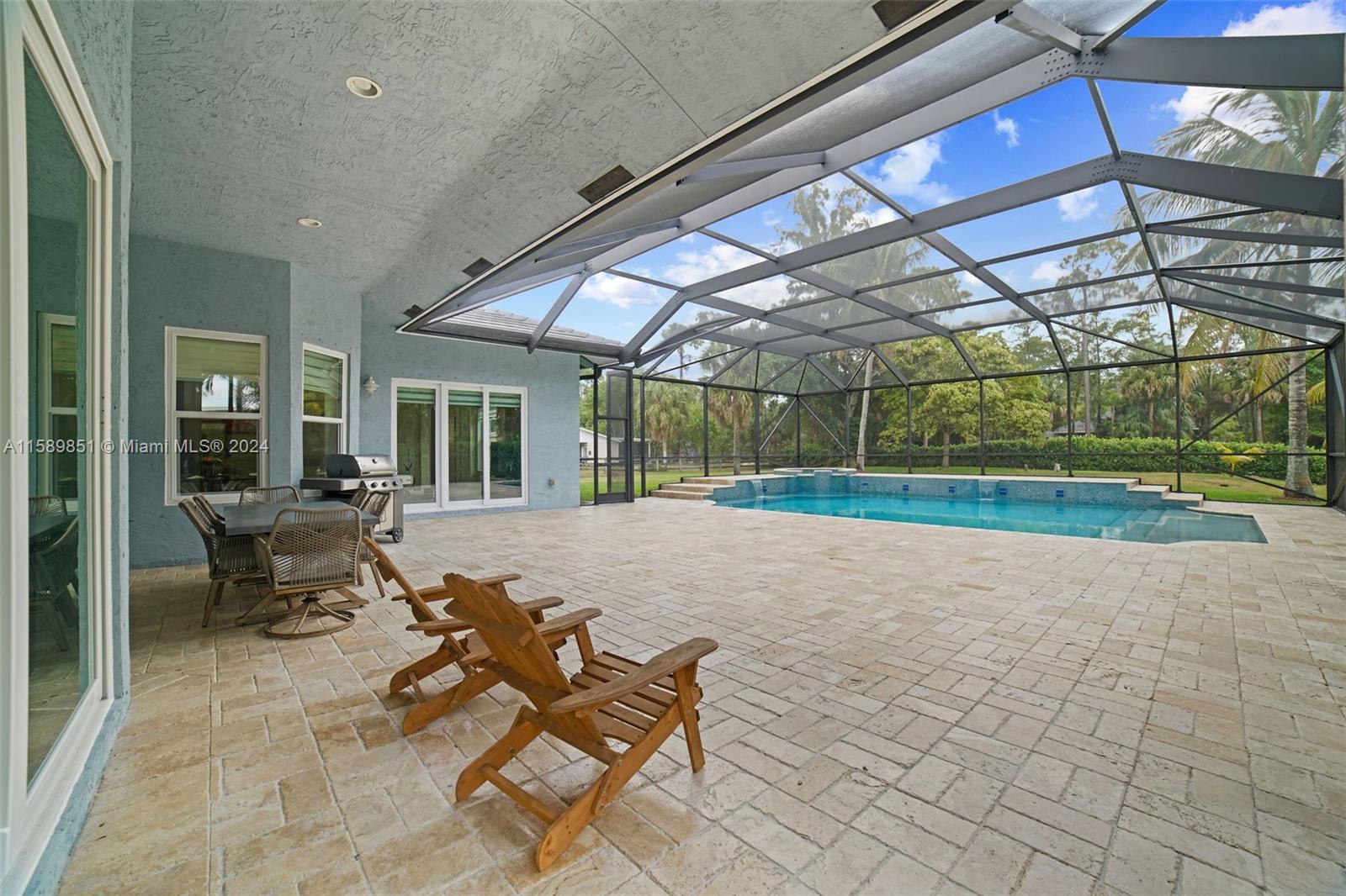 Discover luxury living on a 1-acre lot in Pine Tree Estates. This custom-built home features an open floor plan with abundant natural light, a gourmet kitchen with high-end appliances, and a serene master suite with a spa-like bath. The outdoor oasis includes a screened-in pool, spa, and expansive patio perfect for entertaining. Enjoy the equestrian-friendly space, no HOA restrictions, and prime location near top-rated schools, shopping, and dining. Meticulously landscaped and energy-efficient, this property offers tranquility and modern conveniences.