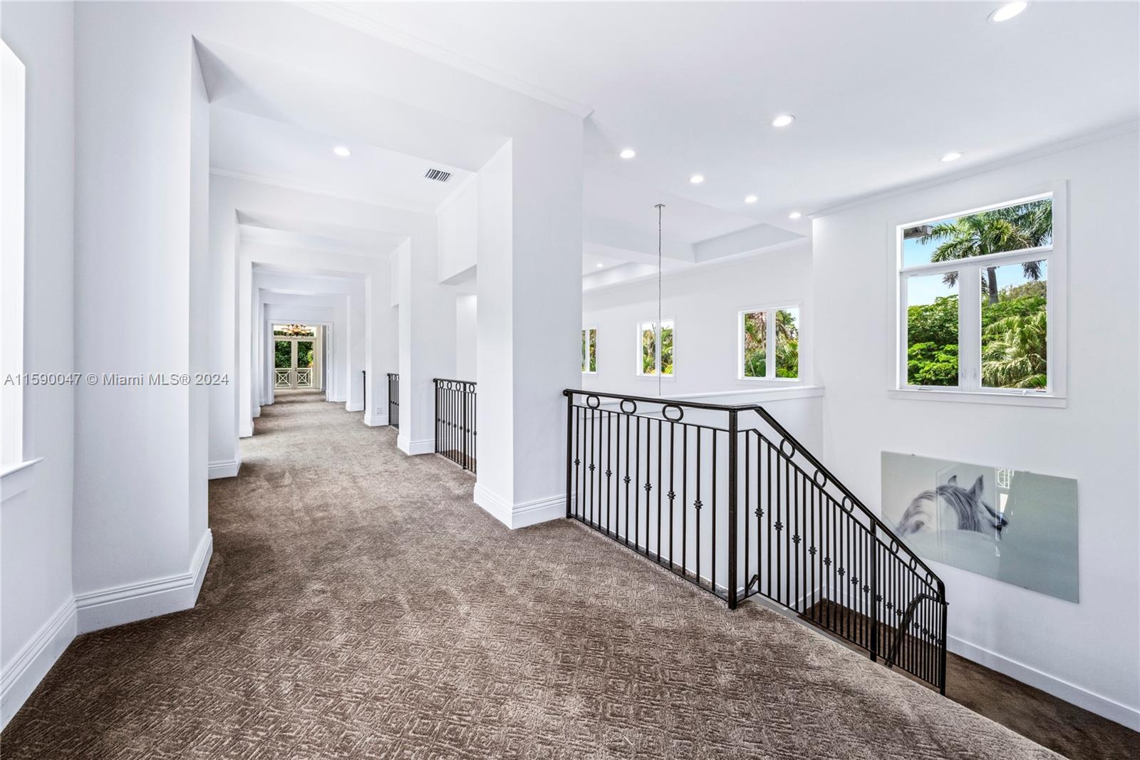 Enter through a private gate to find luxury at every turn. The grand living room boasts 28-foot ceilings and elegant pine floors throughout, and the gourmet kitchen impresses with a 12-foot island, 6-burner gas stove, Sub-Zero refrigerator, dual Wolf ovens, and a walk-in pantry. Set on a meticulously landscaped 1.3-acre lot, the 9,000+ square foot estate features 6 beds, 6 baths, an office, and a 4-car garage; cypress ceilings, a Dominican coral deck, and a 30-foot outdoor gas fireplace create a magical ambiance. There are multiple terraces, 2 outdoor kitchens, 5 A/C units, 2 tankless water heaters, a metal roof, impact glass, a guest house, and maid quarters. A brilliant combination of impeccable craftsmanship, timeless architecture & incredible finishes.