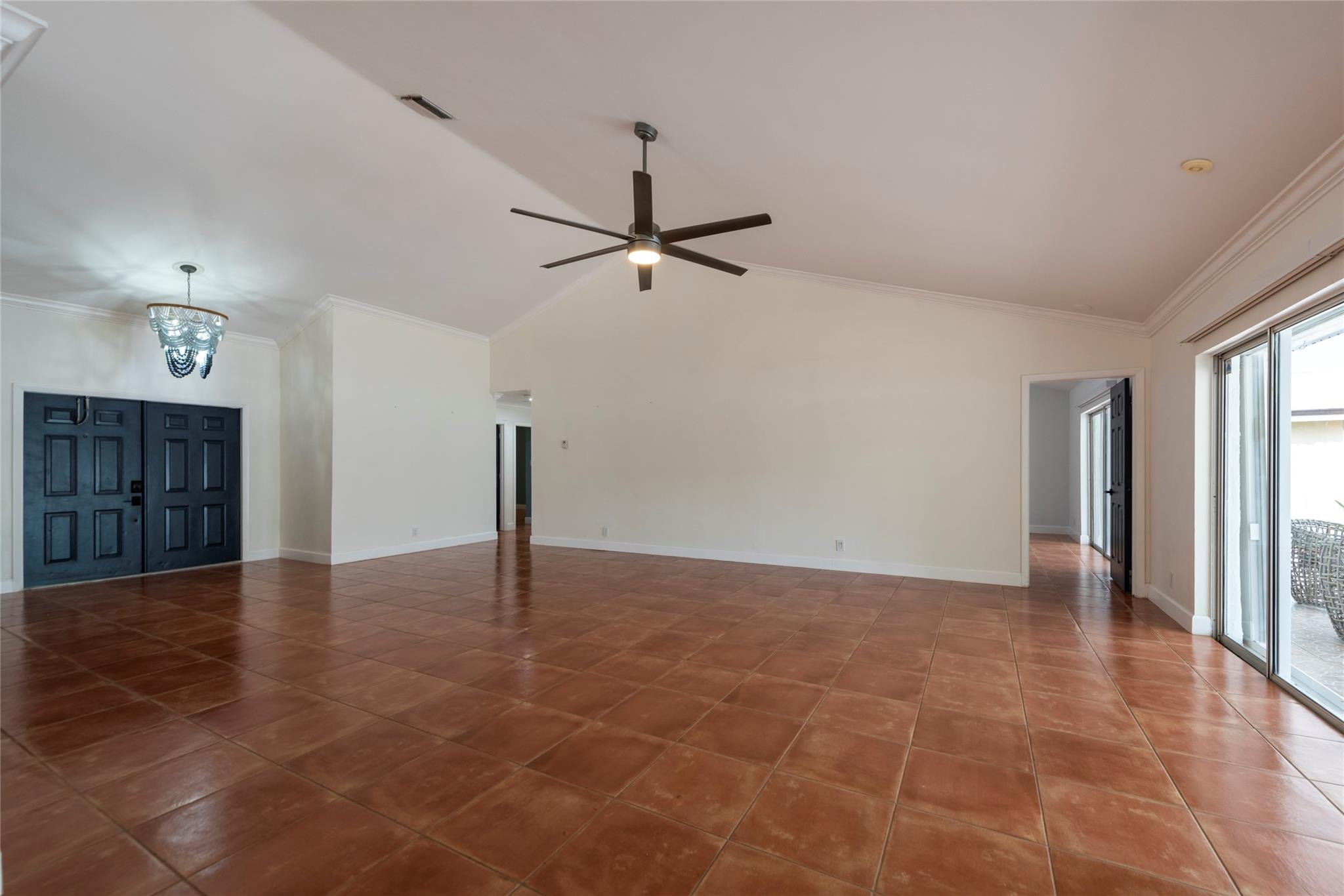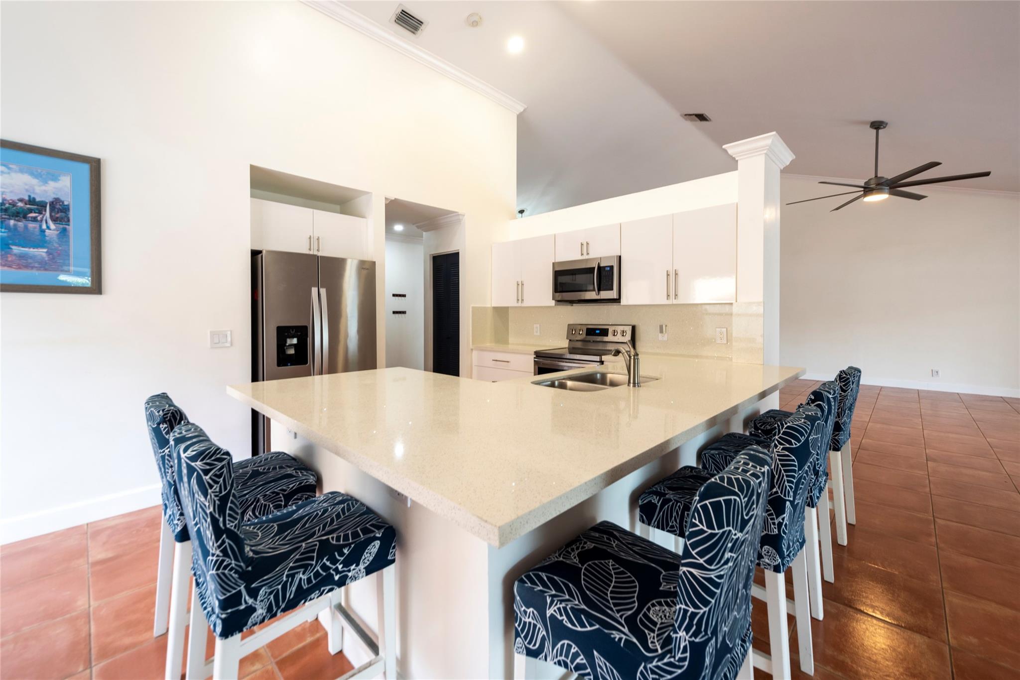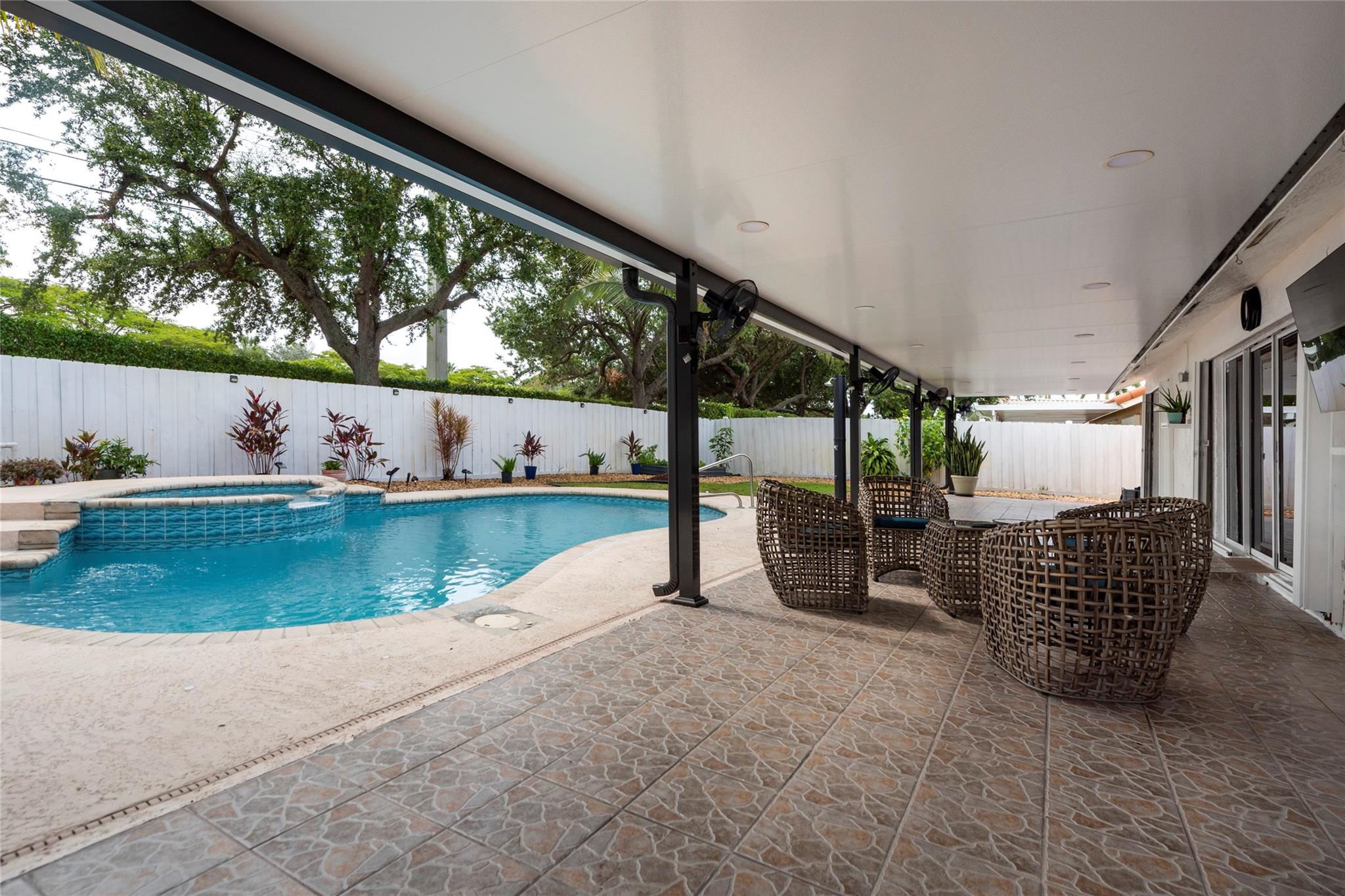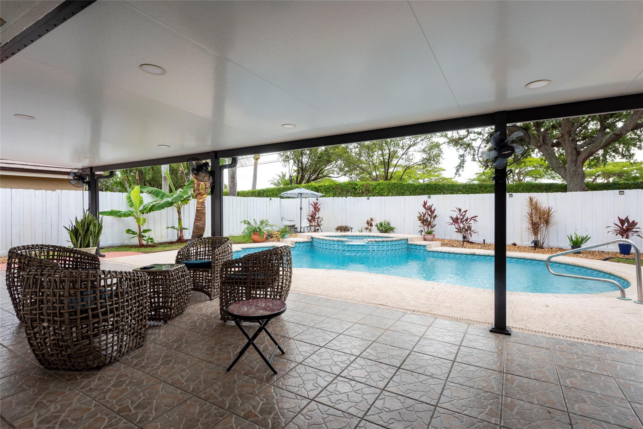 Welcome home to this spacious and open 3+2+2 in Spring Valley. This single story home features an open concept living area with vaulted ceilings and split bedrooms. The full length open patio (2023) gives complete access to the pool and the beautiful yard for true indoor/outdoor living! The generous primary bedroom overlooks the pool and features dual walk-in closets. The primary bath features a separate soaking tub, walk in shower and dual sinks. The kitchen features all white cabinets with quartz countertops with new tile flooring throughout. New roof in 2021, brand new electric blinds and accordion shutters, this home checks all the boxes! Close to excellent shopping, restaurants and major transportation routes, the community features tennis courts, a playground and dog walking areas!