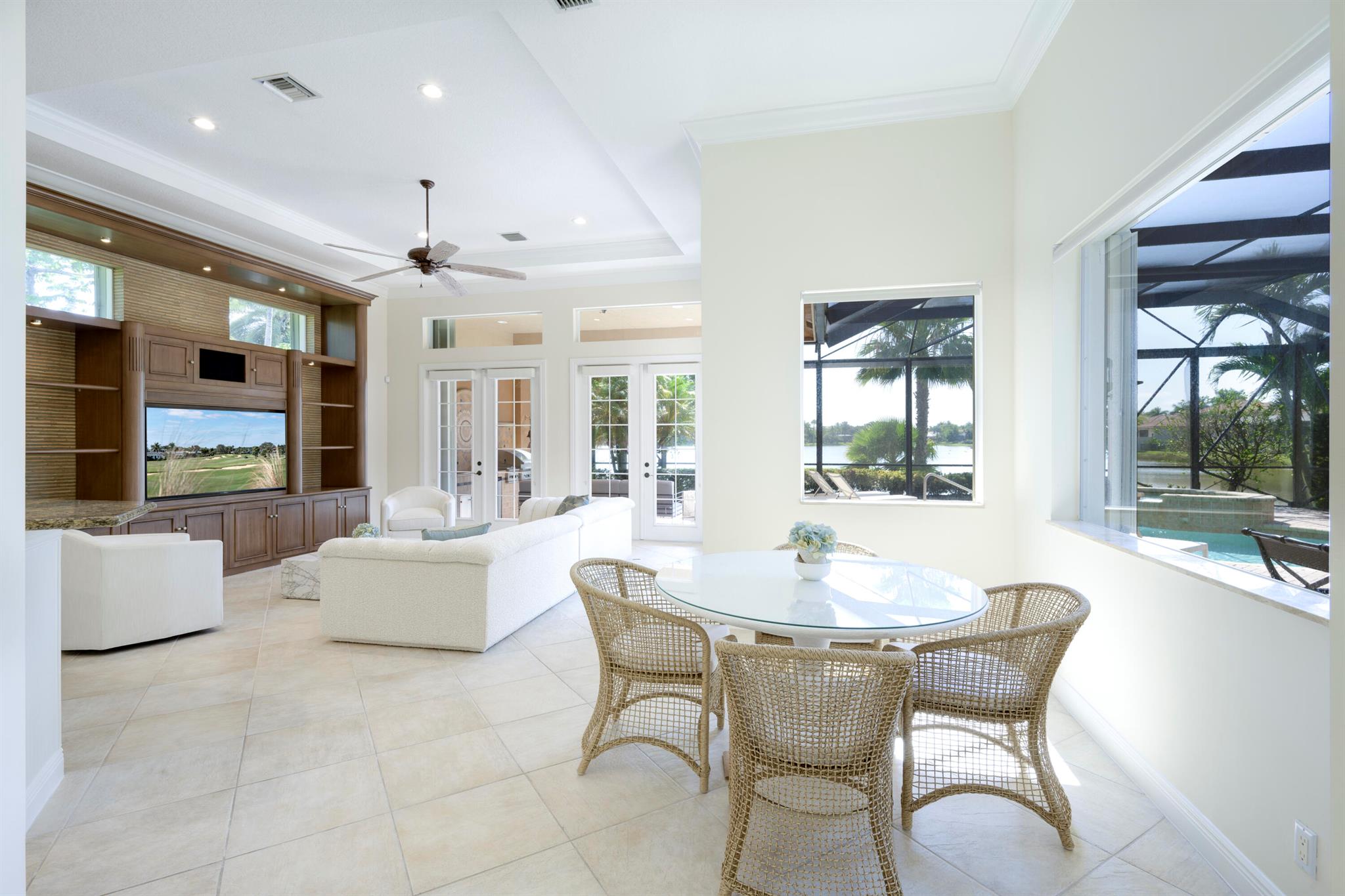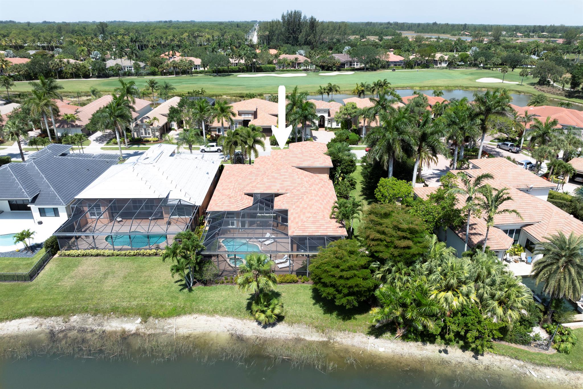 PREMIER GOLF MEMBERSHIP AVAILABLE! Spectacular estate home offering many upgrades with an unbelievably serene long lake view. This home offers 5br plus den and 4.5 baths. Spacious kitchen has been upgraded with ALL NEW S/S appliances (2023) to include range hood and gas stove. Large walk-in pantry with custom shelving. Open dining room with separate butler's pantry for easy prep and additional storage. Expansive living room area greets you upon entering displaying phenomenal water views. Elegant first floor primary bath has been redesigned to include NEW (2023) cabinets and countertops, his/her sinks and closet for extra storage. 2 a/c's 2023, 3rd AC unit 2021. Pool heater and filter 2023. Newly screened lanai . New interior paint (2023) and exterior paint (2025).