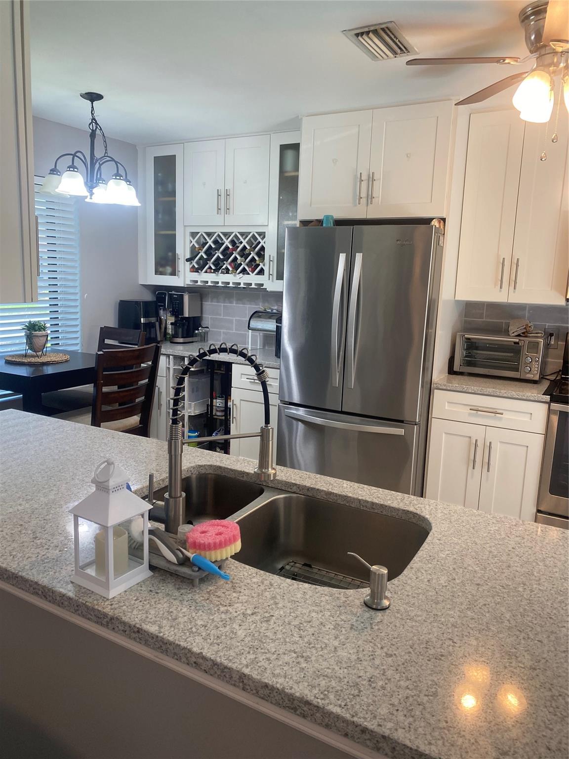 Great family neighborhood in West Sunrise. This home includes a newly remodeled kitchen with Quartz counter tops, white cabinets and stainless steel appliances and a breakfast area. Freshly painted, separate laundry room with lots of storage, updated elect panel, luxury laminate flooring, Large fenced in back yard, low HOA fees.