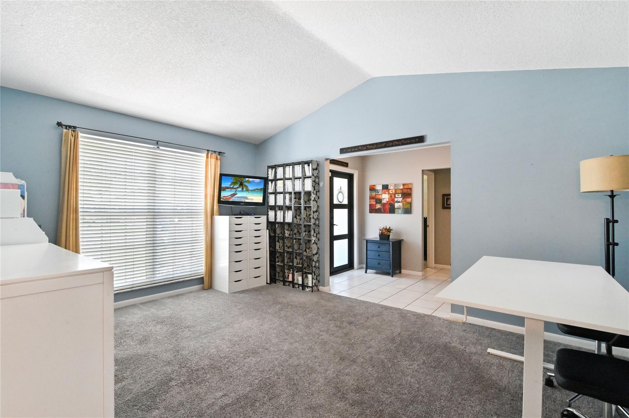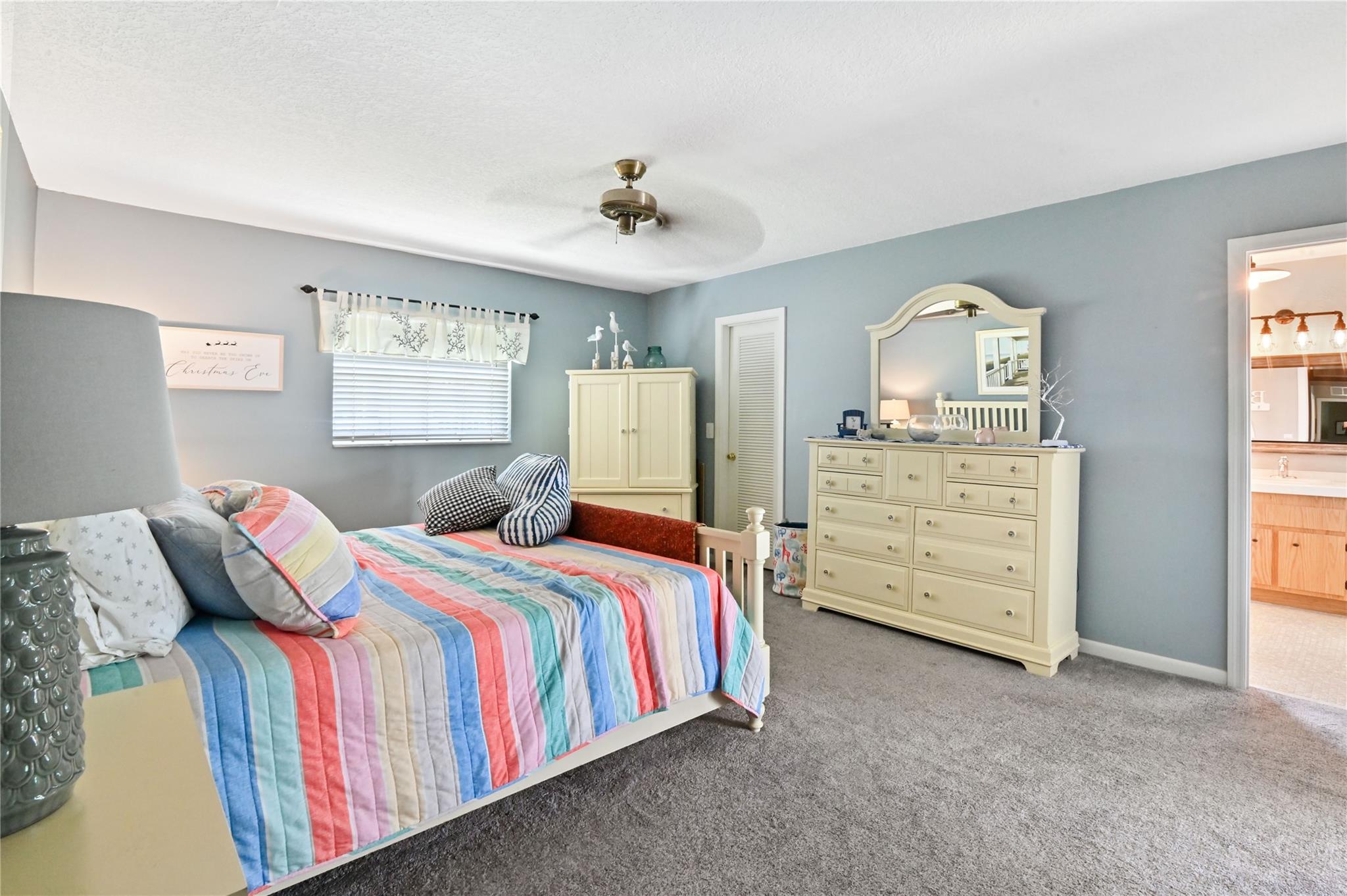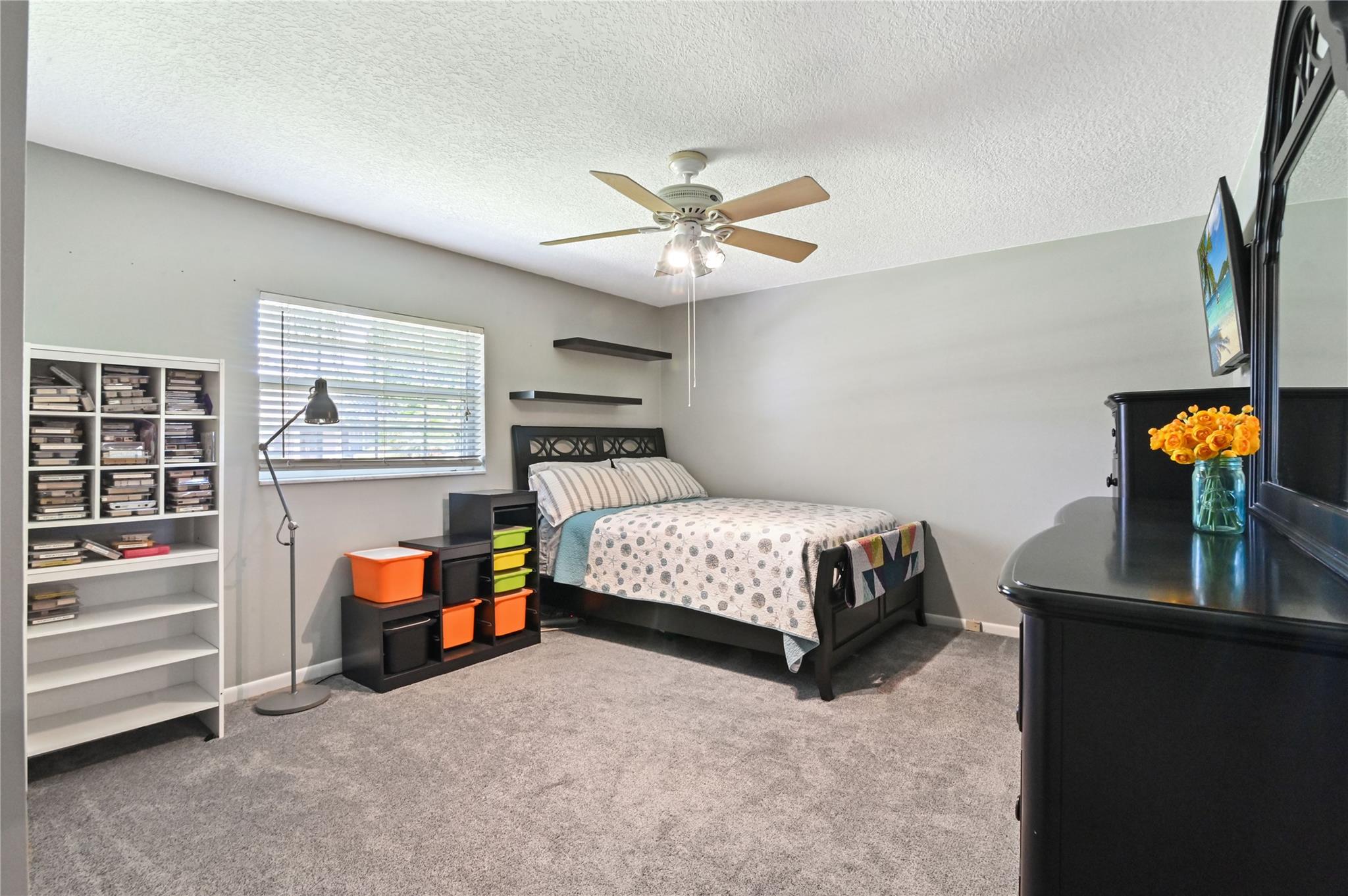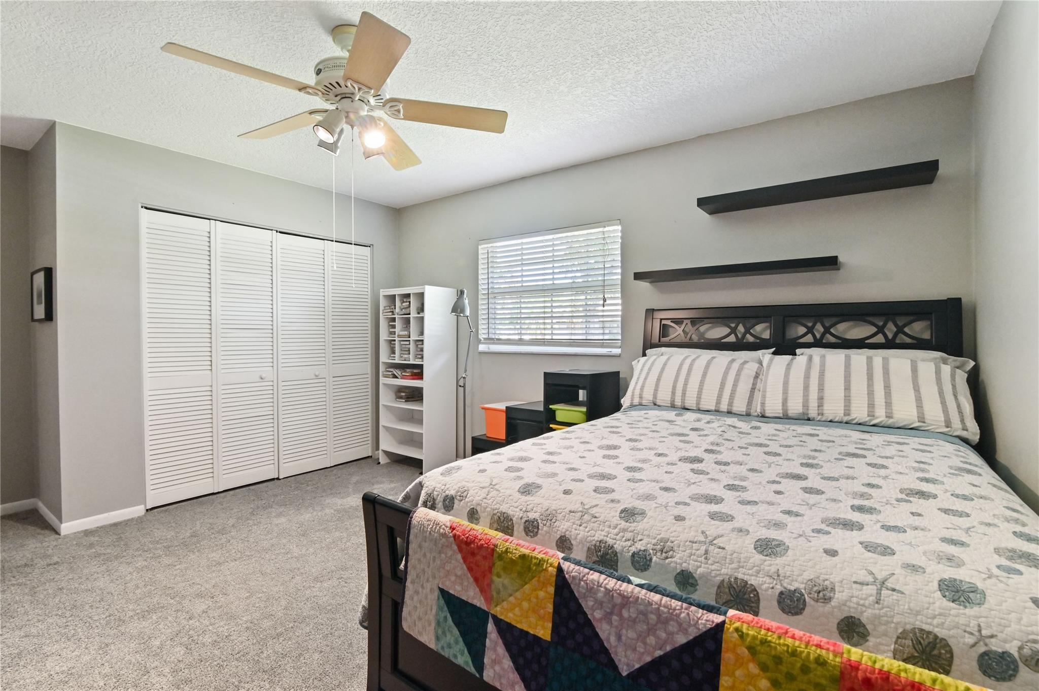 Brand new roof being installed on this beautiful 3 bdrm 2 bath sparkling pool and patio oasis fully screened with 2 car garage! This move-in ready gem offers wood kitchen cabinets,quartz counters,s/s appliances, smooth top range, built in micro,High Hat lighting,indoor utility rm w/pantry. Family room flows out to pool/patio with impact sliding glass doors. Fenced in dog run area off pool. Large primary suite w/walk-in closet impact sliding glass door. Primary cabana bath has shower only and impact door & window. Two generous secondary bedrooms with good size closets. Knockdown ceilings thru-out. Impact entry door and hurricane shutters thru-out. Located on over a quarter acre lot. Freshly painted exterior. Don't miss your chance to make this dream home yours! No HOA!