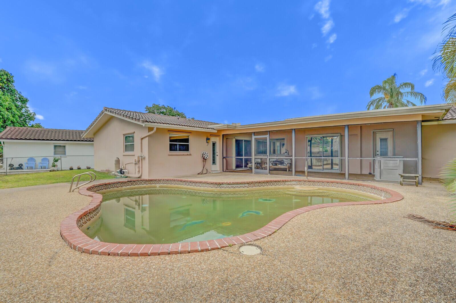 Welcome to your new home in the heart of Coral Springs! While this home is in need of some TLC, it presents an exciting opportunity for DIY enthusiasts or handy people to customize it to their liking. This spacious property boasts 4 bedrooms and 3 bathrooms, perfect for accommodating the needs of everyone. The kitchen features newer cabinetry, offering ample storage space for all your culinary essentials. Outside, the oversized fenced yard beckons for outdoor gatherings and playtime, complete with a pool and expansive patio area. It is worth noting that the pool has a leak, providing a project for those eager to restore it to its former glory. Roof is 2001.