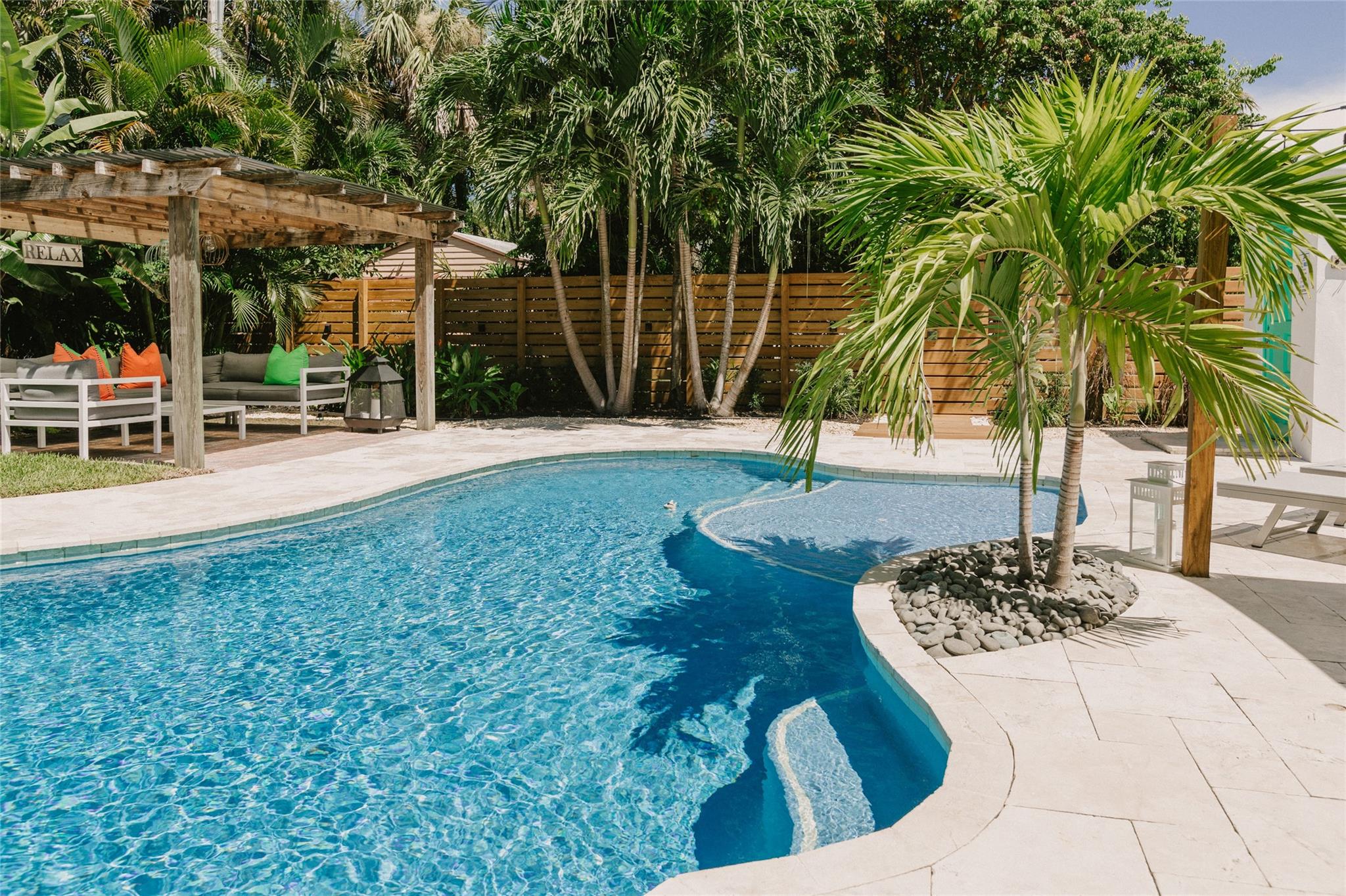 Beautiful mid-century 3-bedroom, 2-bath home in the highly desirable Victoria Park. Tastefully remodeled and established as a 5-star vacation rental for the past 5 years, this property is offered fully furnished and equipped. It features impact windows and doors, a newer barrel roof, terrazzo floors, and an updated kitchen with quartz countertops and white cabinetry. Ample storage throughout. The lush, tropical landscaped, fenced backyard boasts a free-form pool, outdoor shower, barbecue gazebo, pergola, and generous seating areas, perfect for relaxation and entertaining. Enjoy the fantastic location, with close proximity to Las Olas, beaches, and stores. This versatile property is an excellent investment opportunity or a perfect primary home. Owner agent.