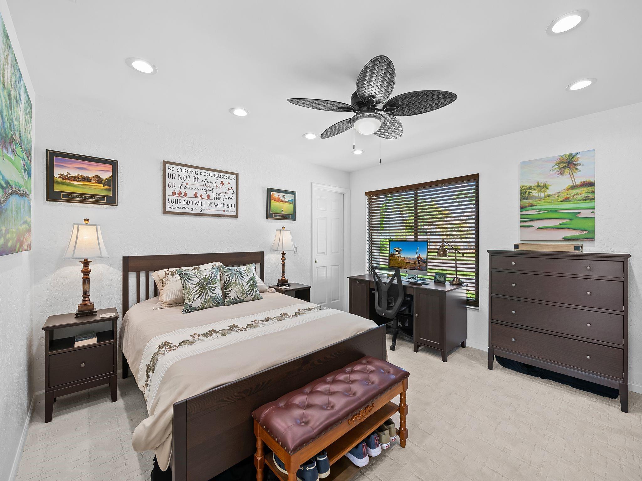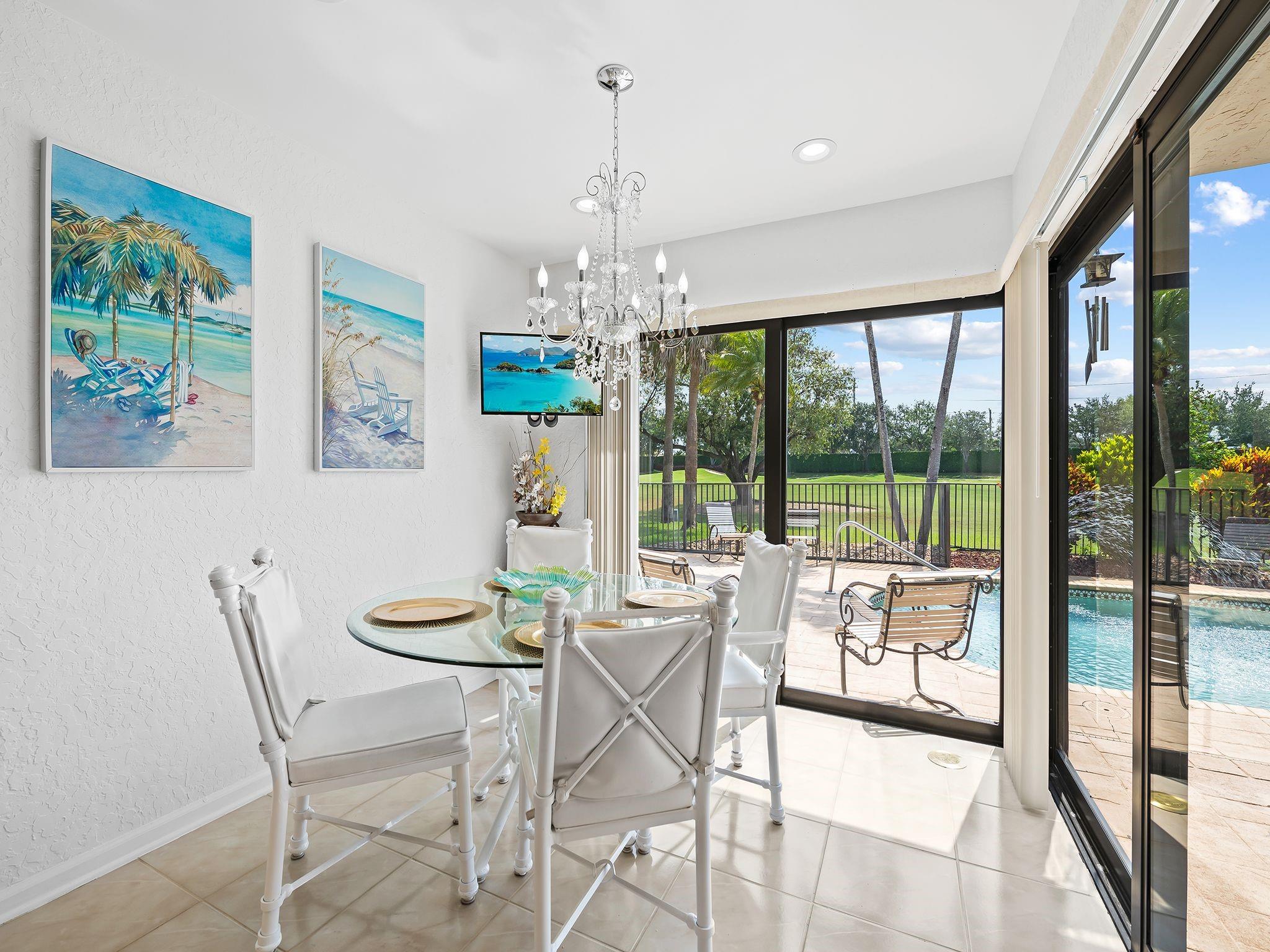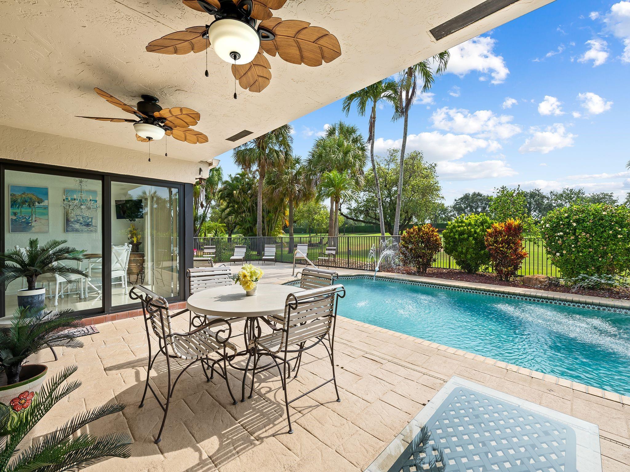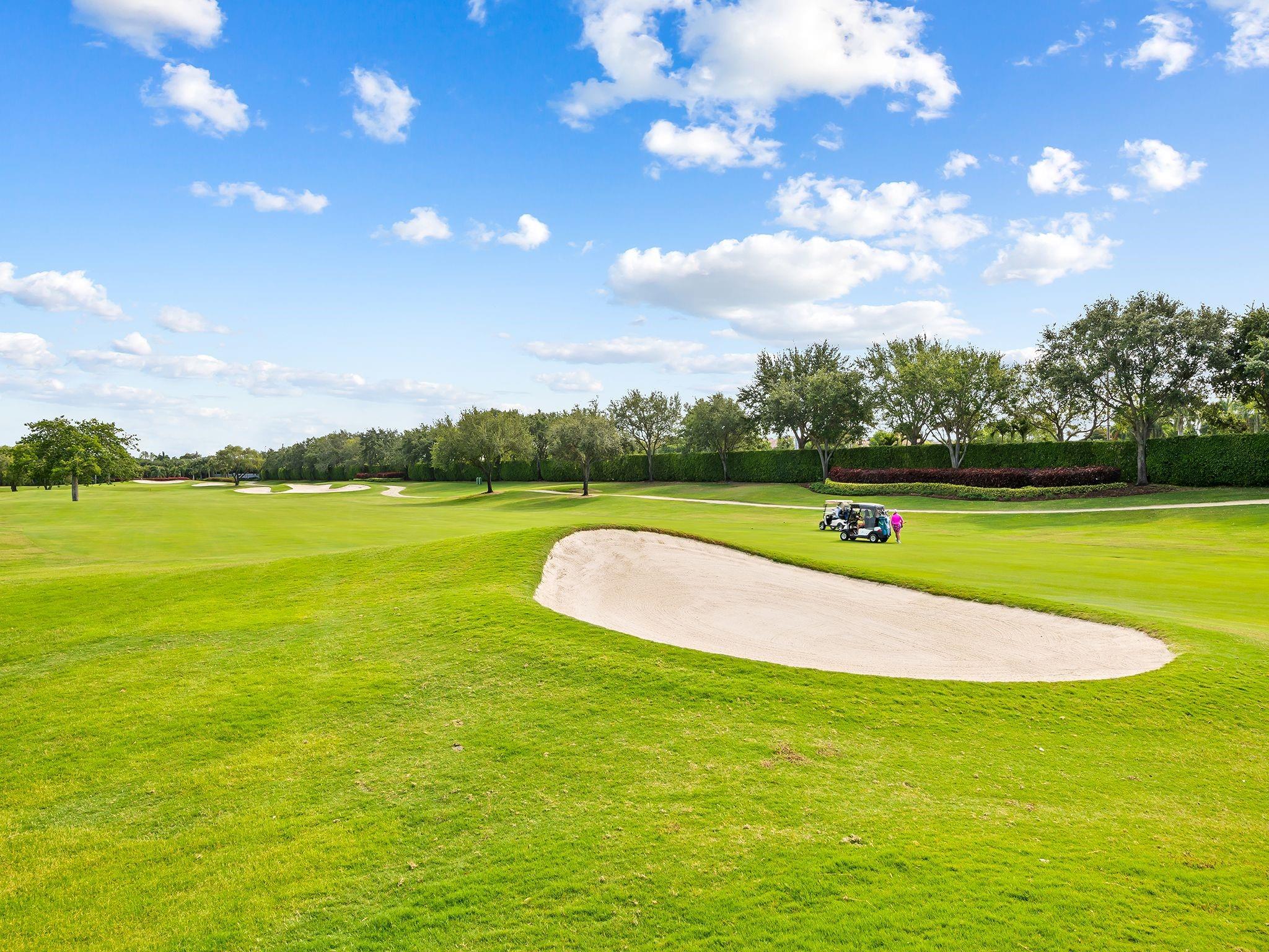 Beautiful home with an amazing golf course and pool views with a Resort Style Living in Boca Woods Country Club! Bright and spacious custom house features 4 bedrooms, 3 baths, vaulted ceilings, a desirable split bedroom floor plan, large living room, dining room, heated pool, two cars plus a golf cart garage, new electrical panels, updated smart garage door opener, two air conditioning units, Reme Halo LED whole home In-Duct air purifier for both A/C units (2023), impact windows/doors, updated alarm system, new sprinkler pump,2nd storage in garage attic, pool heater and a circular driveway. A fully and newly renovated Club House offer a fine and casual dining including two golf courses, tennis and pickleball courts, wellness center, card rooms, fitness center, spa, game room and pro-shop.