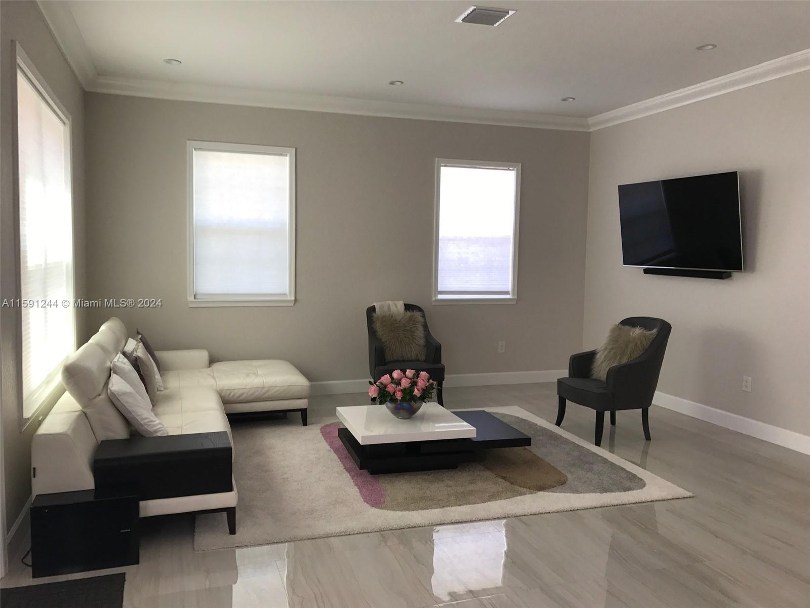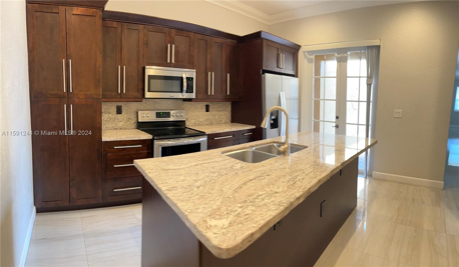Spectacular recently Remodeled biggest Townhouse at "Cobblestone". Gated Community. Ready to Move. 4 Bed/3 Bath/2 Car garage/2 paved Patios. Secuity Alarm installed. Main Room with 2 walk in closets and Balcony. All rooms with Lamps/Fans. One Room and Full Bath are downstairs with separate entrance by Back Patio. Lot of Space for storage. Exquisite Finishes with Porcelain on 1st Floor and Wood on Stairs and 2nd Floor. Kitchen with Stainless still Appliances, Granite Countertop, Custom Cabinetry Ready for Wine Lovers. All House with High Ceiling and Modern "Ceiling Light Reflectors". Space for a Home Office.Beautiful Community with pool, gym,tot lot with Pool, Gym, Tot Lots for Kids, and Landscape. Quick Access to expressways, Malls, Restaurants, Markets, Hospitals and Class "A" Schools