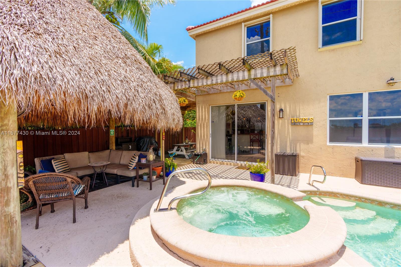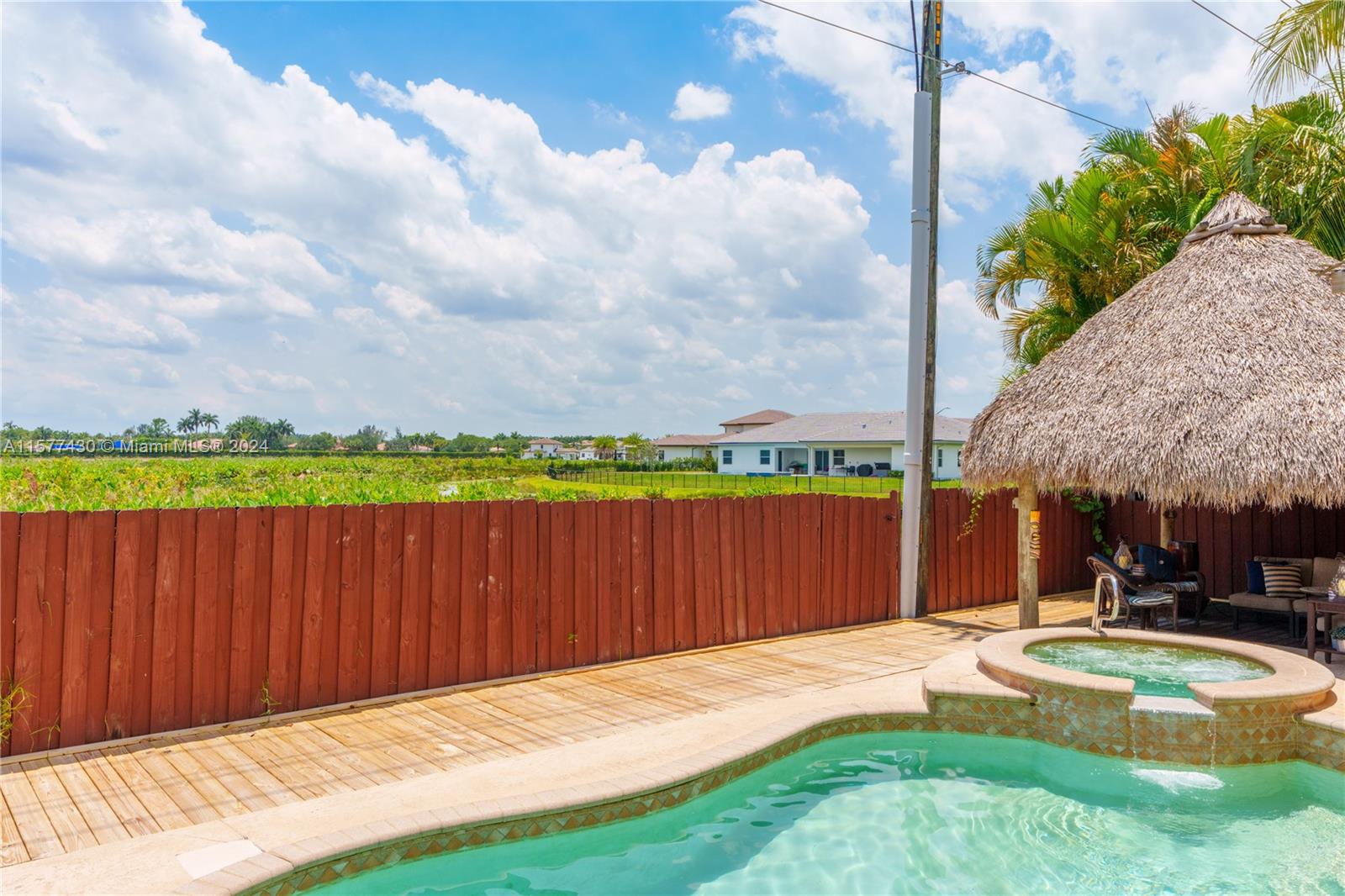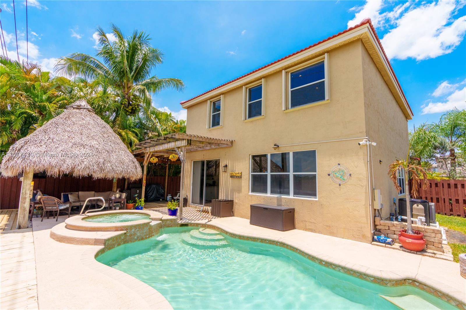 One of the best family-friendly communities in Davie at a family-friendly price with many updates. Move-in ready! Well maintained, comfortable 4-bed and 2.5 bath home with heated pool/spa and a BACKYARD BUILT FOR ENTERTAINING. Plus, a new barrel tile roof with transferable warranty, new 6’ x 50' wood pool deck, new pool/spa heater and pump, and a new Samsung refrigerator/freezer. There is a separate living/dining area plus a combined family room, updated chef's kitchen with a granite island and an informal eating area. The backyard has a large Tiki Hut wired for cable/electric and overlooks a protected nature preserve, which cannot be built upon. The garage has its own portable a/c and vent. Low HOA fees, community amenities, and excellent schools. Close to all major highways.