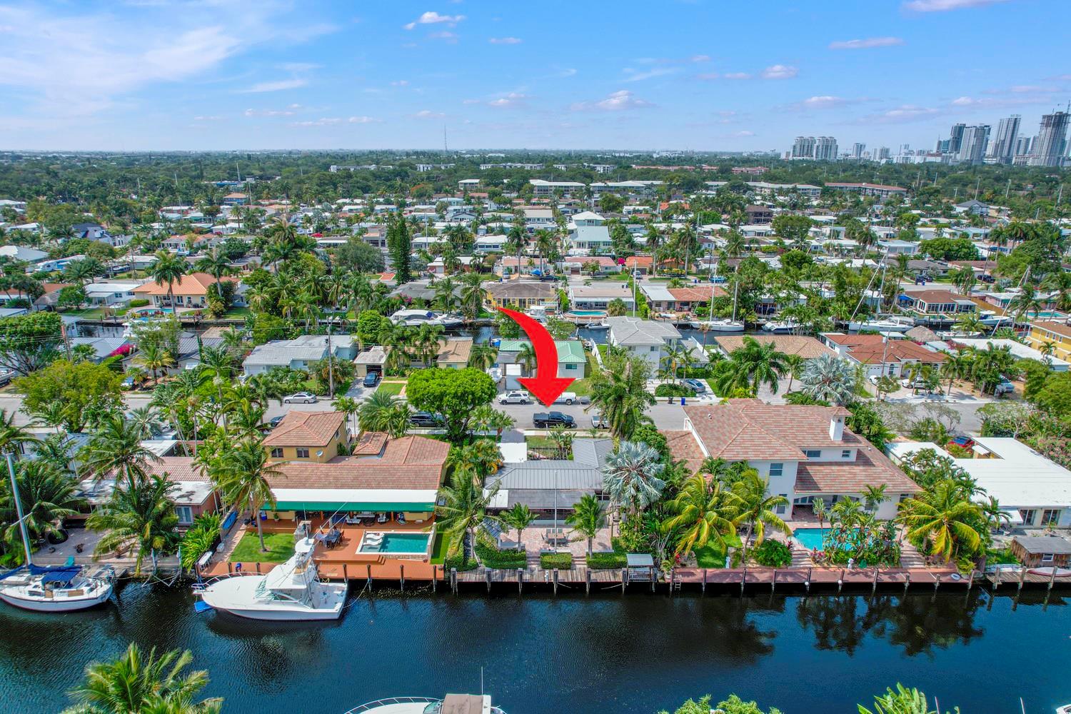 This home offers a peaceful waterfront view with 65 feet of deep-water unrestricted ocean access in the vibrant boating community of Citrus Isles. The property has an exceptional outdoor living space, complete with an outdoor kitchen, a brick paver deck with space for a pool, and a newer wood dock surrounded by palm trees. Perfect for enjoying sunsets and water views. Inside is a Florida room, 2 bedrooms, and 2 full bathrooms. The home is conveniently located just minutes from downtown, high-end shops and restaurants on Las Olas, I-95, I-595, hospitals, and award-winning beaches. Stunning new and recently renovated homes surround it—no HOA fees.
