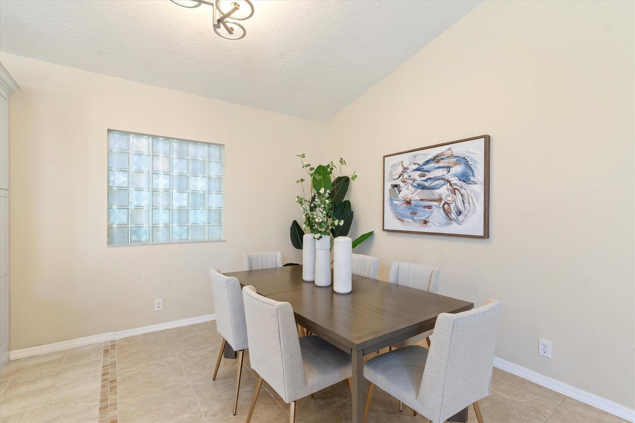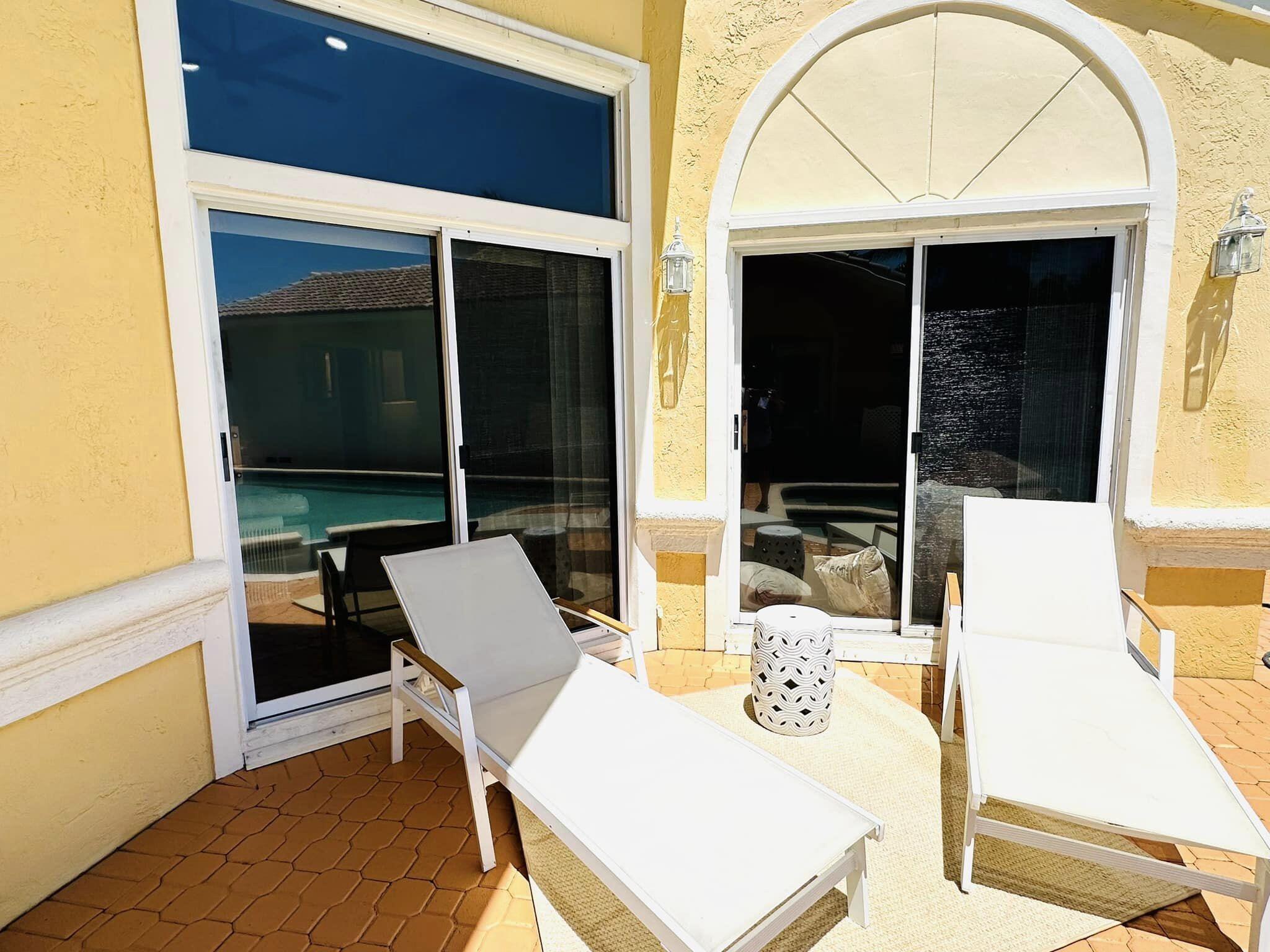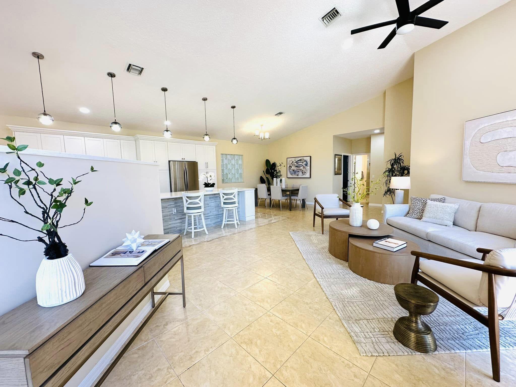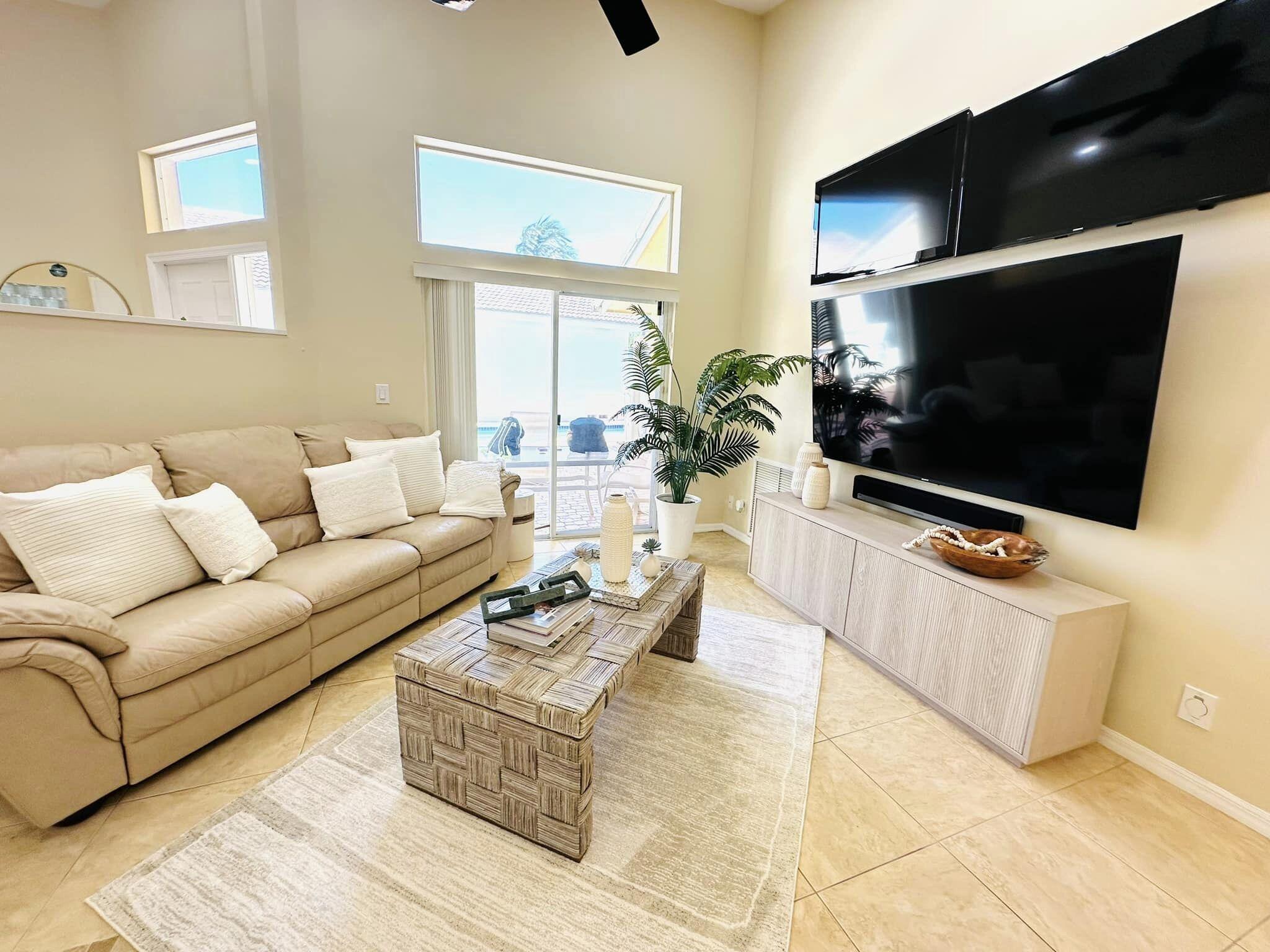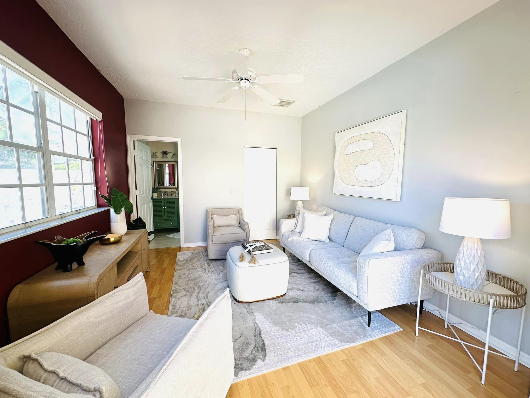 3 bedroom 3 bath courtyard pool home includes a mother in law suite. NEW roof May 2024, updated kitchen, and bathrooms within the last 4 years. Single-story home, gated community of only 41 homes, saltwater lap pool and low HOA dues. Newer AC and a newer hot water heater. Surrounded by a privacy fence, and offers a tranquil outdoor space. Inside, the open concept floor plan coupled with vaulted ceilings and Brazilian hardwood, tile, and laminate flooring that enhance the spacious living area. The sale includes the three TVs and additional surround sound speaker located in the dining room area.