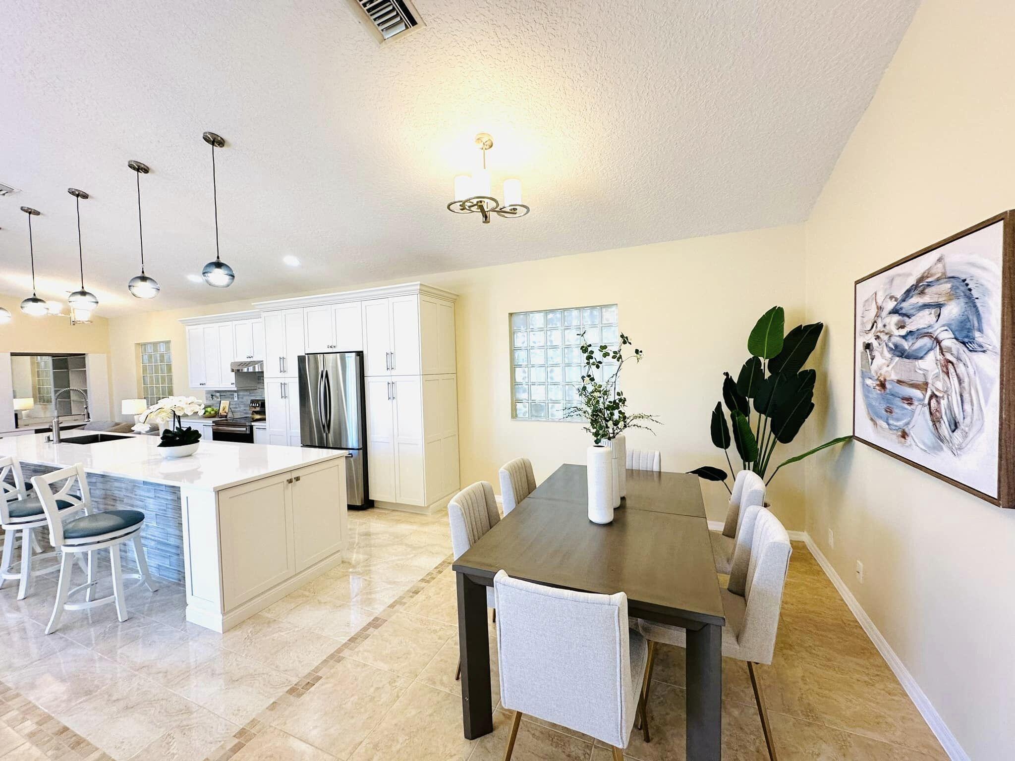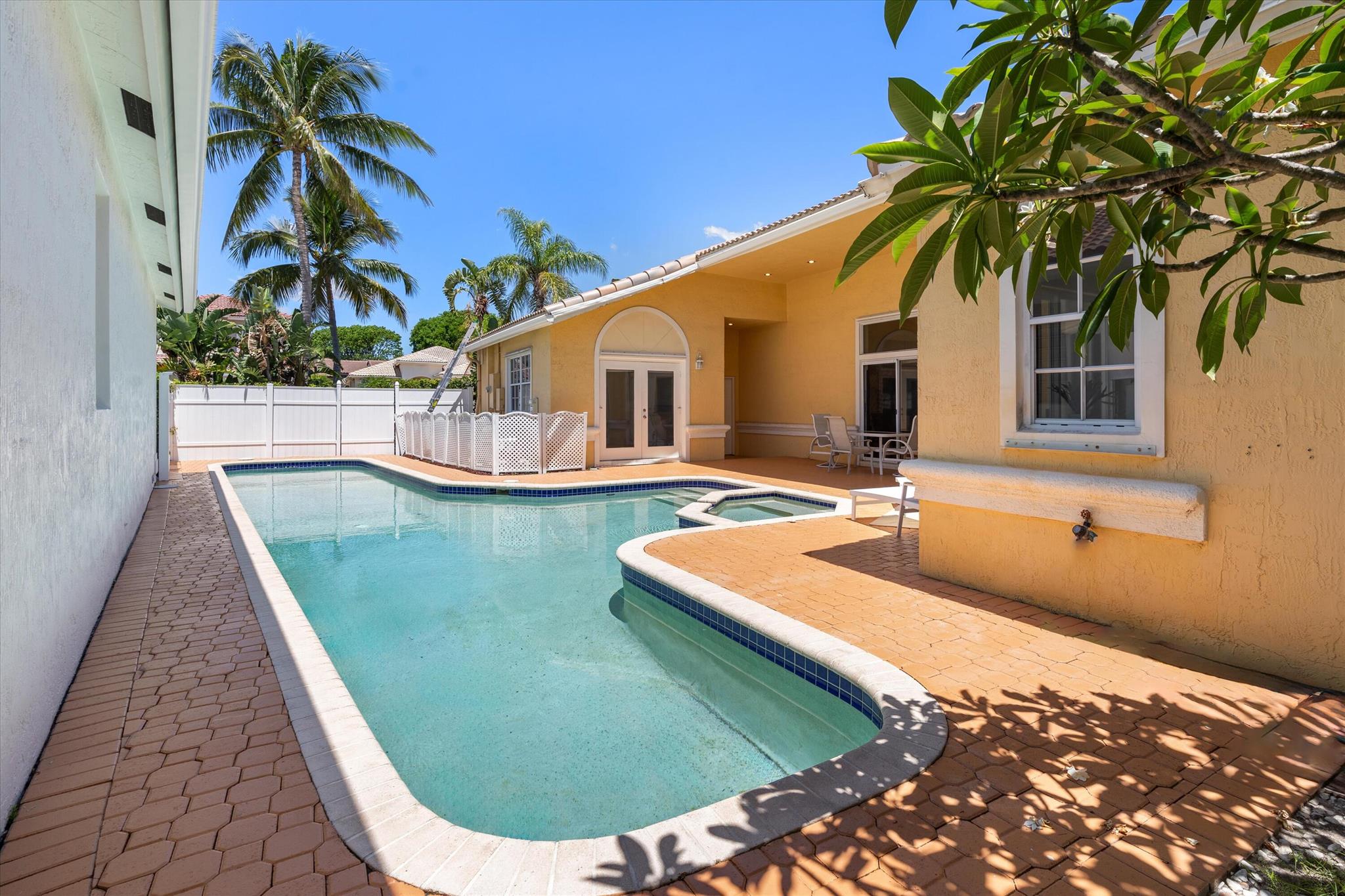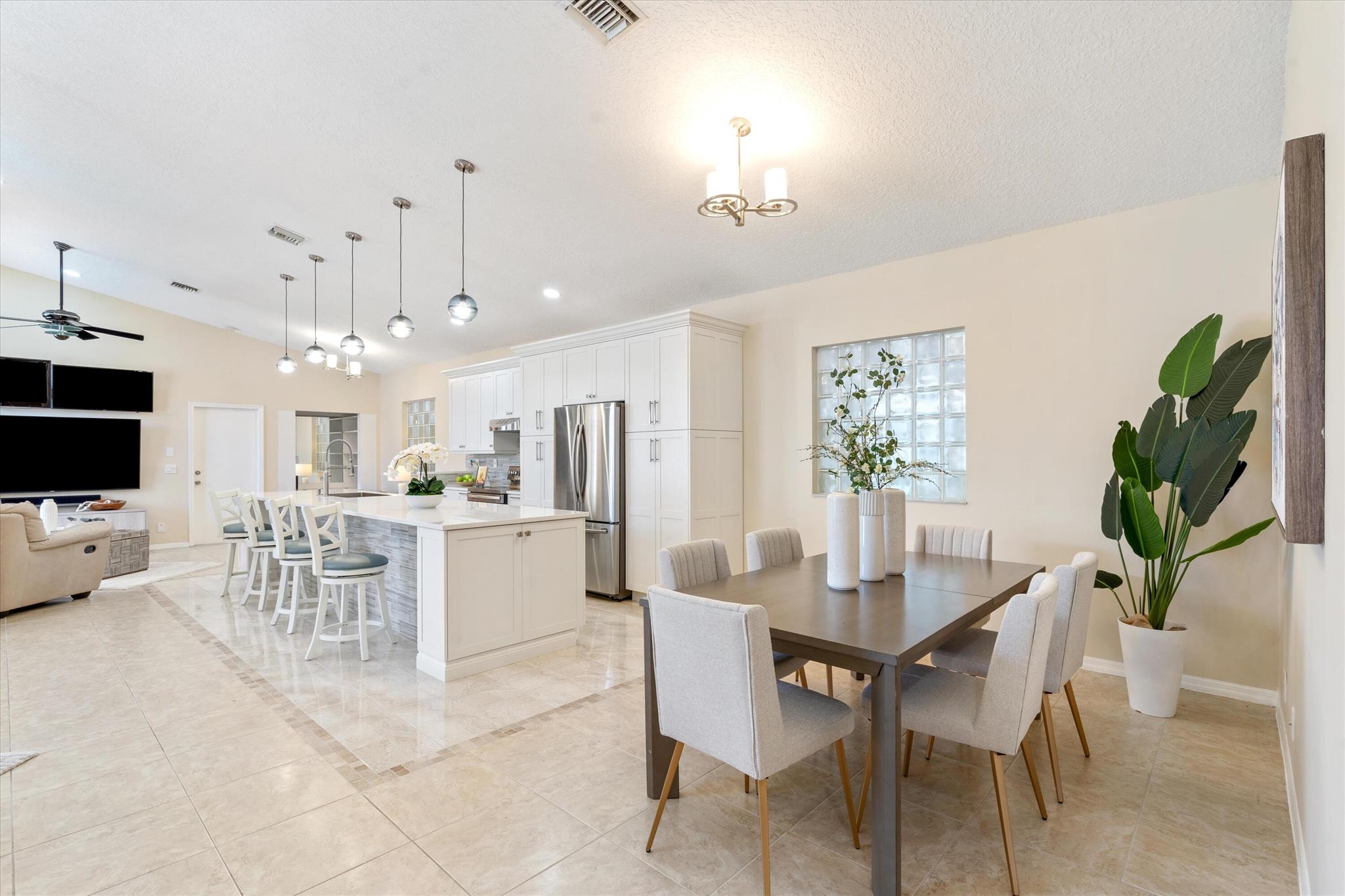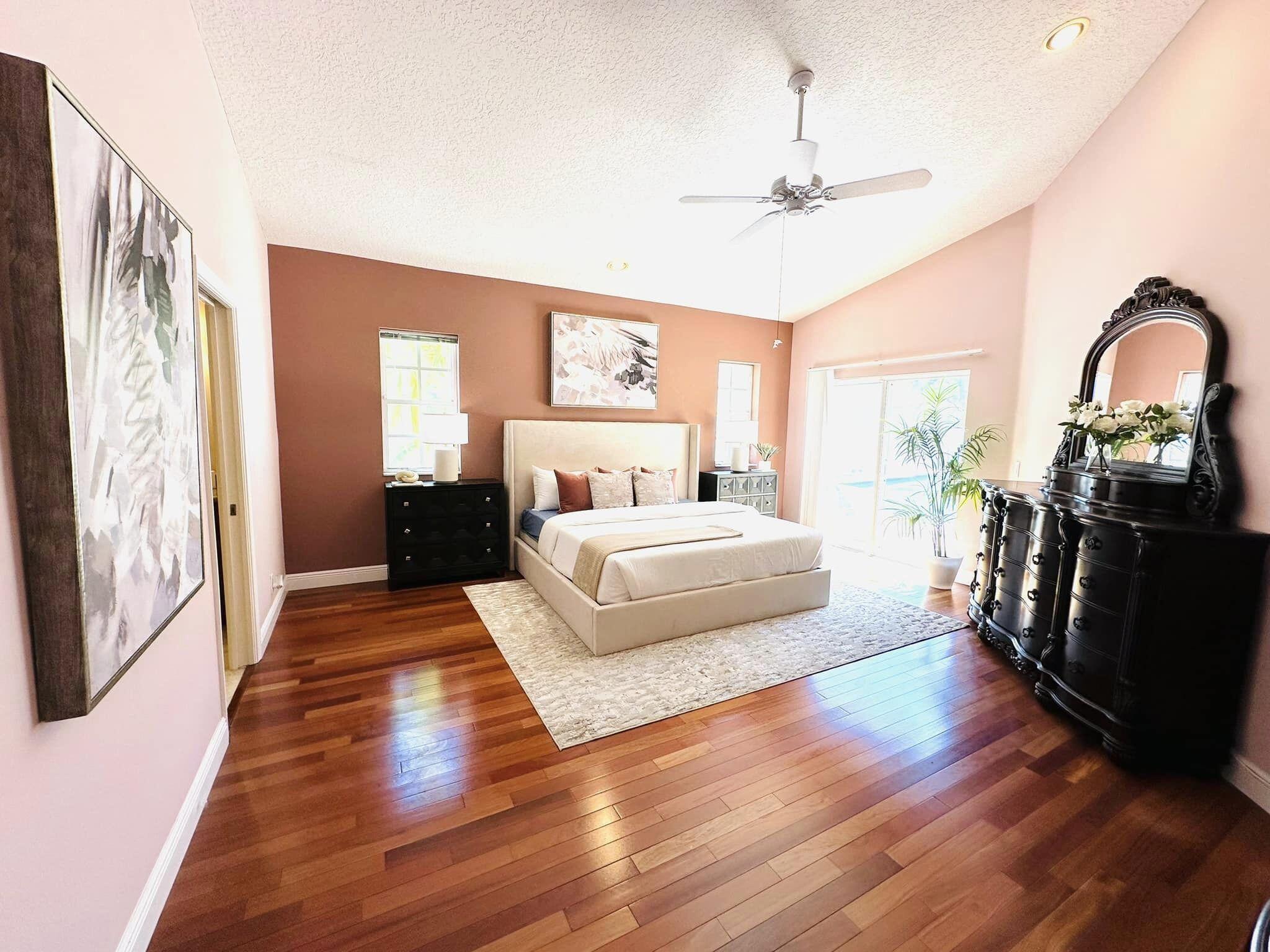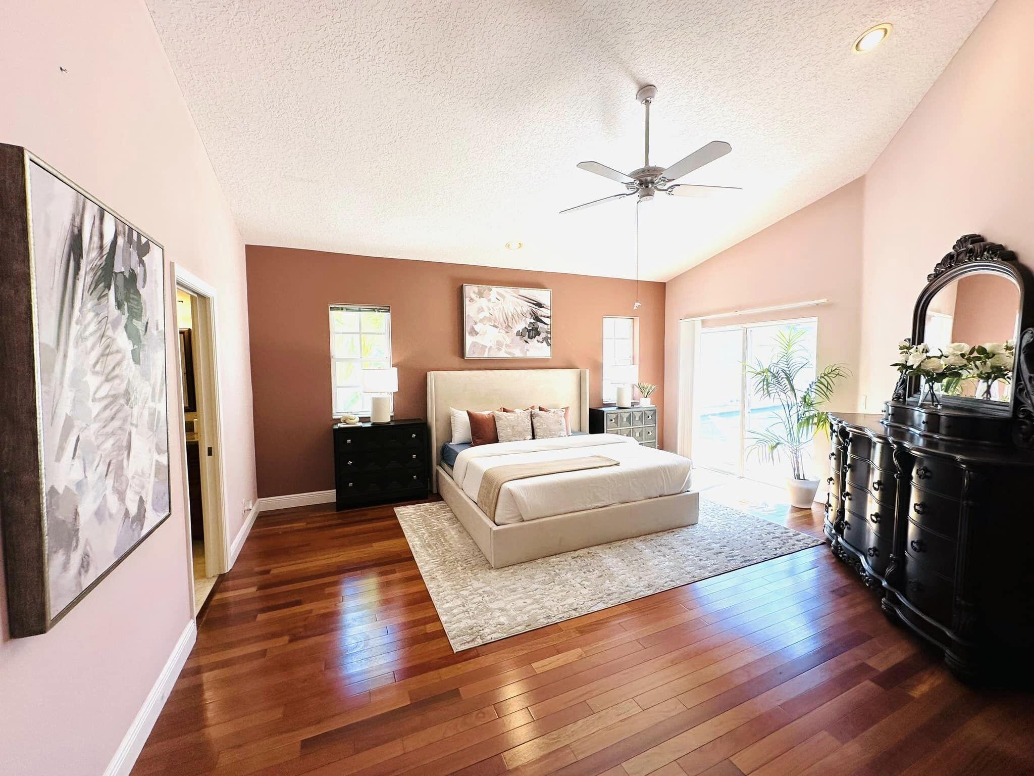 3 bedroom 3 bath courtyard pool home includes a mother in law suite. NEW roof May 2024, updated kitchen, and bathrooms within the last 4 years. Single-story home, gated community of only 41 homes, saltwater lap pool and low HOA dues. Newer AC and a newer hot water heater. Surrounded by a privacy fence, and offers a tranquil outdoor space. Inside, the open concept floor plan coupled with vaulted ceilings and Brazilian hardwood, tile, and laminate flooring that enhance the spacious living area. The sale includes the three TVs and additional surround sound speaker located in the dining room area.