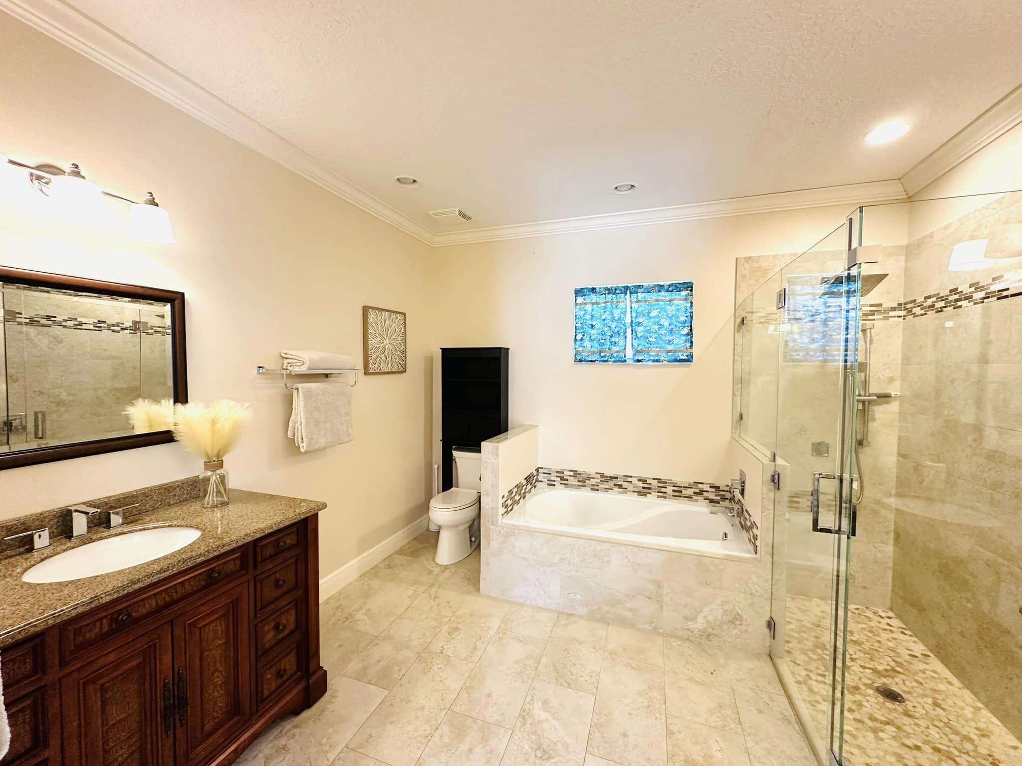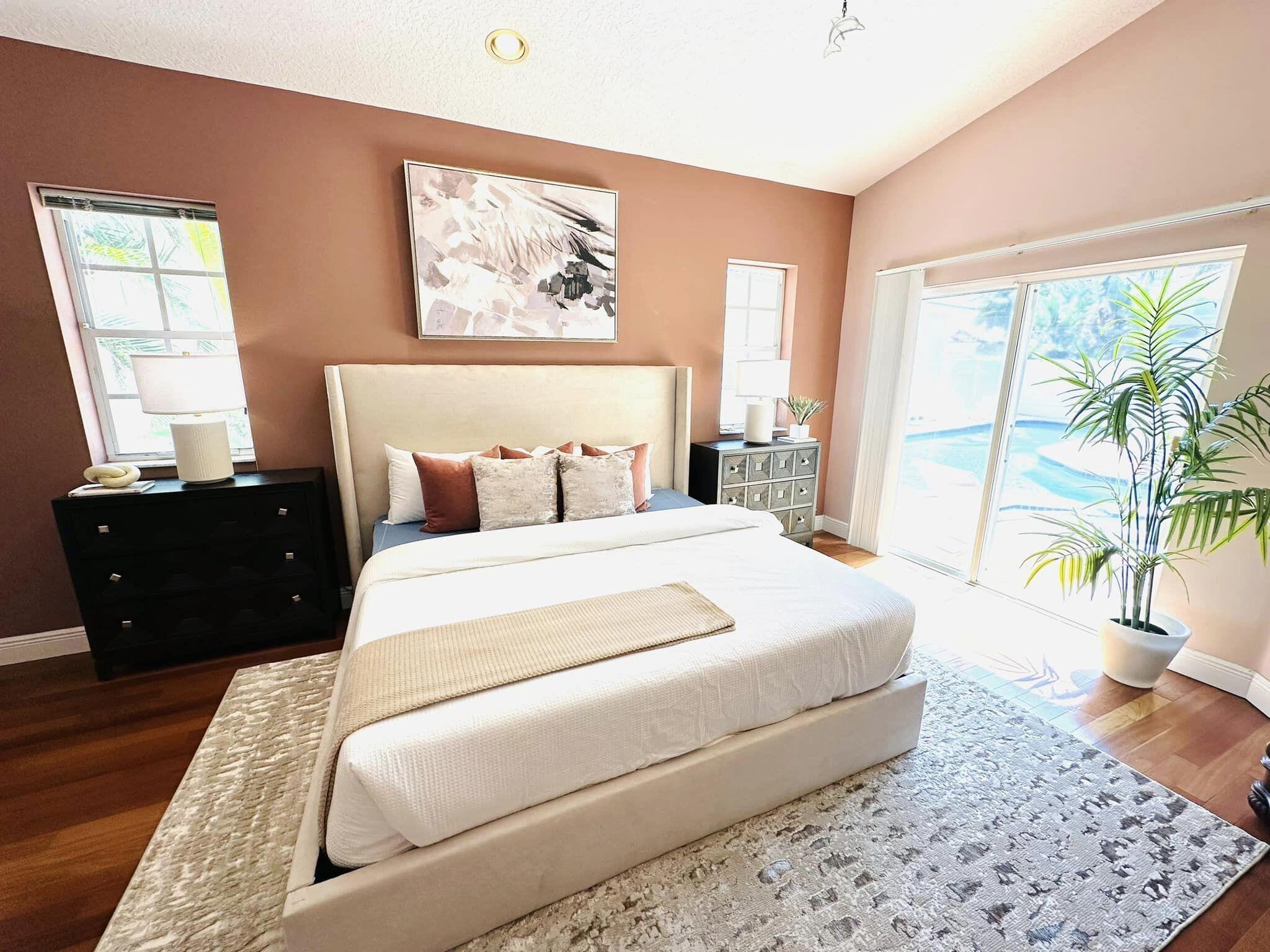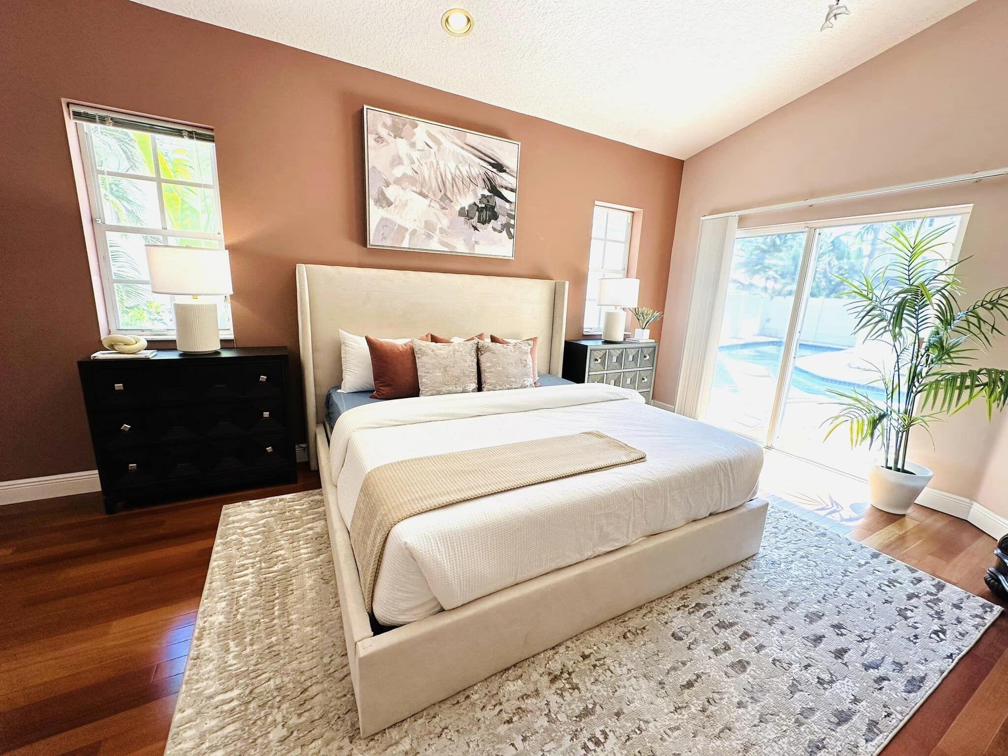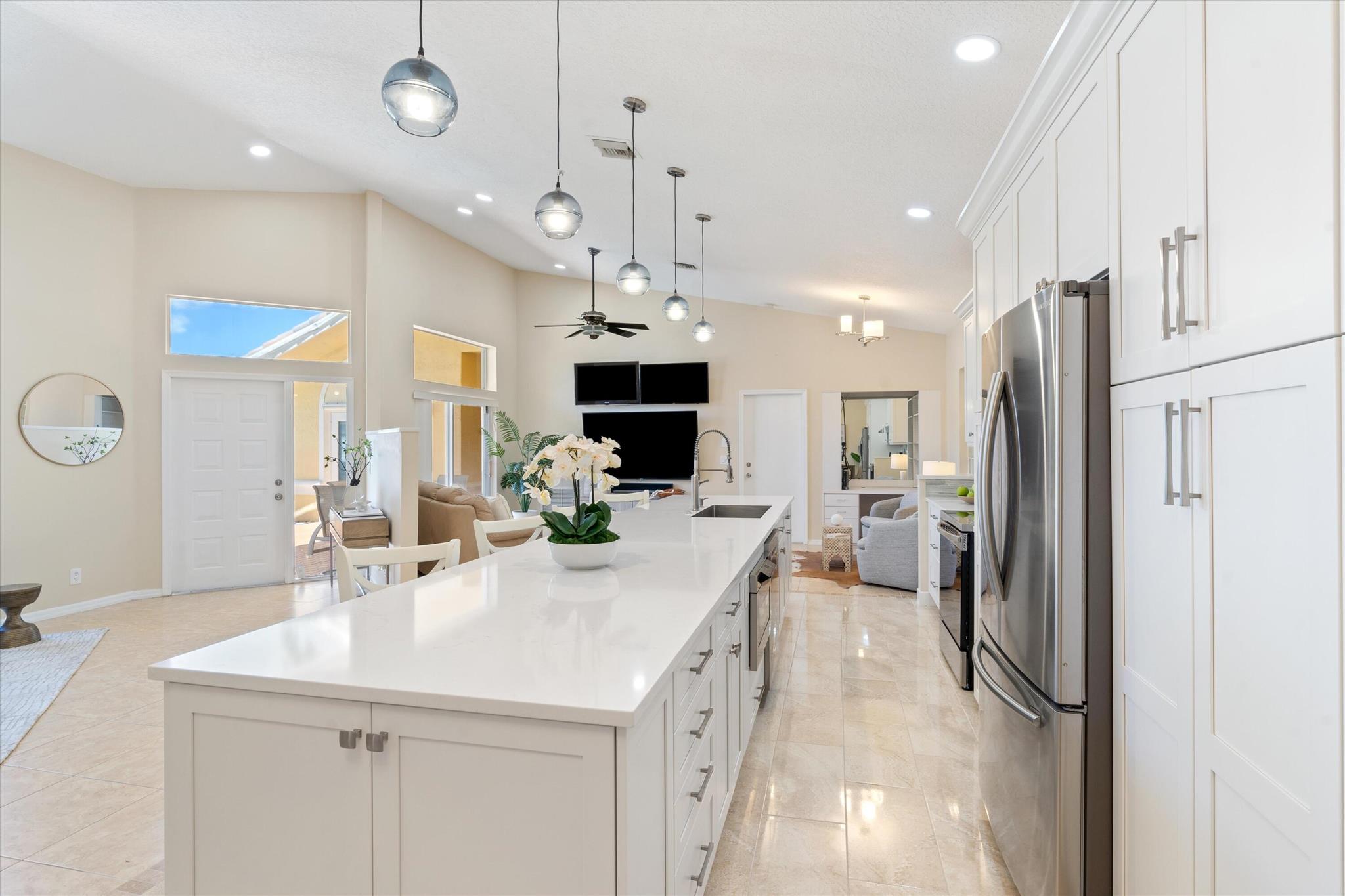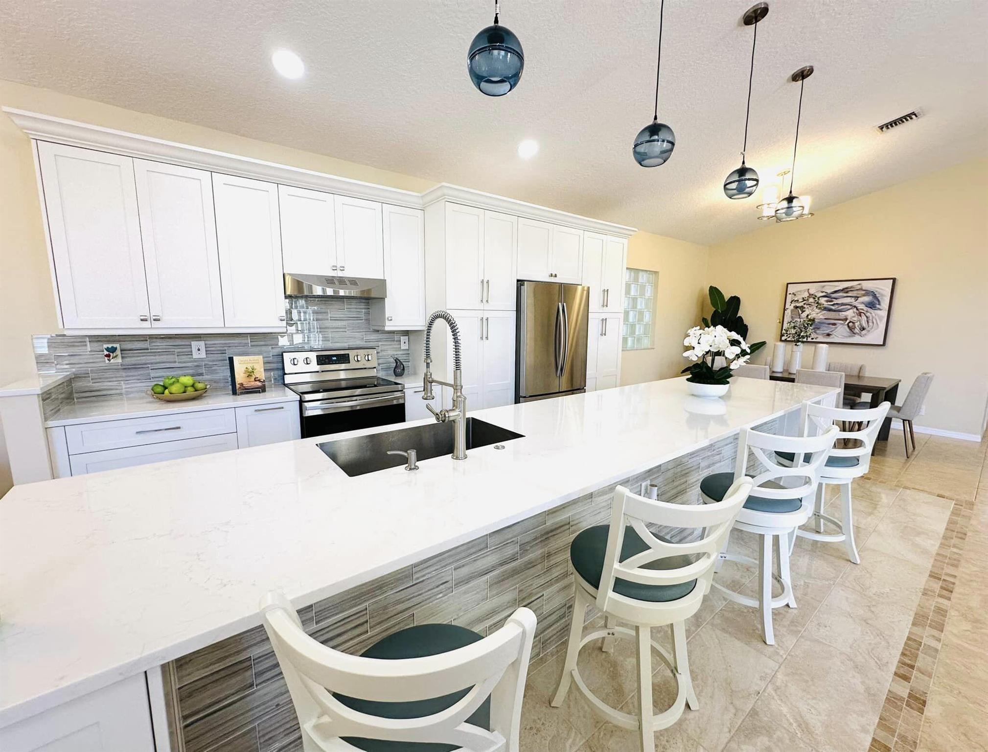 3 bedroom 3 bath courtyard pool home includes a mother in law suite. NEW roof May 2024, updated kitchen, and bathrooms within the last 4 years. Single-story home, gated community of only 41 homes, saltwater lap pool and low HOA dues. Newer AC and a newer hot water heater. Surrounded by a privacy fence, and offers a tranquil outdoor space. Inside, the open concept floor plan coupled with vaulted ceilings and Brazilian hardwood, tile, and laminate flooring that enhance the spacious living area. The sale includes the three TVs and additional surround sound speaker located in the dining room area.