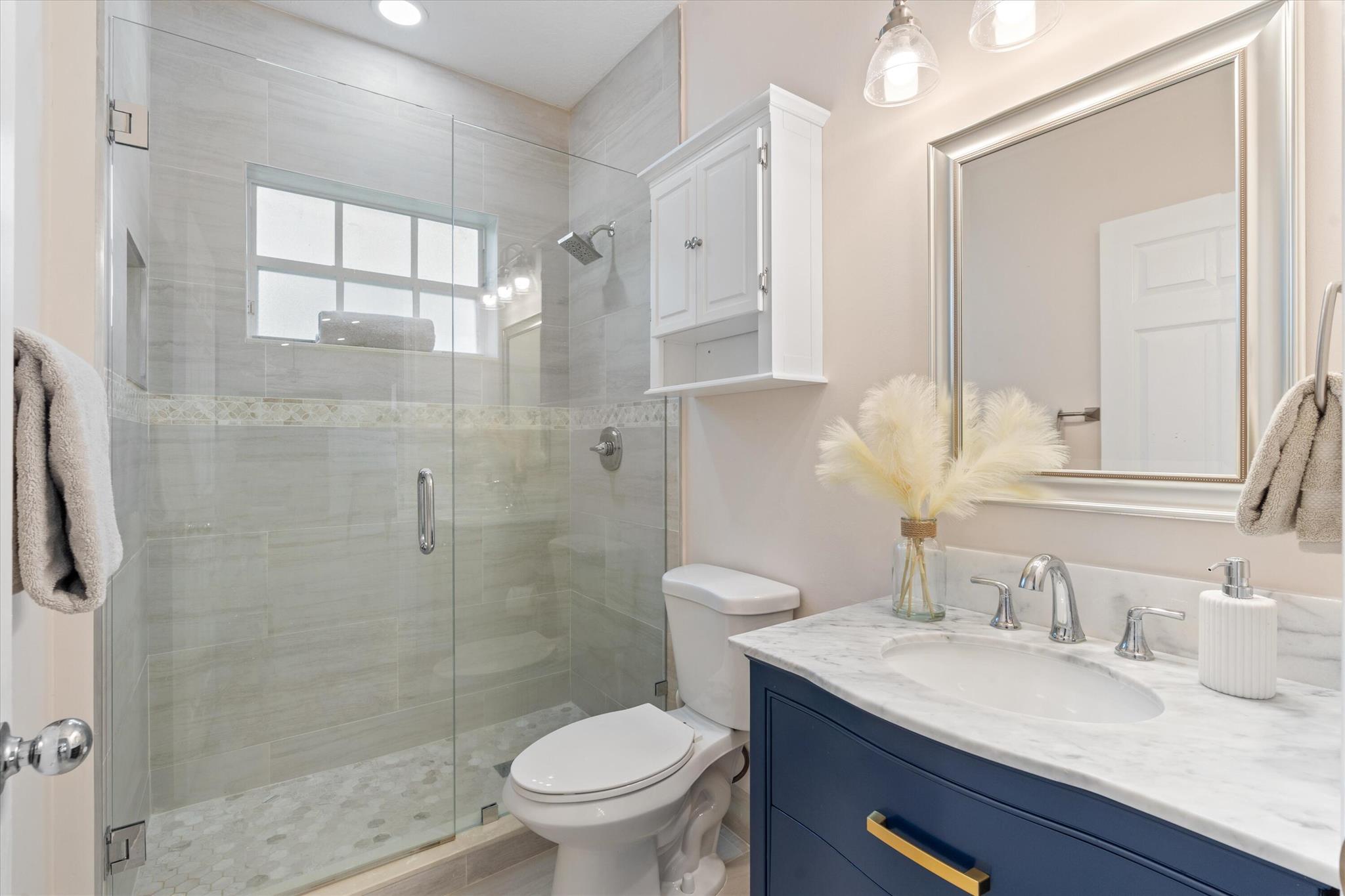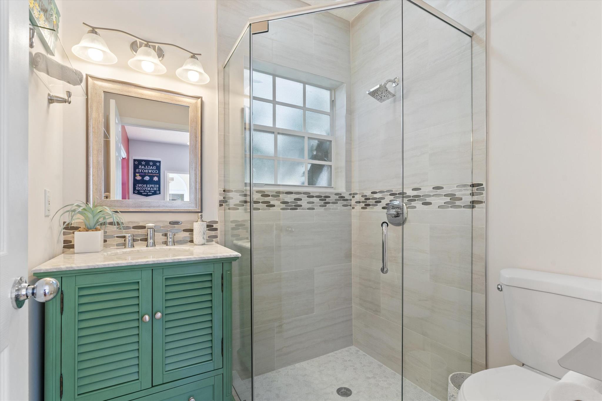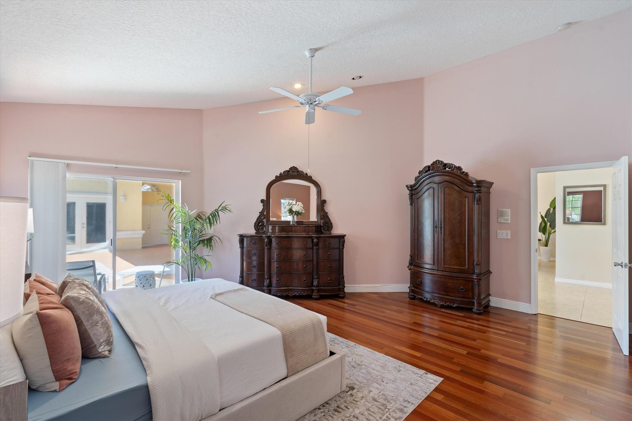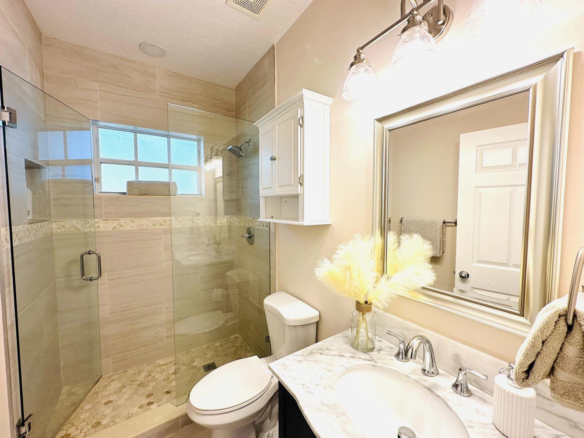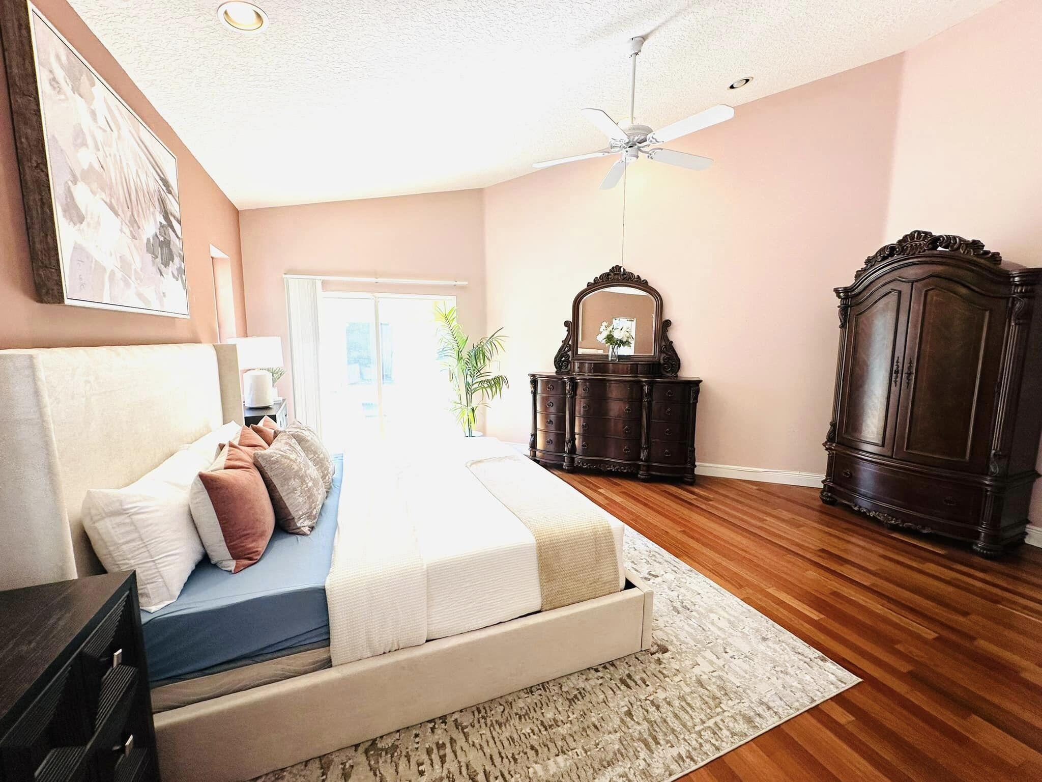 3 bedroom 3 bath courtyard pool home includes a mother in law suite. NEW roof May 2024, updated kitchen, and bathrooms within the last 4 years. Single-story home, gated community of only 41 homes, saltwater lap pool and low HOA dues. Newer AC and a newer hot water heater. Surrounded by a privacy fence, and offers a tranquil outdoor space. Inside, the open concept floor plan coupled with vaulted ceilings and Brazilian hardwood, tile, and laminate flooring that enhance the spacious living area. The sale includes the three TVs and additional surround sound speaker located in the dining room area.