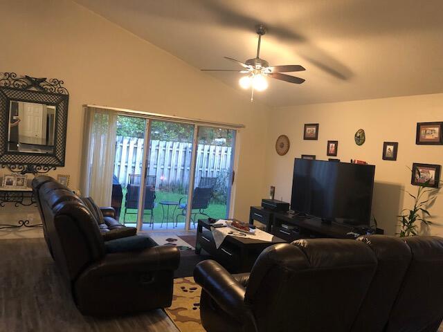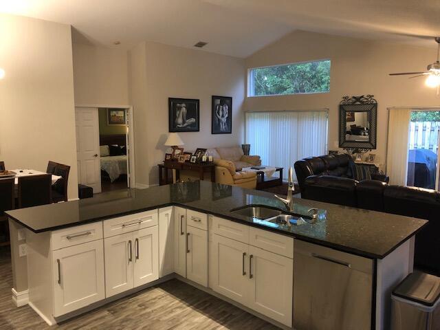 Welcome to your dream home! This immaculate home features 3 bedrooms, 2 bathrooms, and a 2-car garage in a gated community. It offers a renovated kitchen with white cabinets and stainless steel appliances. The open and spacious living area boasts high-end water resistant laminate flooring and vaulted ceilings. The bathrooms have been updated, with the master bath featuring a double sink, separate tub, and shower. Enjoy a private and open patio, perfect for family gatherings and Sunday BBQs. Accordion shutters throughout. Community amenities include a pool, Tennis & Basketball courts, and a children's playground. The property is located near highly rated schools, shopping, restaurants, and entertainment.