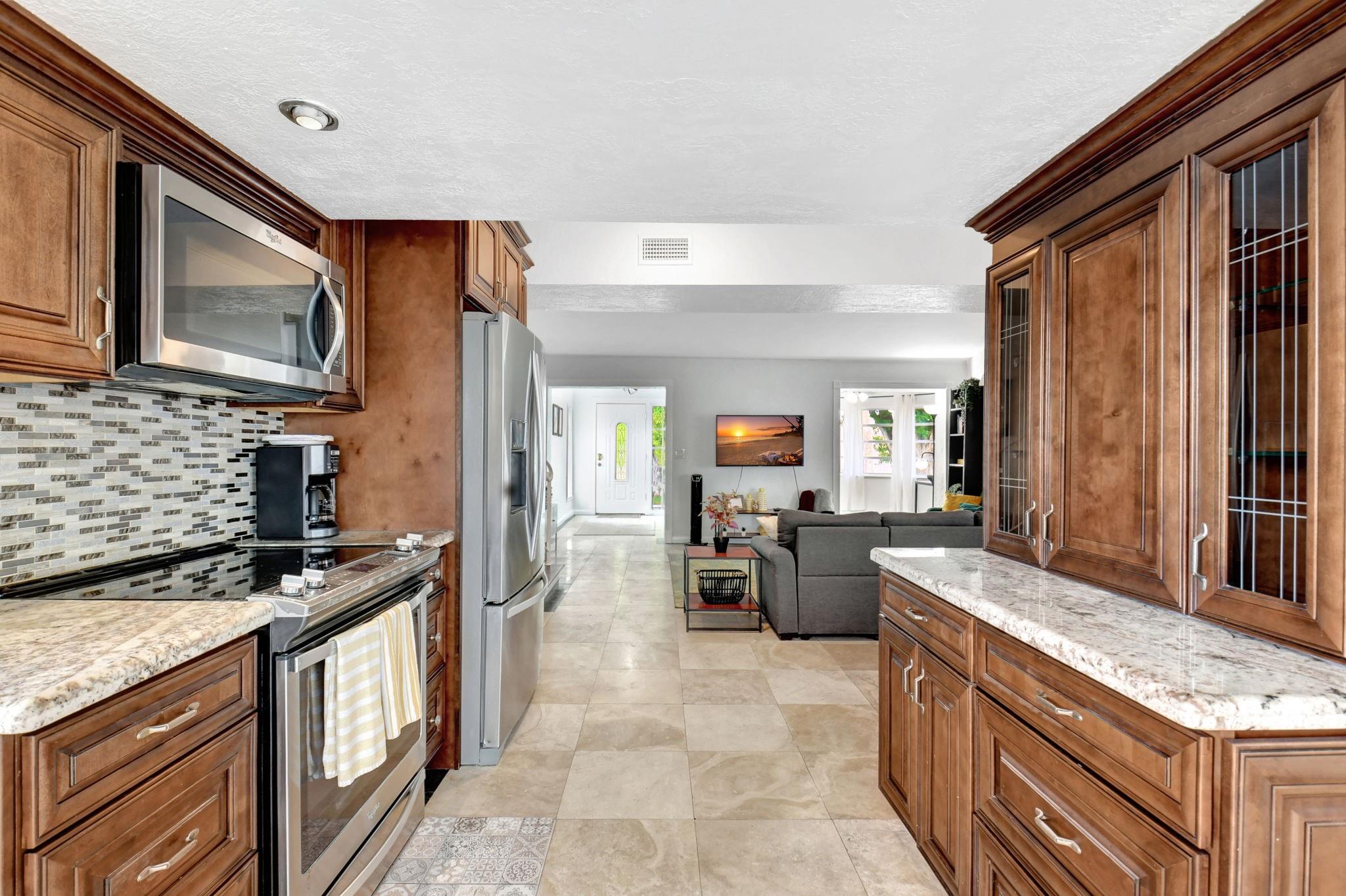 Luxury Art Deco home in A-rated school district, walking to Middle/High, near FAU. No HOA, 10mins to beach, 4-car garage, painted 6-car driveway & street parking. Open floor plan, kitchen with exotic granite, custom cabinetry, SS appliances. Travertine tiles on 1st floor, hardwood on 2nd. Primary bedroom with walk-in closet, new glass shower doors & Italian marble. Rare basement with walk-in access. Garage has potential for 4th bed/in-law suite, with plumbing & electrical installed. Updated bathrooms, plumbing, new roof (2024), newer water heater & interior air unit. Freshly painted interior & exterior, Epoxy garage floor. Landscaped exterior with deck, patio, new sprinkler system, mango tree, room for pool. 4-Point & Wind Mitigation (2024). Great rental potential, easy access to I-95.