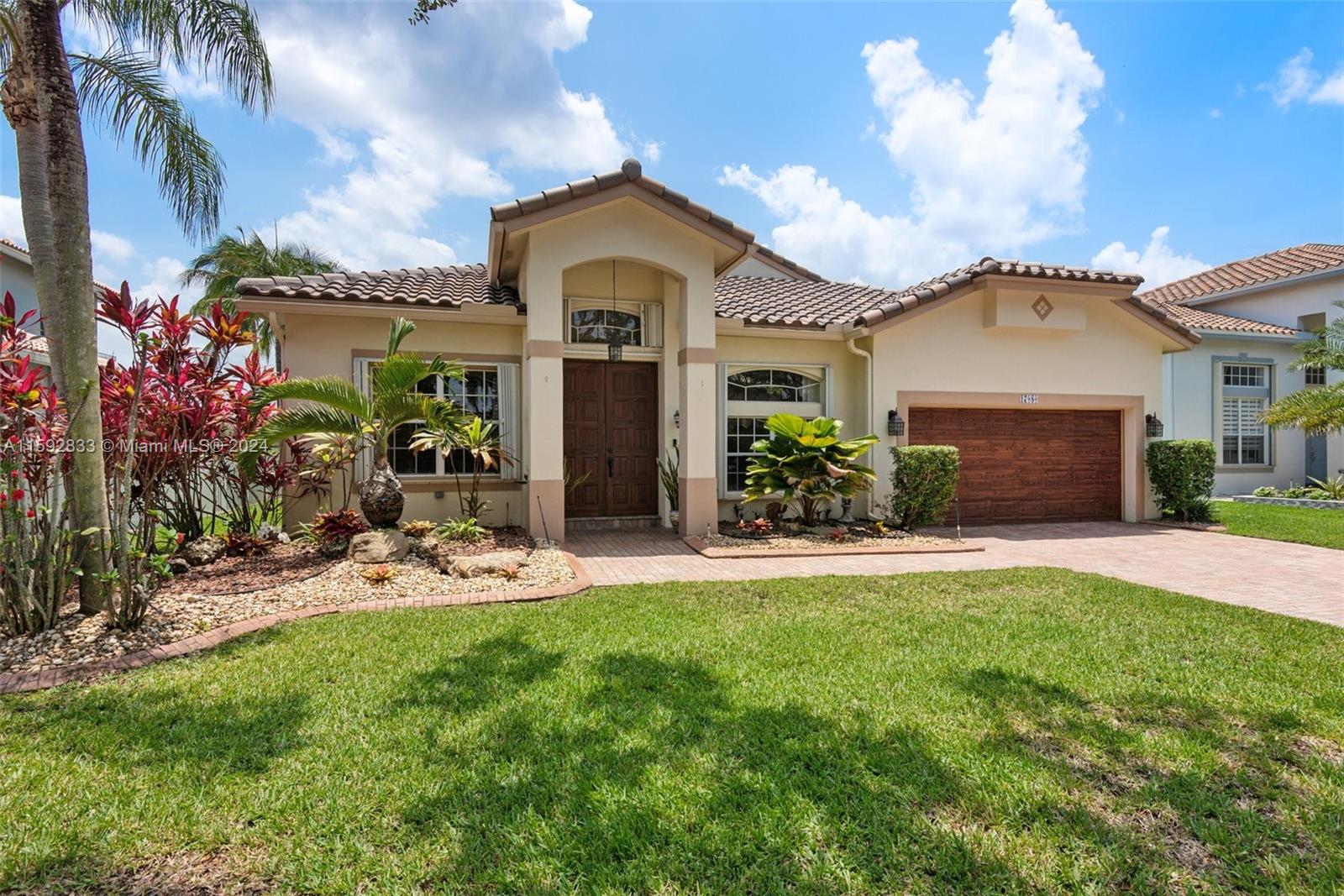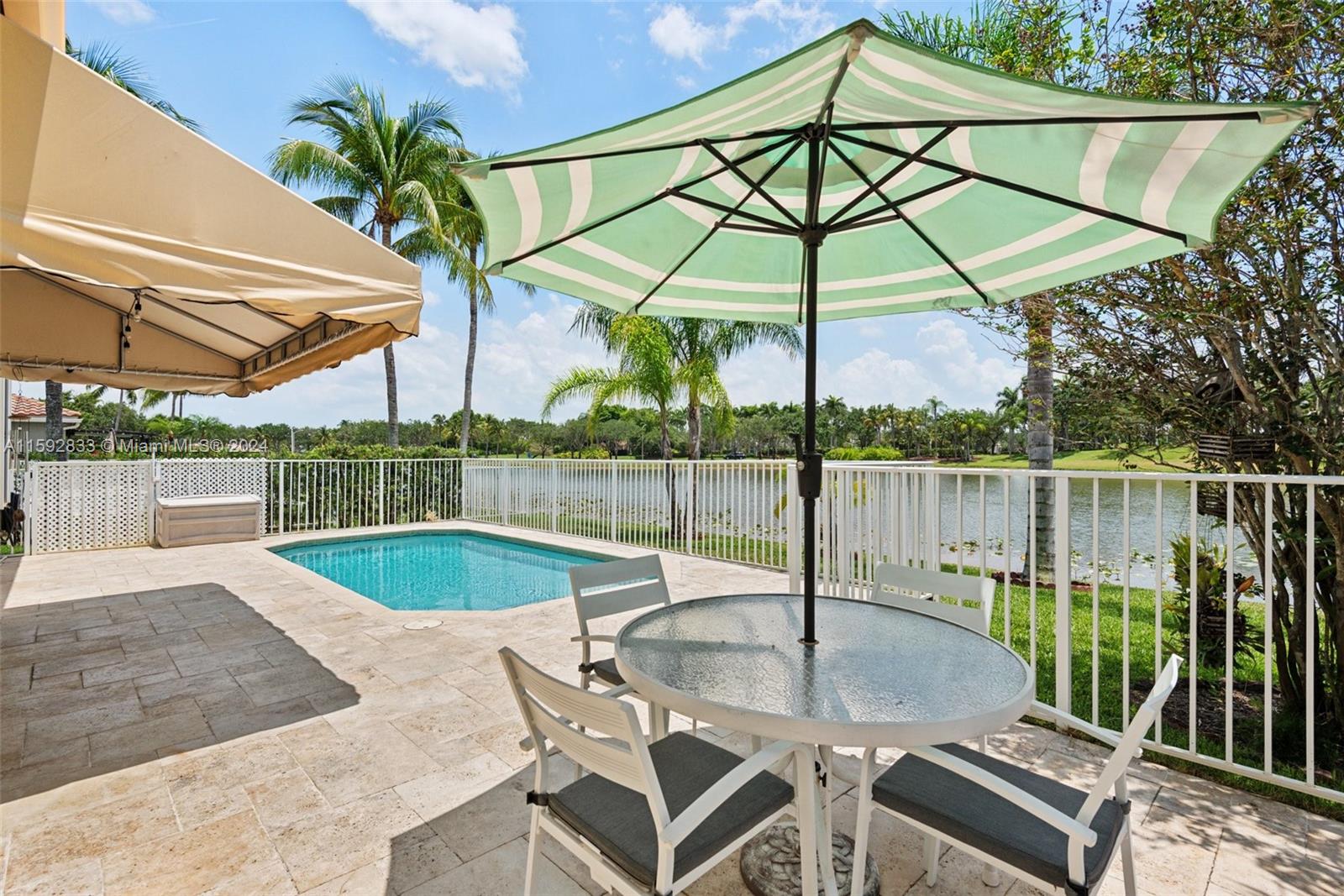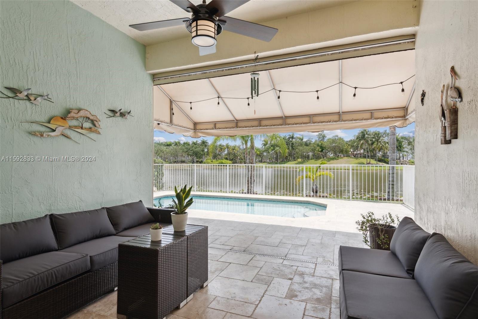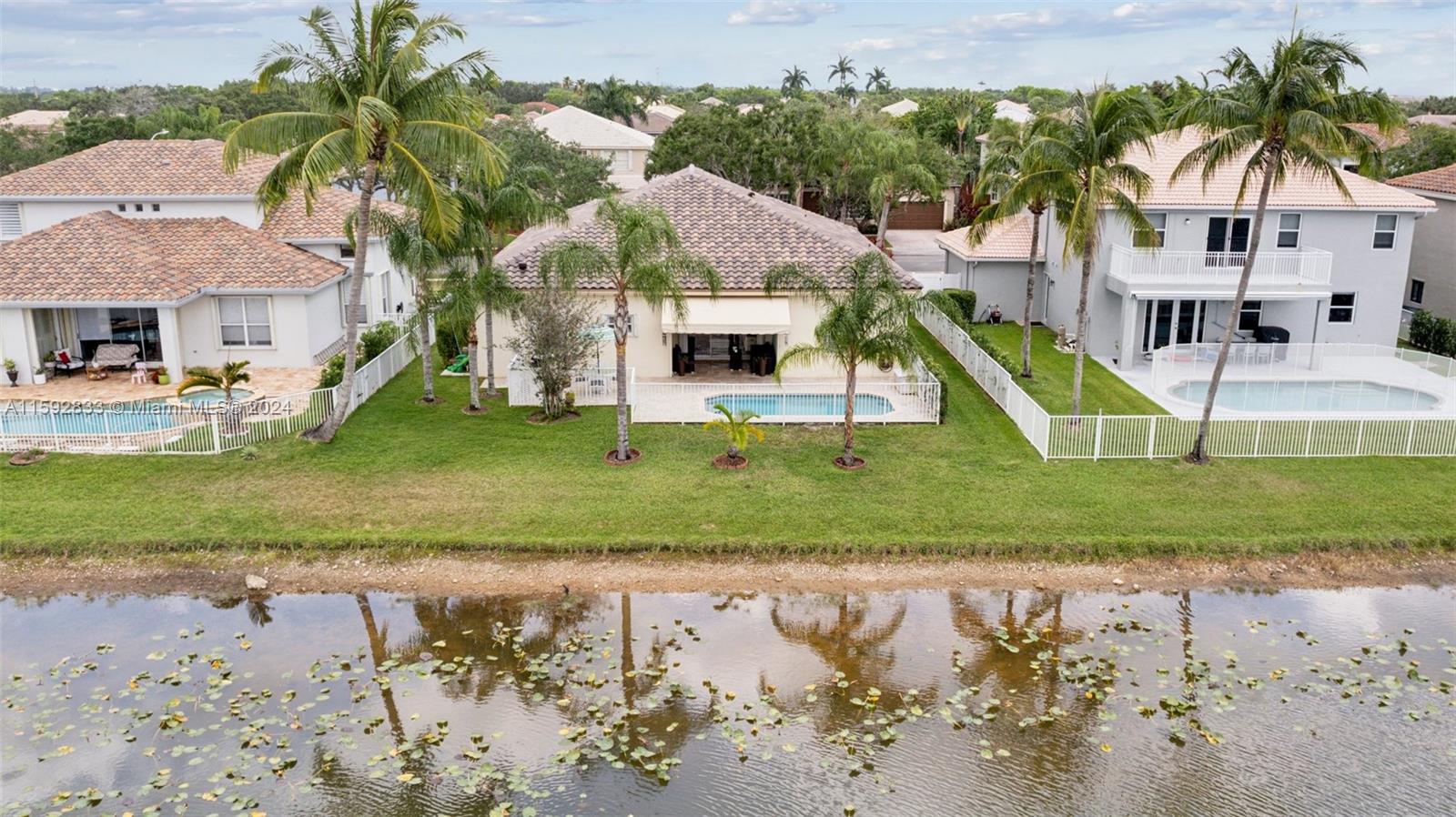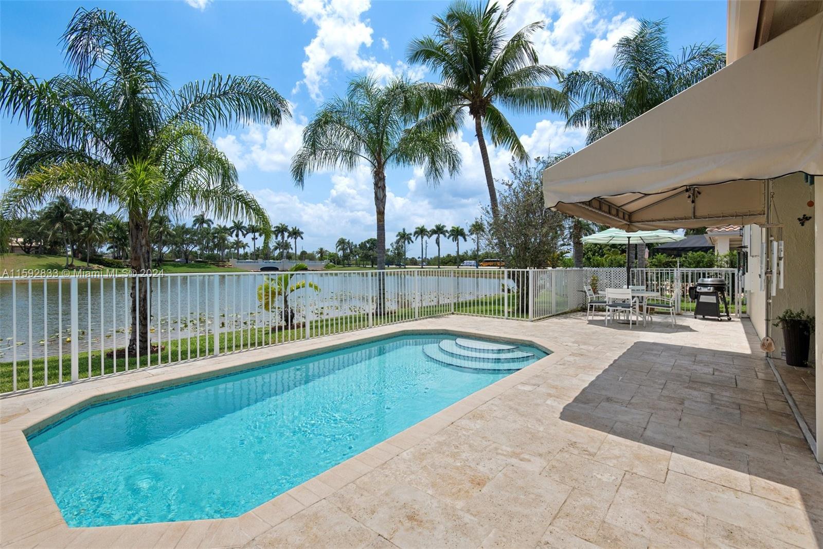 Magnificent Lake front home with in-ground pool in the sought after gated community of PEMBROKE ISLES! Desirable 4BR 2 baths "Anastasia" Model. NEW ROOF 2023! Hurricane Master Garage Door System & accordion storm panels! Travertine patio & pool deck! Covered outdoor patio with retractable screen! Enjoy the open floor plan with high ceilings, updated kitchen with under cabinet lighting & granite counters & LG stainless steel appliances. Flooring 24" Porcelain Tiles! Master Bedroom has 2 individual Walk-in closets! THIS HOME IS MOVE-IN READY! HOA covers 24 hour security, full lawn care & landscaping, cable, internet, alarm system & monitoring. Community offers resort-like amenities: swimming pools, gym, basketball, soccer, tennis, volleyball, walking trails & more. Time to make it yours!