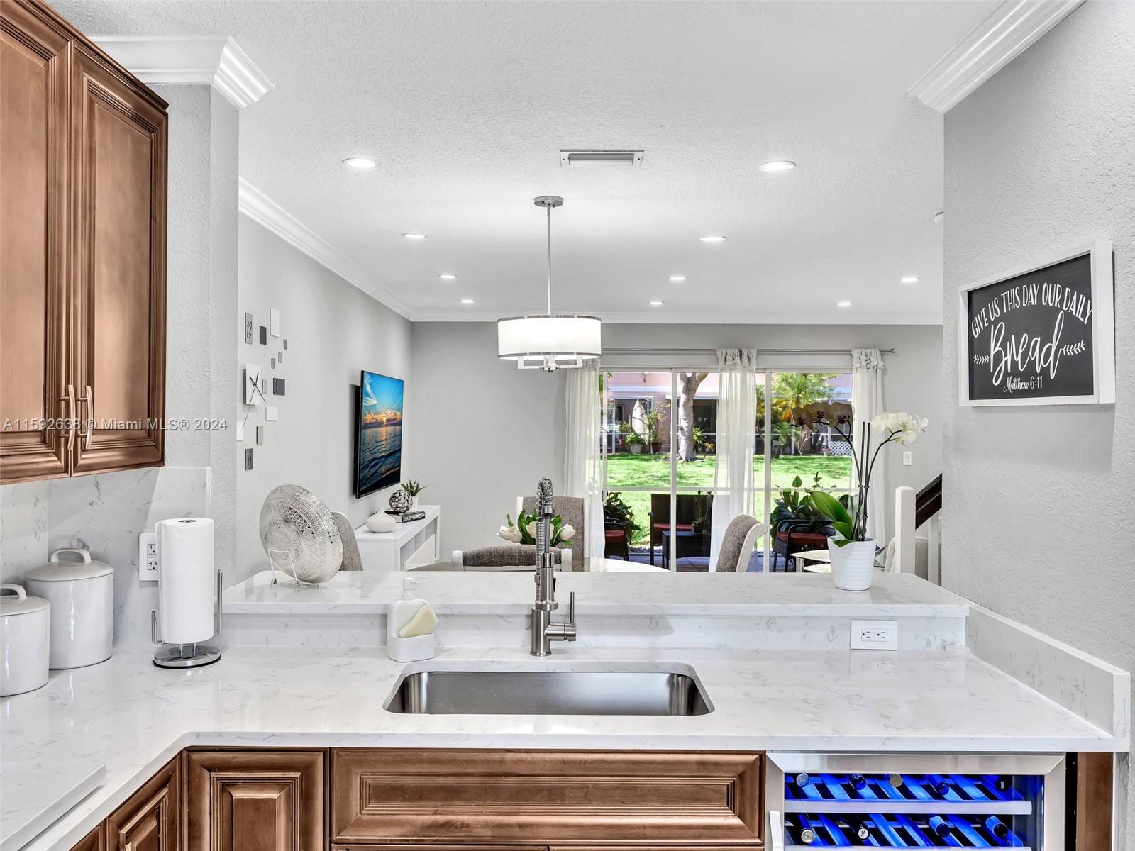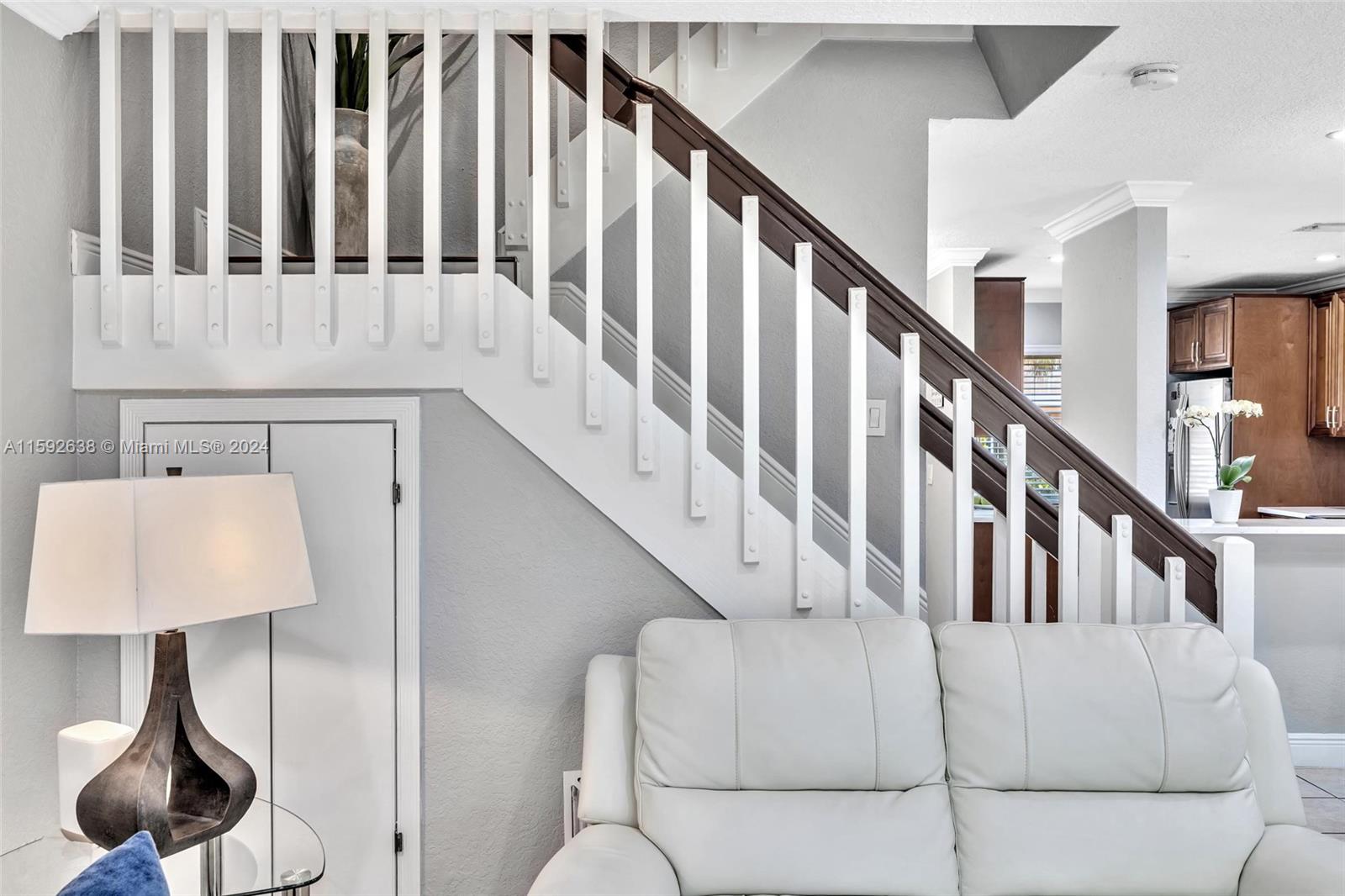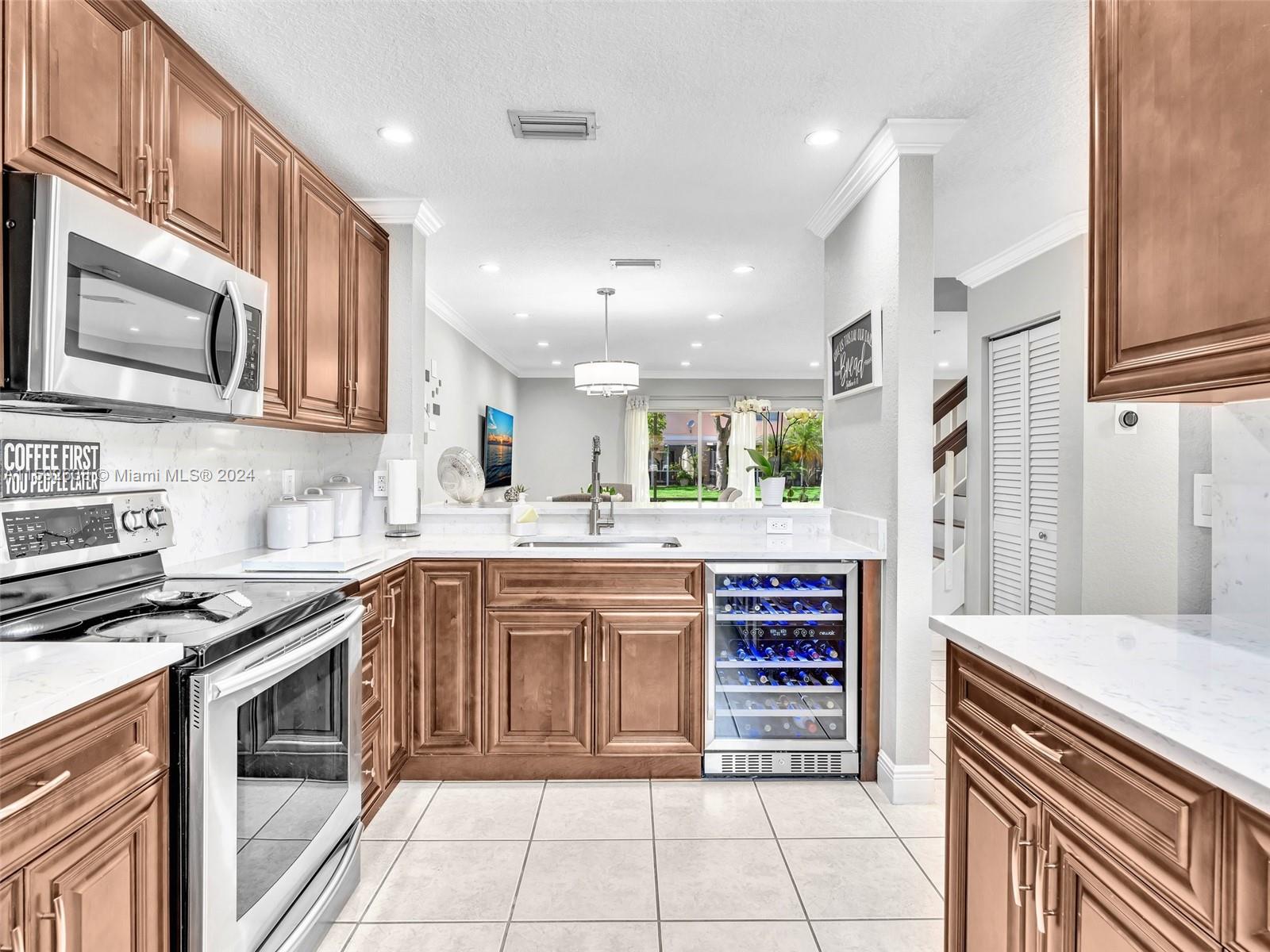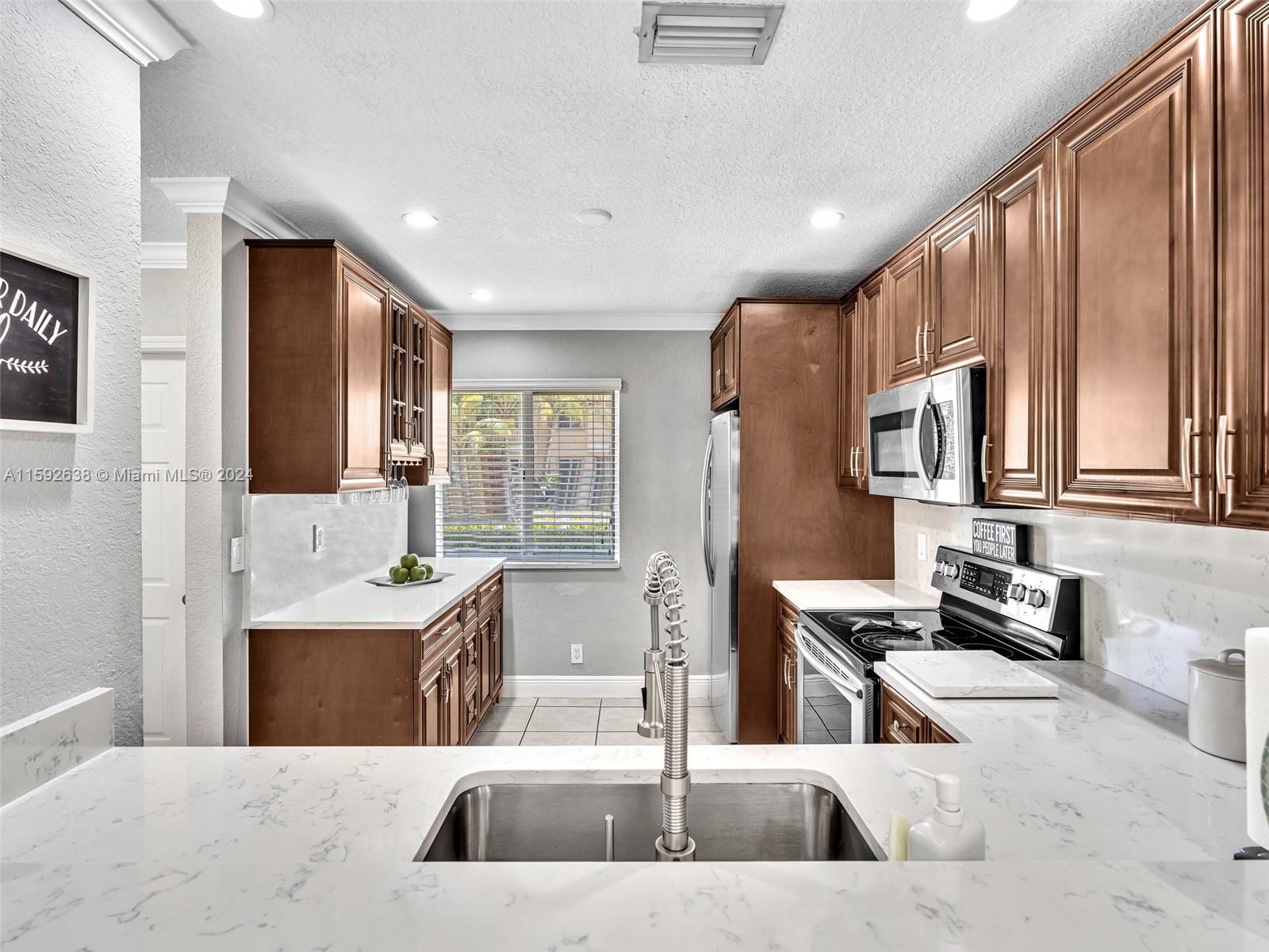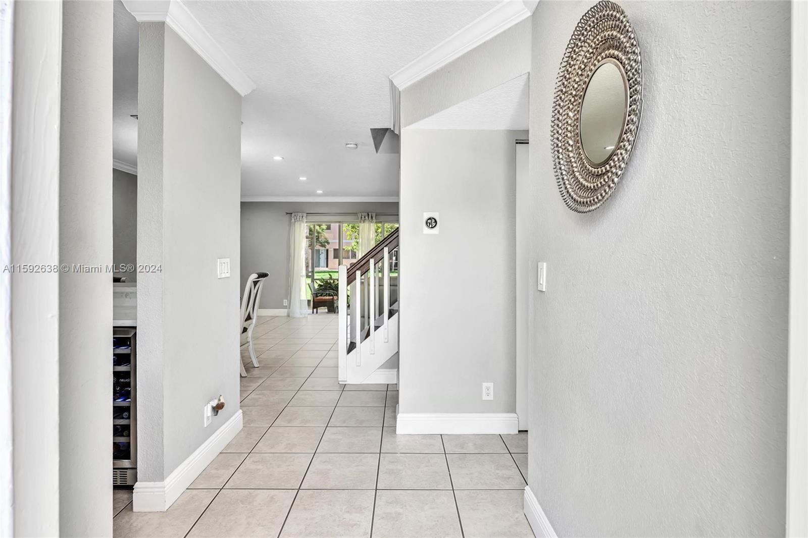 Beautiful two-story townhome located in Malibu Bay! This spacious home was freshly painted & offers an open floor plan with a large screened-in patio, perfect for outdoor enjoyment. The first floor boasts neutral tile flooring with LED lighting on dimmers, concealed wiring, & crown molding. The kitchen is a chef's dream with extra cabinet & counter space, solid wood cabinetry & quartz countertops. The second floor boasts premium wood laminate flooring, & stairs adorned with imported porcelain tile. The expansive primary suite includes a walk-in closet & newly renovated bathroom. Additional features include an outdoor storage room & new water heater. HOA includes roof repairs, exterior painting, lawn care, & cable TV w/high-speed internet. Close to major roadways & excellent schools!