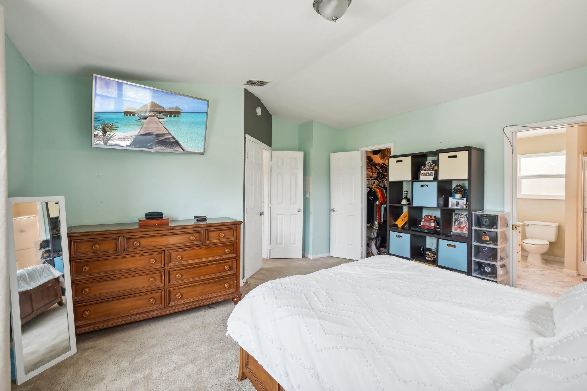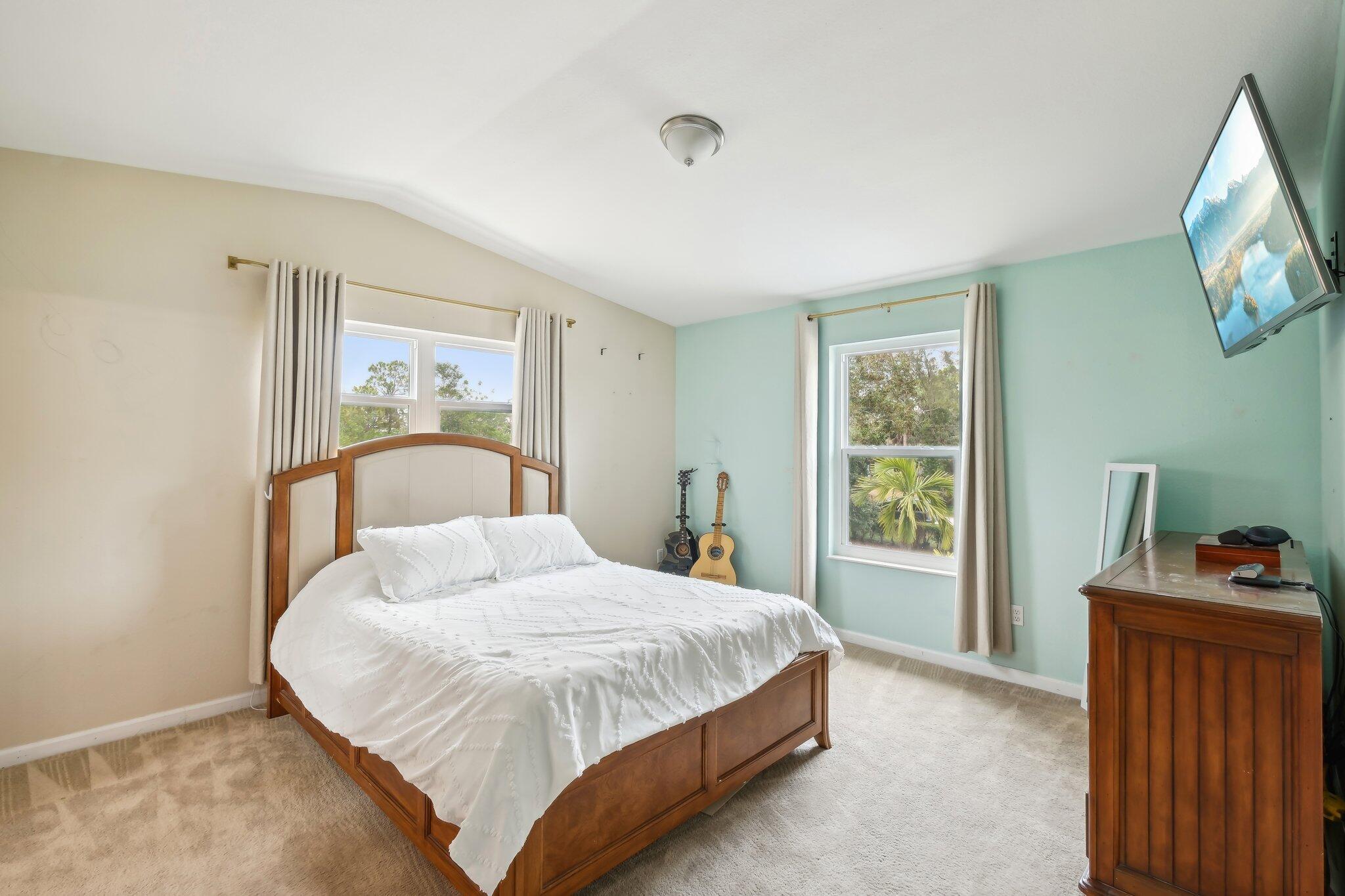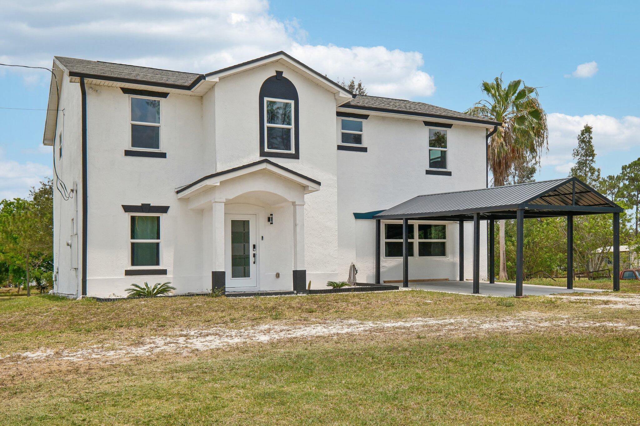 This home has been meticulously maintained with a reroof in 2015, new AC in 2024, new water pump, & a new water softener. Hurricane-rated impact windows & doors offer peace of mind. The floor plan is modern & functional, with designer light fixtures, wainscoting, & crown molding. Living & dining rooms on the ground level center around a renovated kitchen full of upgrades like granite counters, a new refrigerator, & contrasting shaker cabinets. Up the staircase, a modest loft would make an excellent lounge. The three guest bedrooms are all sizable with roomy closets. The primary bedroom boasts vaulted ceilings & a huge walk-in closet for storage. The ensuite bathroom boasts granite-topped dual sink vanities & a standalone shower. Make your everyday a vacation day here with comfort & style!