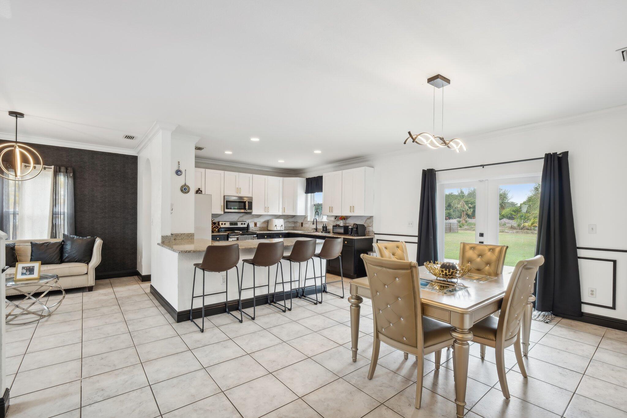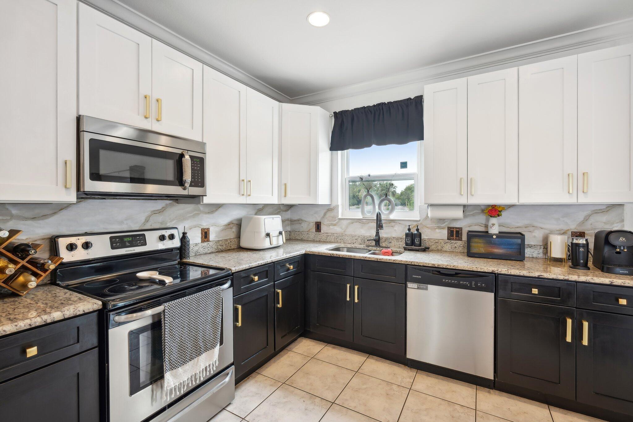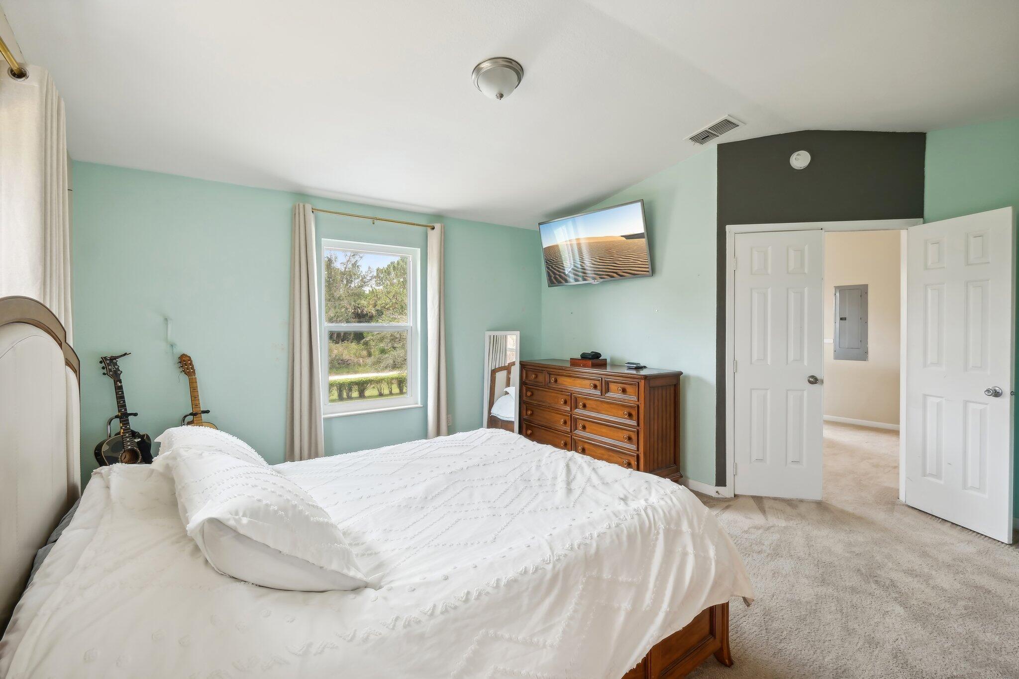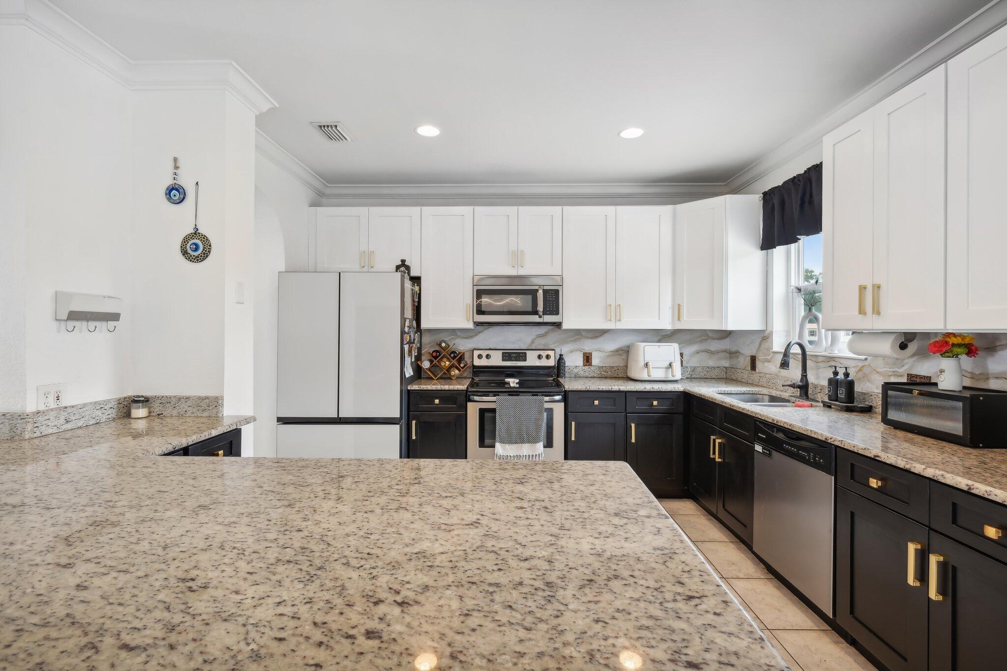This home has been meticulously maintained with a reroof in 2015, new AC in 2024, new water pump, & a new water softener. Hurricane-rated impact windows & doors offer peace of mind. The floor plan is modern & functional, with designer light fixtures, wainscoting, & crown molding. Living & dining rooms on the ground level center around a renovated kitchen full of upgrades like granite counters, a new refrigerator, & contrasting shaker cabinets. Up the staircase, a modest loft would make an excellent lounge. The three guest bedrooms are all sizable with roomy closets. The primary bedroom boasts vaulted ceilings & a huge walk-in closet for storage. The ensuite bathroom boasts granite-topped dual sink vanities & a standalone shower. Make your everyday a vacation day here with comfort & style!