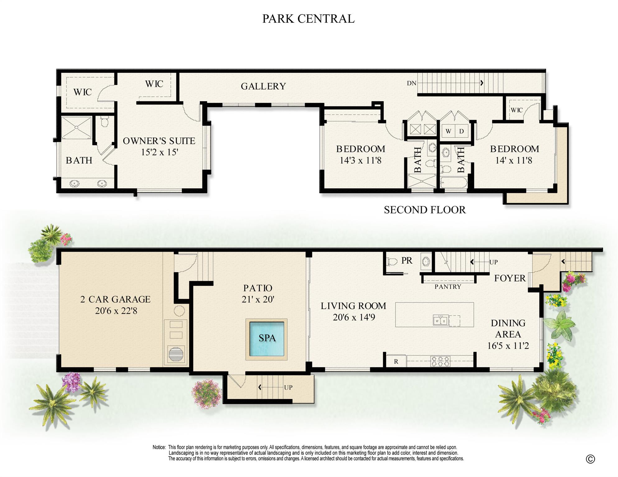 Known as Park Central, a sophisticated modern townhome community, was thoughtfully designed by award-winning Borrero architecture firm and built by Sam Fisch Development. Located in the heart of West Palm Beach, two minutes from downtown, ''The Square,'' the Kravis Center, the PBC Convention Center, Flagler Drive and the Intracoastal Waterway rests this exciting, new-construction, 14-unit townhome community. Featuring two story, state of the art private townhomes each with 2,800+ sq. ft., 3 bedrooms, 3.5 bathrooms, an eat-in open concept kitchen floor plan with Thermador appliances, tons of storage and private spa-like pools. The interior spaces were designed to highlight South Florida's sunshine and modern-chic lifestyle. Boasting floor to ceiling glass sliders in the living room, the