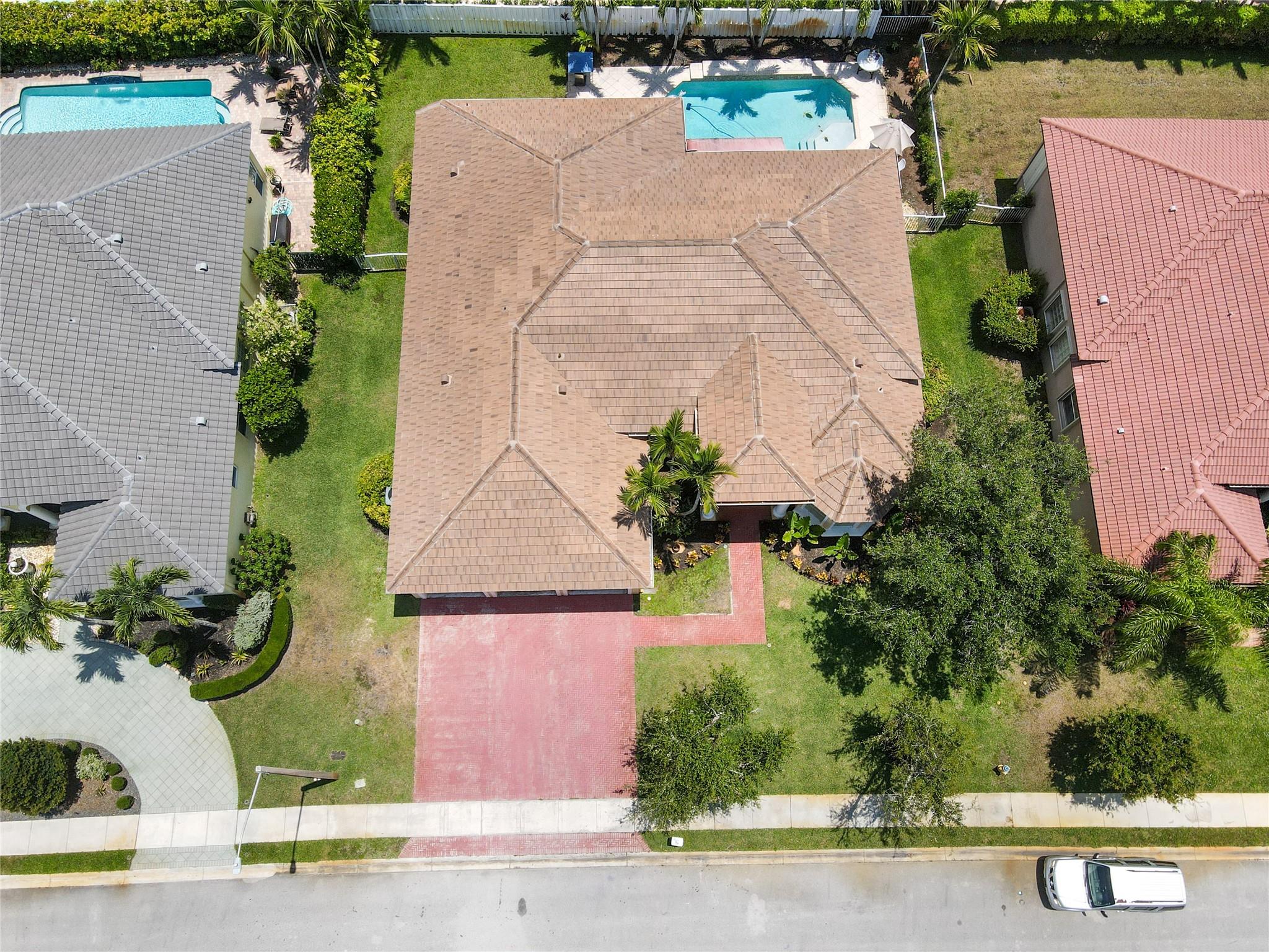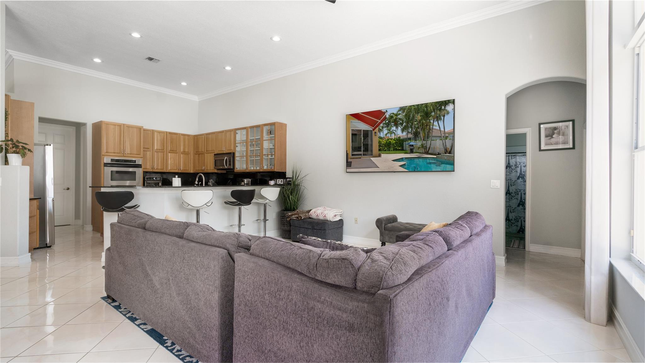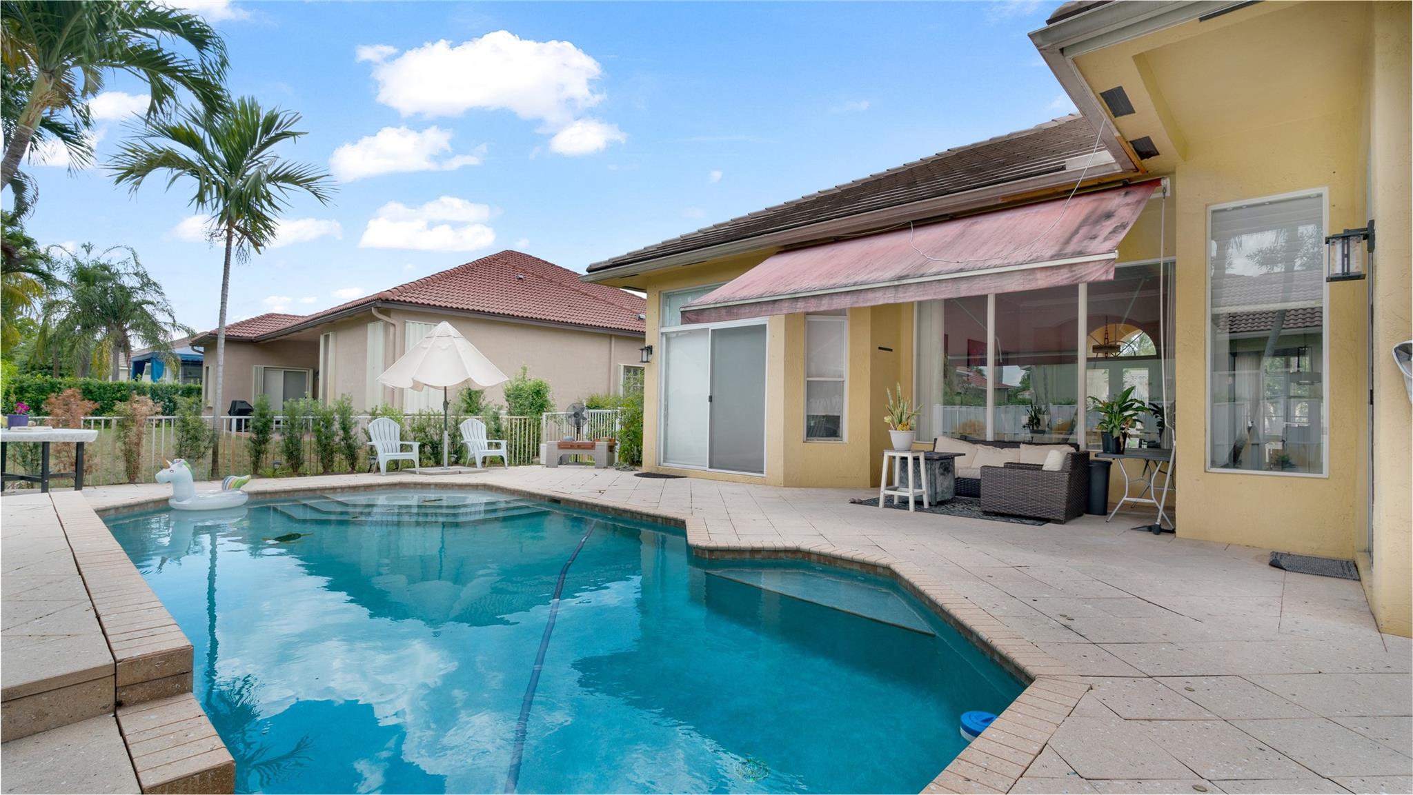 Grand 4 Bedroom 3 Bathroom 3 Car Garage pool home located in man-gated community of Estates of Pembroke Shores. Home Boast Vaulted ceilings, very open split plan layout with lots of sunlight. Tile throughout living space areas and Vinyl wood floors in all bedrooms. The kitchen features a removable island, Granite countertop, Stainless steel appliances, large cabinets and pantry for a lot of storage space. Main Bedroom features Blackout blinds, two walk in closets and double door entry. Main Bathroom features a jacuzzi, a stand-up shower with two shower heads, and a walk in Linen Closet. Separate Laundry room. The Cabana Bathroom has been remodeled. Backyard is large for entertaining, completely fenced, a retraceable awning and a large pool. Roof was replaced in 2024.