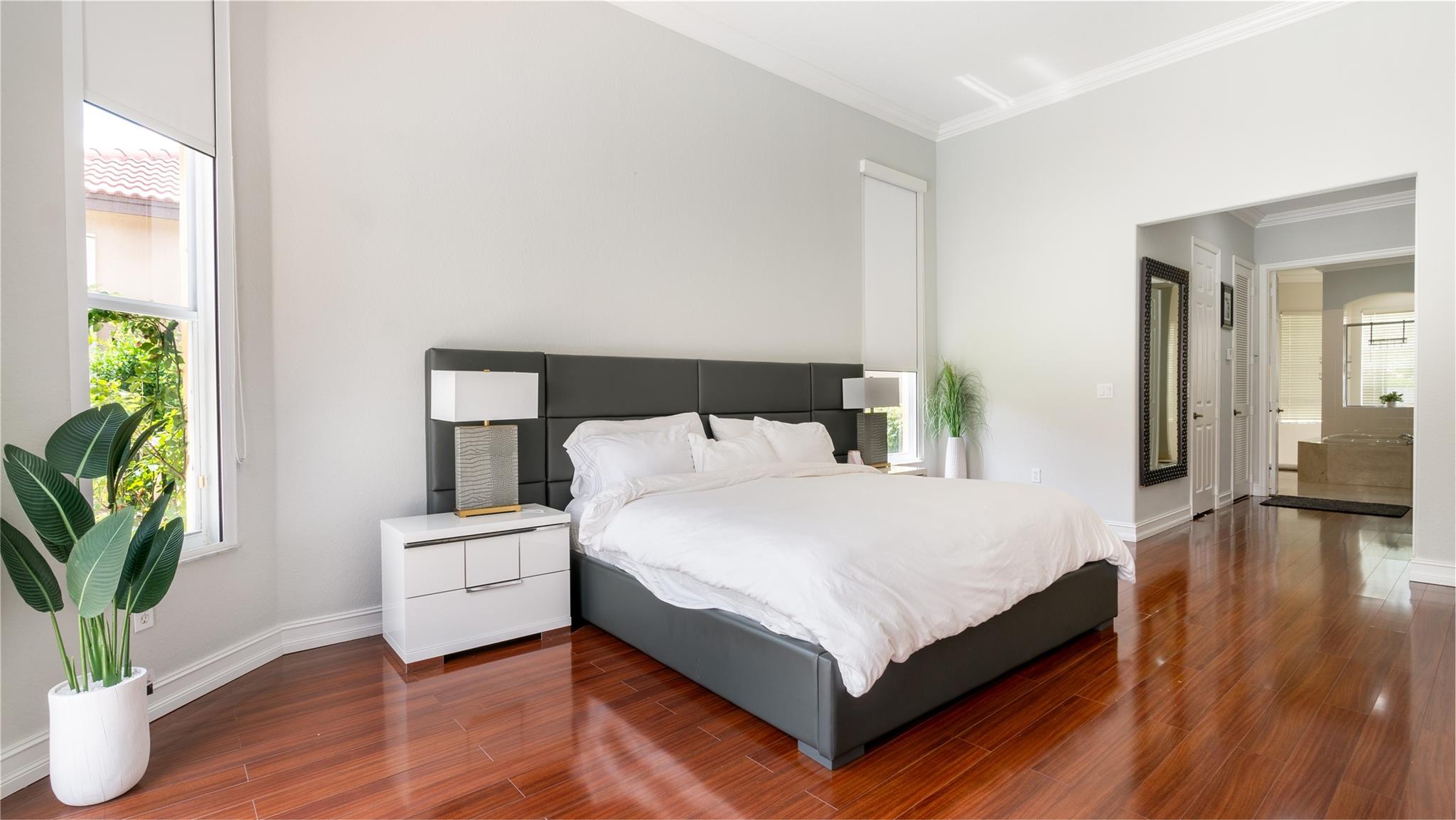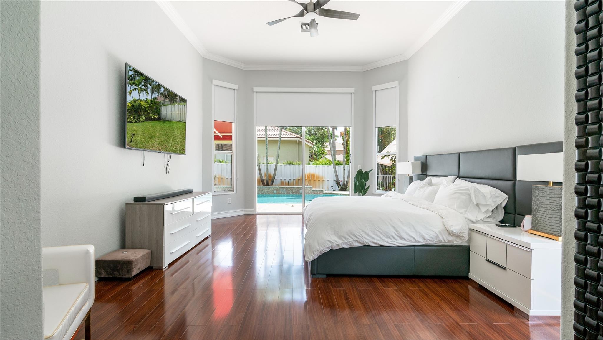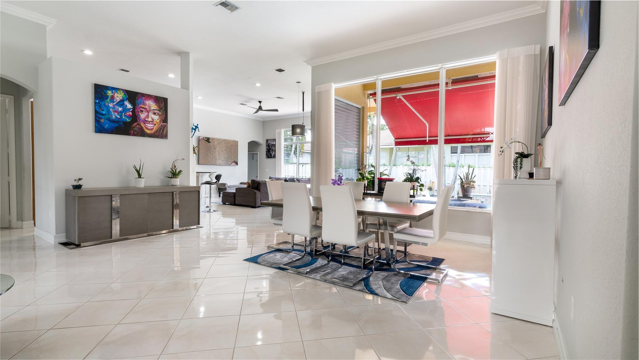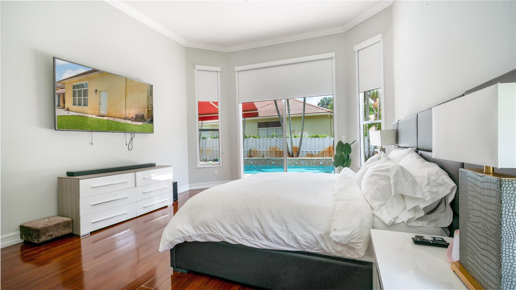 Grand 4 Bedroom 3 Bathroom 3 Car Garage pool home located in man-gated community of Estates of Pembroke Shores. Home Boast Vaulted ceilings, very open split plan layout with lots of sunlight. Tile throughout living space areas and Vinyl wood floors in all bedrooms. The kitchen features a removable island, Granite countertop, Stainless steel appliances, large cabinets and pantry for a lot of storage space. Main Bedroom features Blackout blinds, two walk in closets and double door entry. Main Bathroom features a jacuzzi, a stand-up shower with two shower heads, and a walk in Linen Closet. Separate Laundry room. The Cabana Bathroom has been remodeled. Backyard is large for entertaining, completely fenced, a retraceable awning and a large pool. Roof was replaced in 2024.