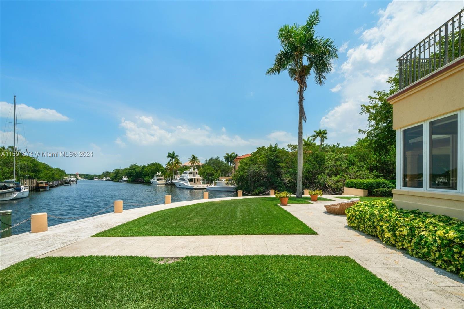 Rare & extraordinary waterfront estate in the highly sought-after gated community of Cocoplum Phase 1, situated on a sprawling 37,500 SF point lot where 3 waterways converge. Offers approximately 378 ft of water frontage & 200 ft of dock on the Lago Monaco waterway, with long water views & direct bridge-free access to the Bay. This elegant 6,618 SF Mediterranean-style home features double-height ceilings, expansive spaces & stunning sunrise views from the interior. The property’s superior docking & exceptional fishing make it ideal for boating enthusiasts. Additional features include a primary suite with an expansive terrace overlooking the waterway, a guest house with versatile entertainment area, and kitchen. Underwent complete award-winning renovation and expansion in 1992.