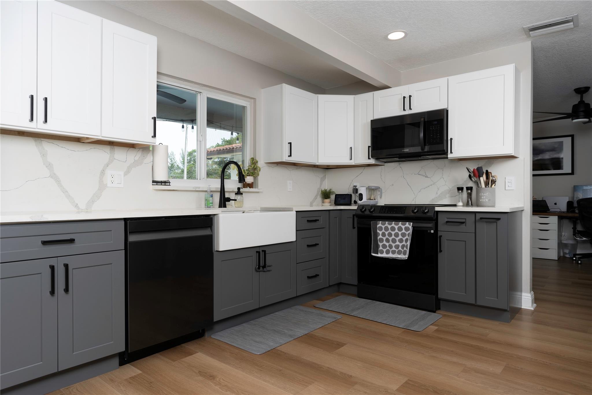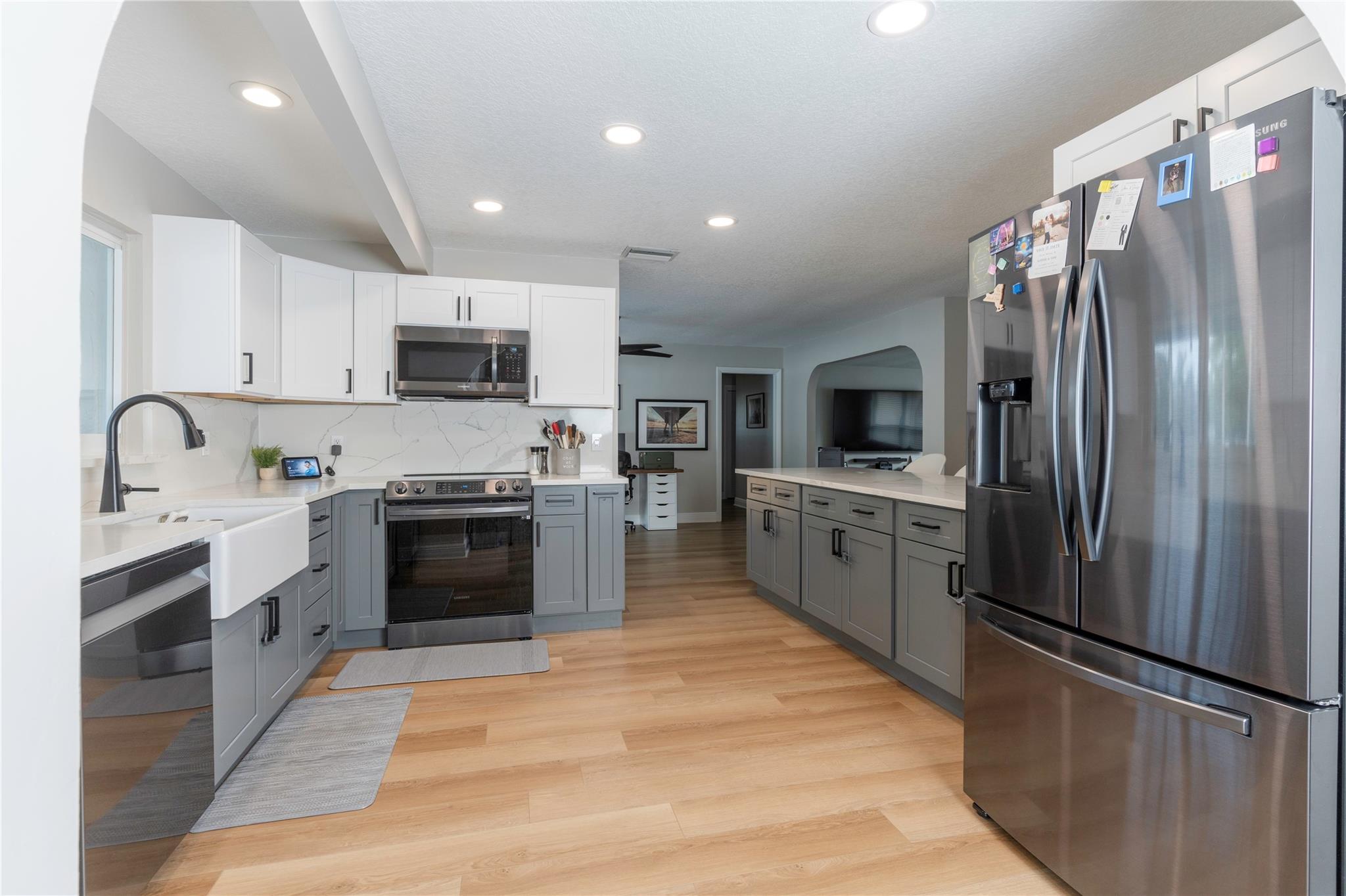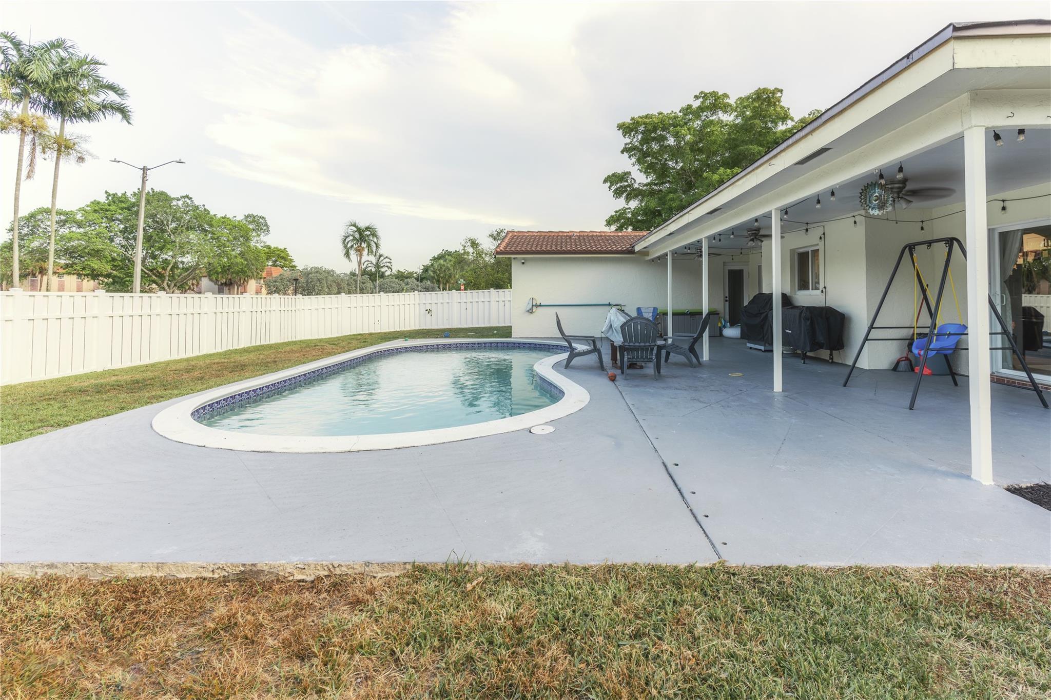 Welcome to this beautifully updated 3/2.5 property in the coveted Forest Hills neighborhood with no HOA! Sitting on over a quarter-acre corner lot, the home offers a custom kitchen with quartz countertops and backsplash, bar seating, and new Samsung black stainless steel appliances. The large two-car garage features a new Samsung washer, dryer, and an extra refrigerator! The home's exterior features more space for family time under the covered back patio, surrounded by a new PVC privacy fence and a pool to enjoy the warm Florida weather. The house is equipped with impact doors and windows. Only minutes away from all your shopping, dining, and entertainment needs. Schedule your showing now to ensure your opportunity to live in one of South Florida's best neighborhoods. Tile Roof 2016