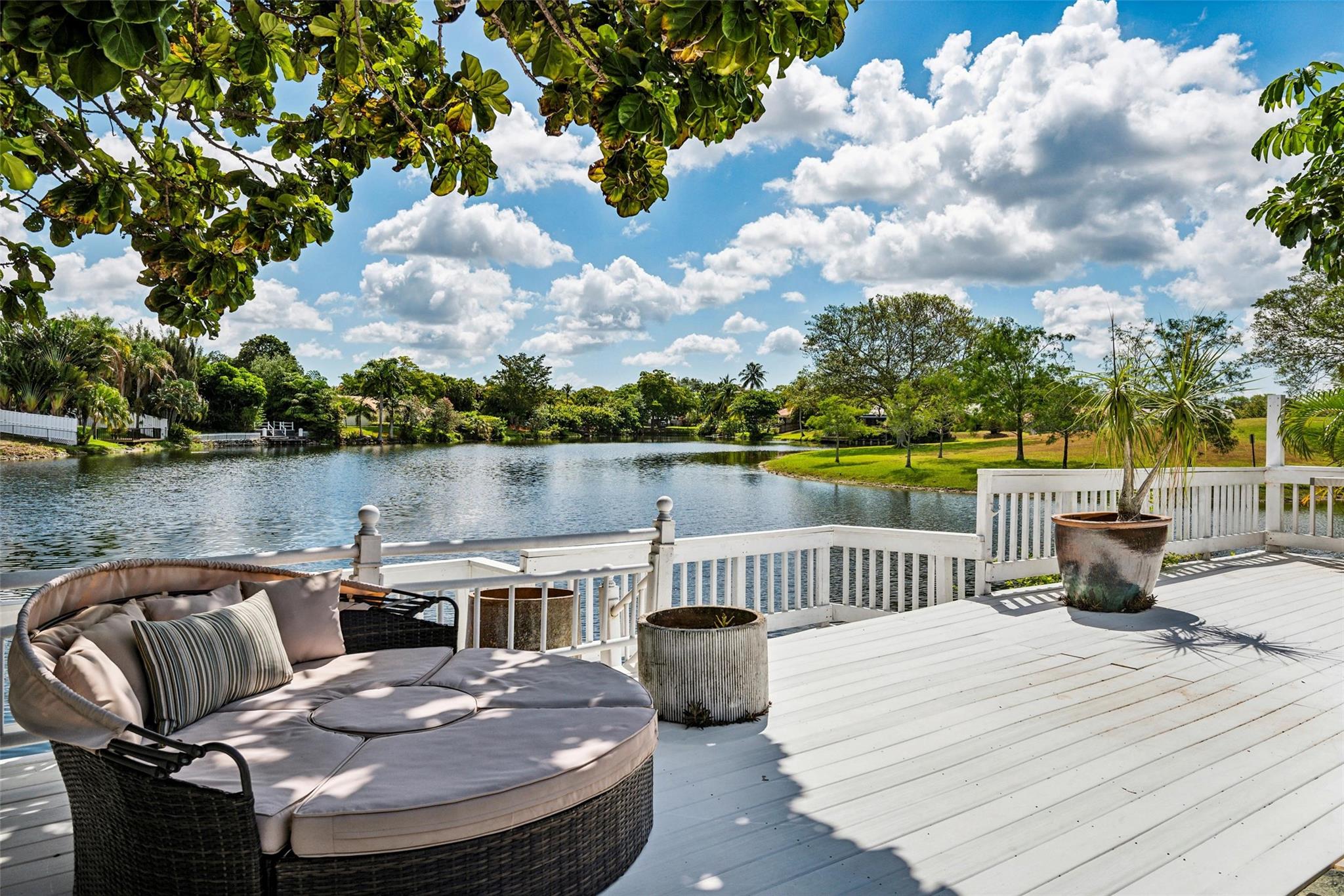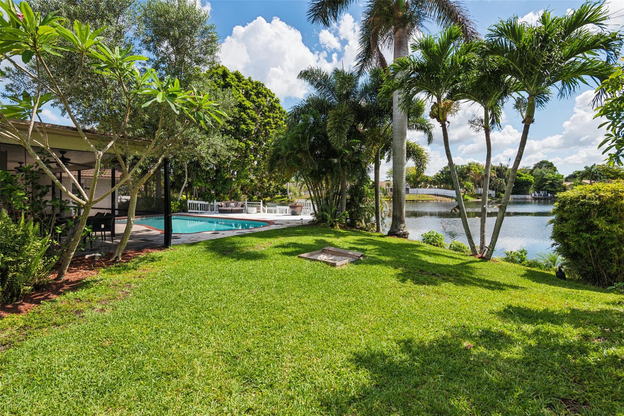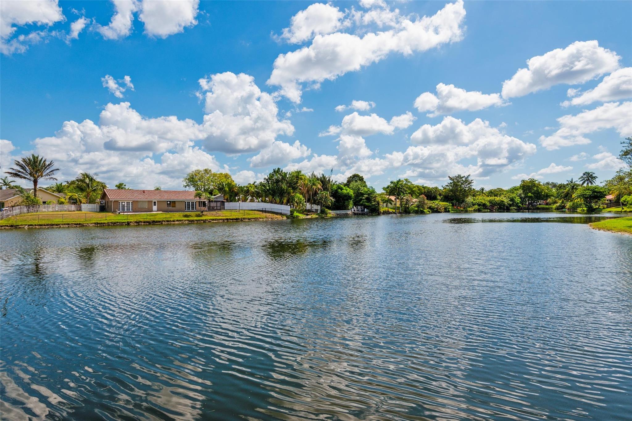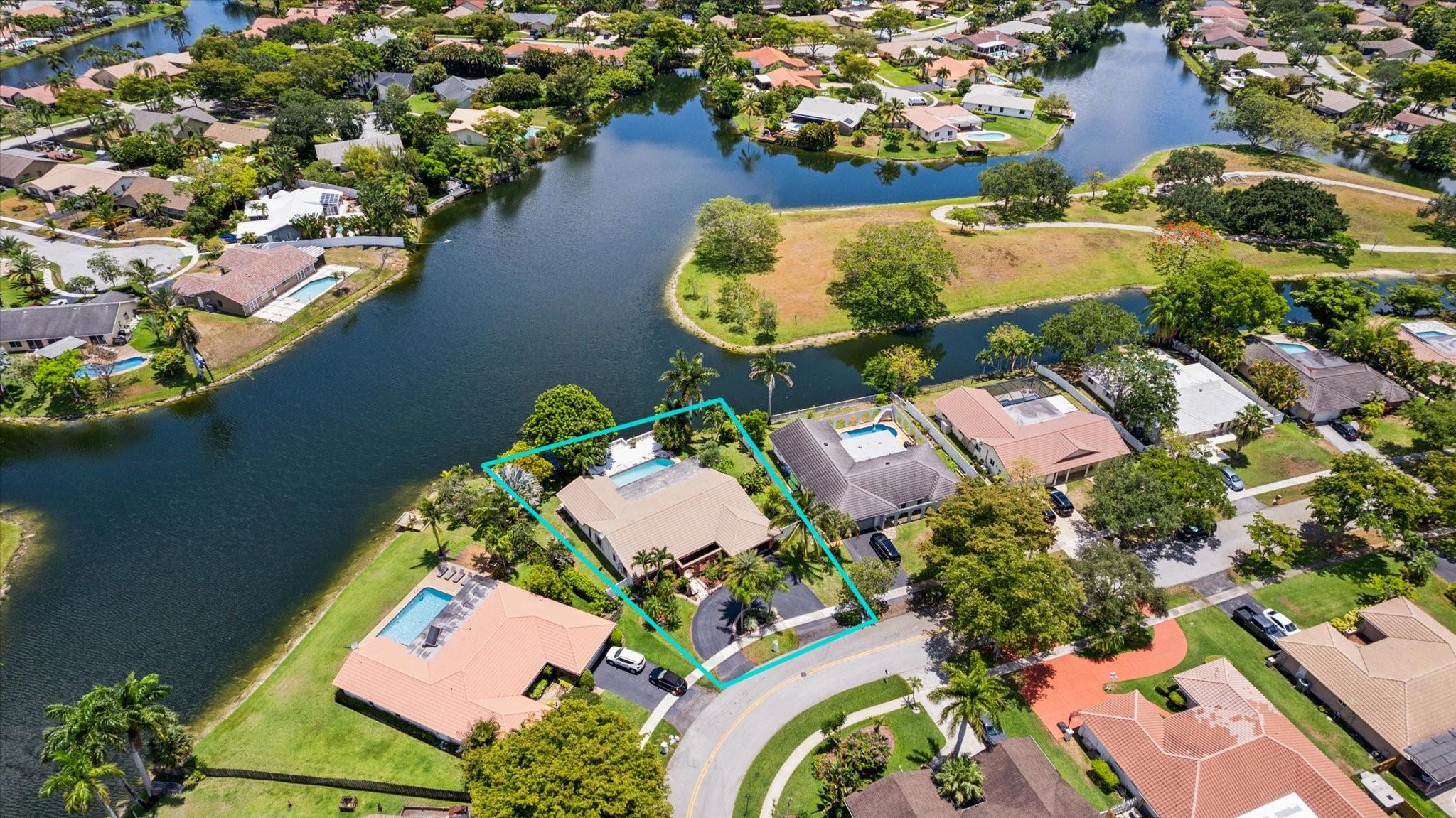 LOCATION, LOCATION, LOCATION! Welcome to this exceptional lakefront retreat! Situated on one of the best wide lakefront lots in Jacaranda Lakes, this home offers a serene oasis with breathtaking views. Enjoy your own private dock, a 15x30 pool, and spacious side yards for play. The updated kitchen, family room, and primary ensuite provide lake views. Plenty of room to spread out in the 3 large bedrooms. Both bathrooms are tastefully updated. The ensuite has a cabana bath plus a huge walk-in custom closet. Hurricane protection includes accordion shutters and an impact garage door. Located on a quiet street, this home is within walking distance to a town park within the neighborhood offering tennis/pickleball & playground. Don’t miss this opportunity to own a slice of lakeside paradise!