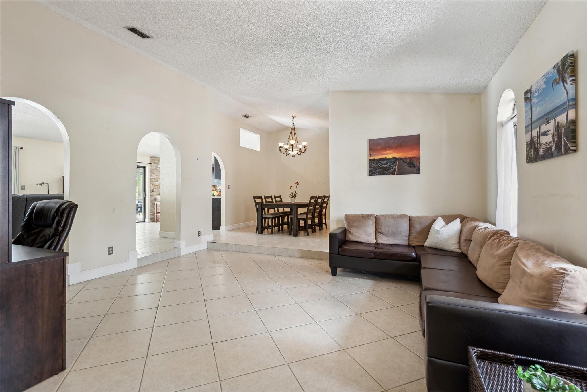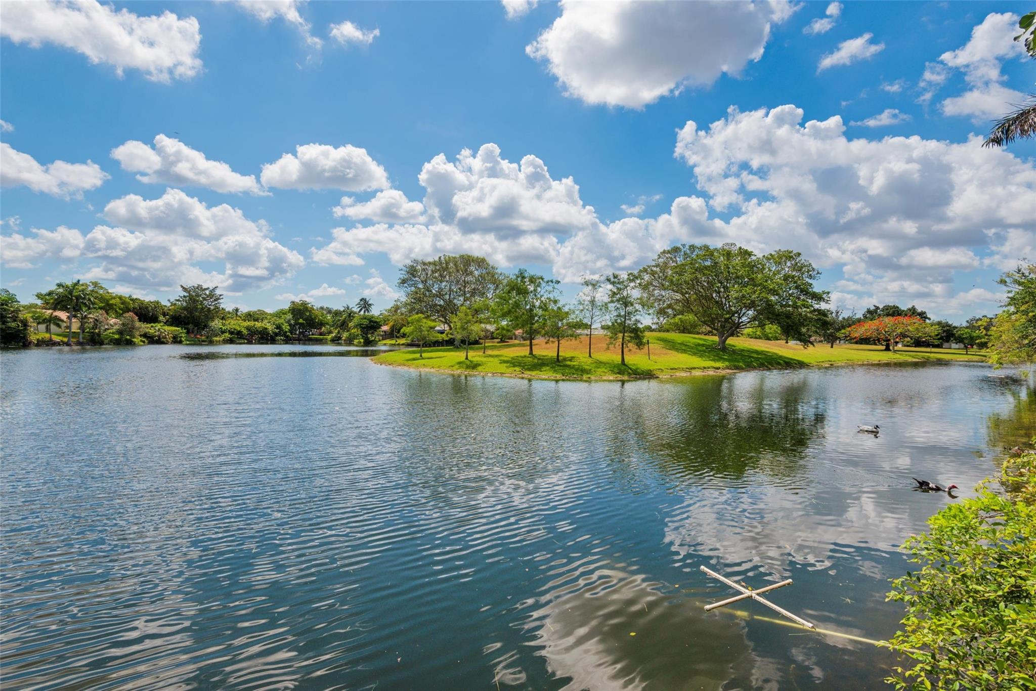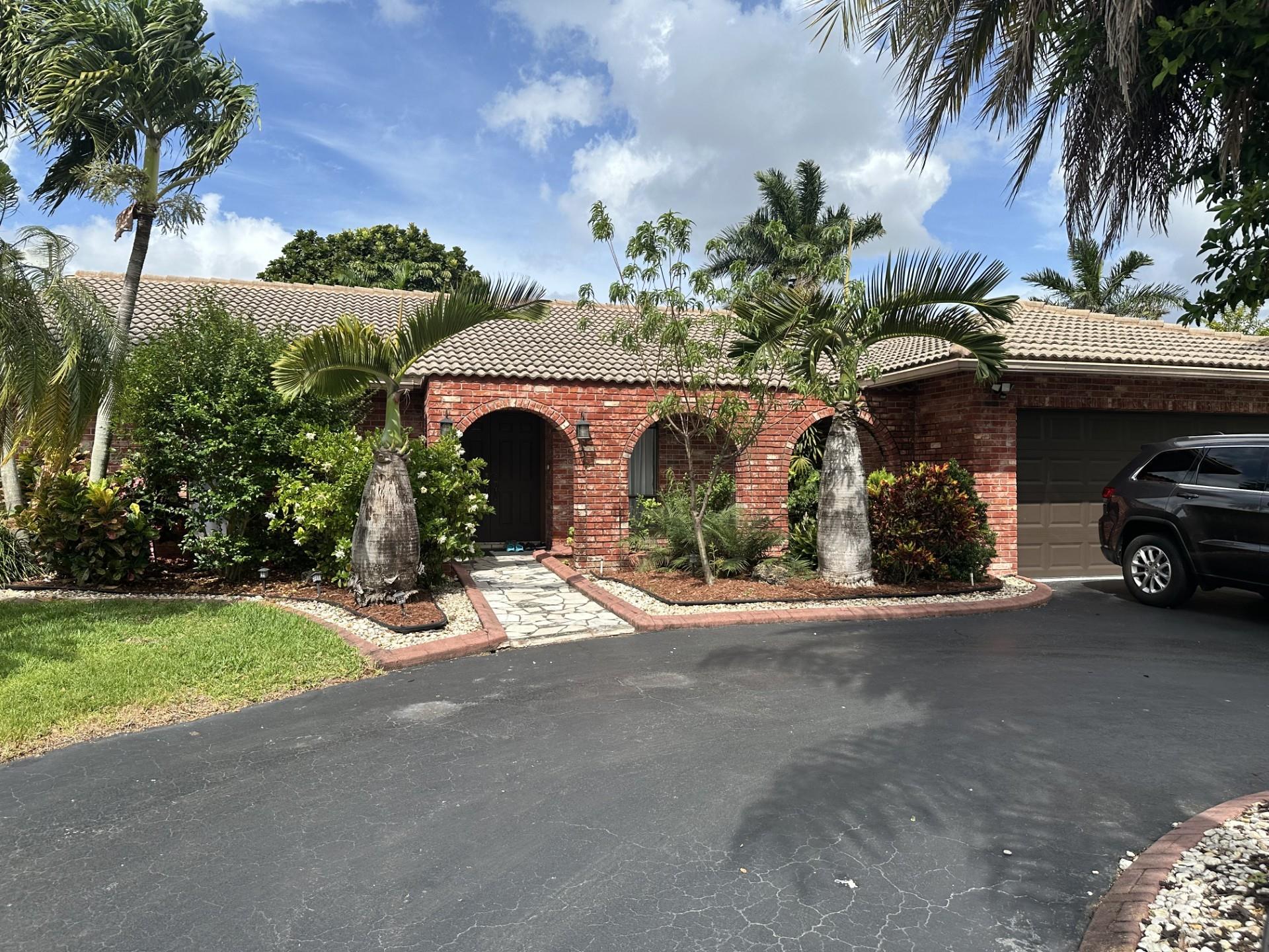 LOCATION, LOCATION, LOCATION! Welcome to this exceptional lakefront retreat! Situated on one of the best wide lakefront lots in Jacaranda Lakes, this home offers a serene oasis with breathtaking views. Enjoy your own private dock, a 15x30 pool, and spacious side yards for play. The updated kitchen, family room, and primary ensuite provide lake views. Plenty of room to spread out in the 3 large bedrooms. Both bathrooms are tastefully updated. The ensuite has a cabana bath plus a huge walk-in custom closet. Hurricane protection includes accordion shutters and an impact garage door. Located on a quiet street, this home is within walking distance to a town park within the neighborhood offering tennis/pickleball & playground. Don’t miss this opportunity to own a slice of lakeside paradise!
