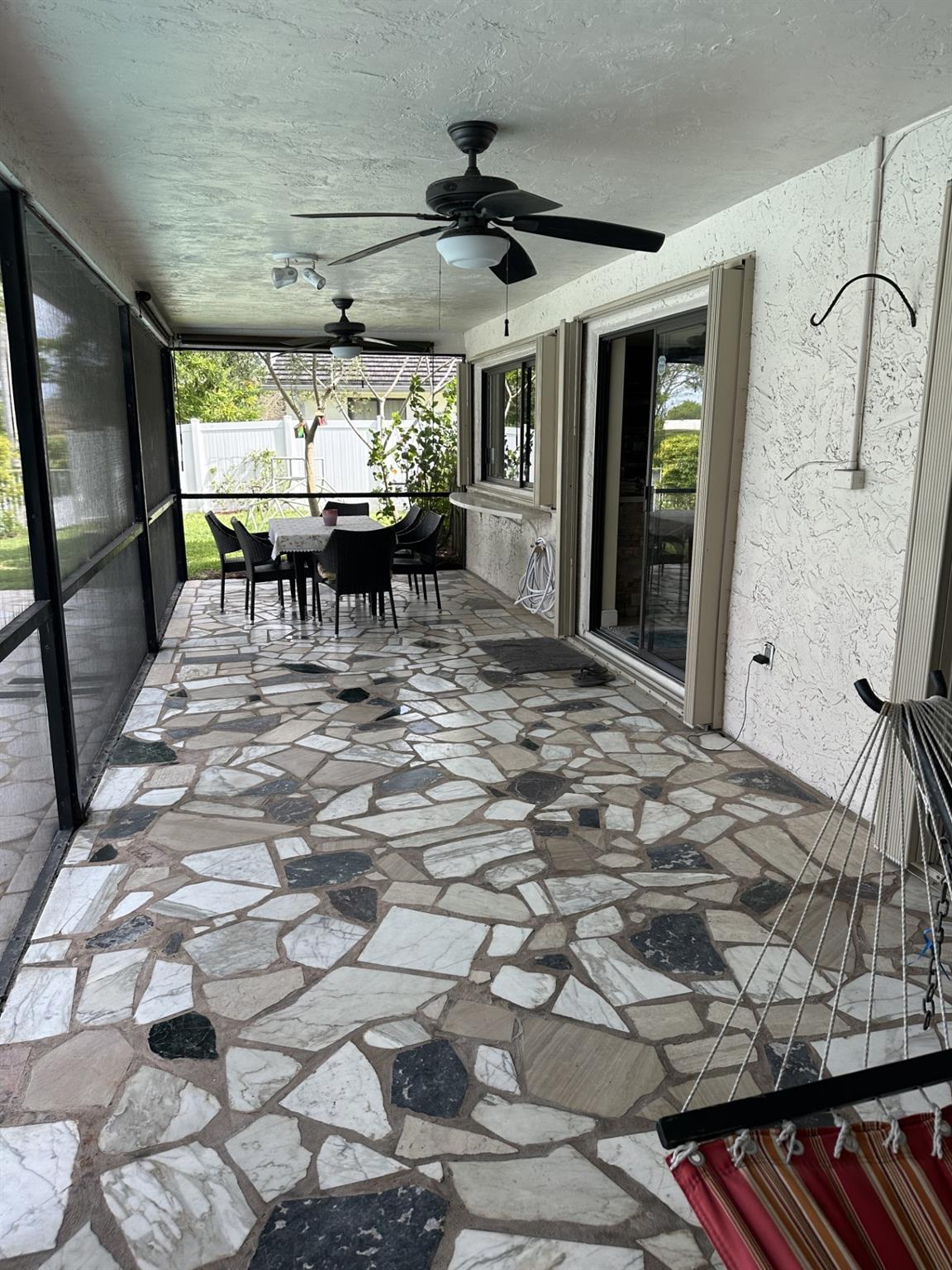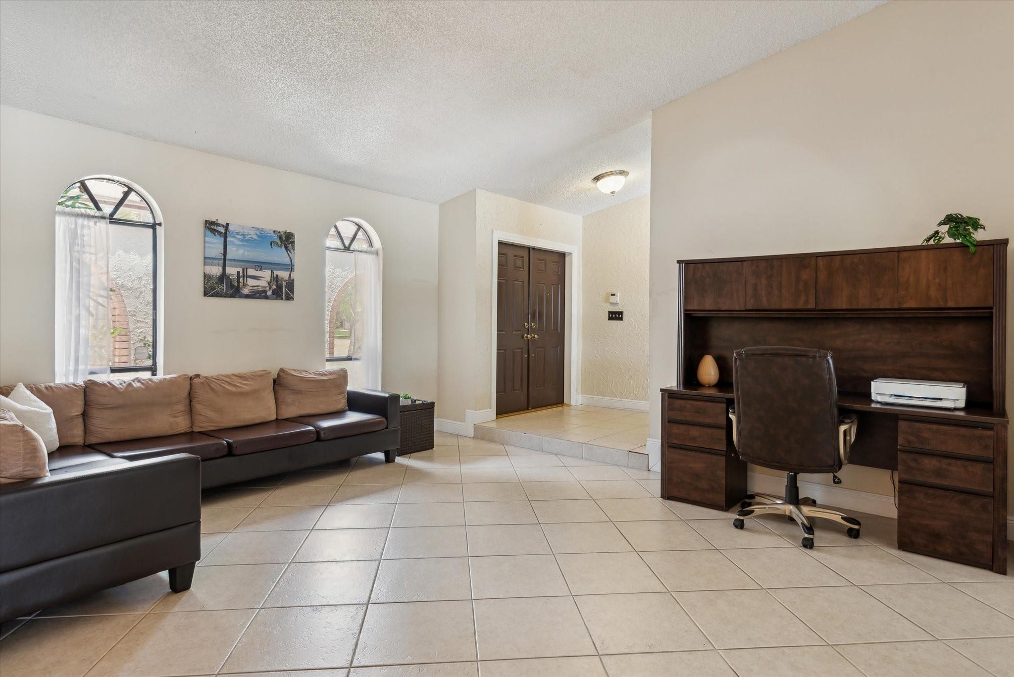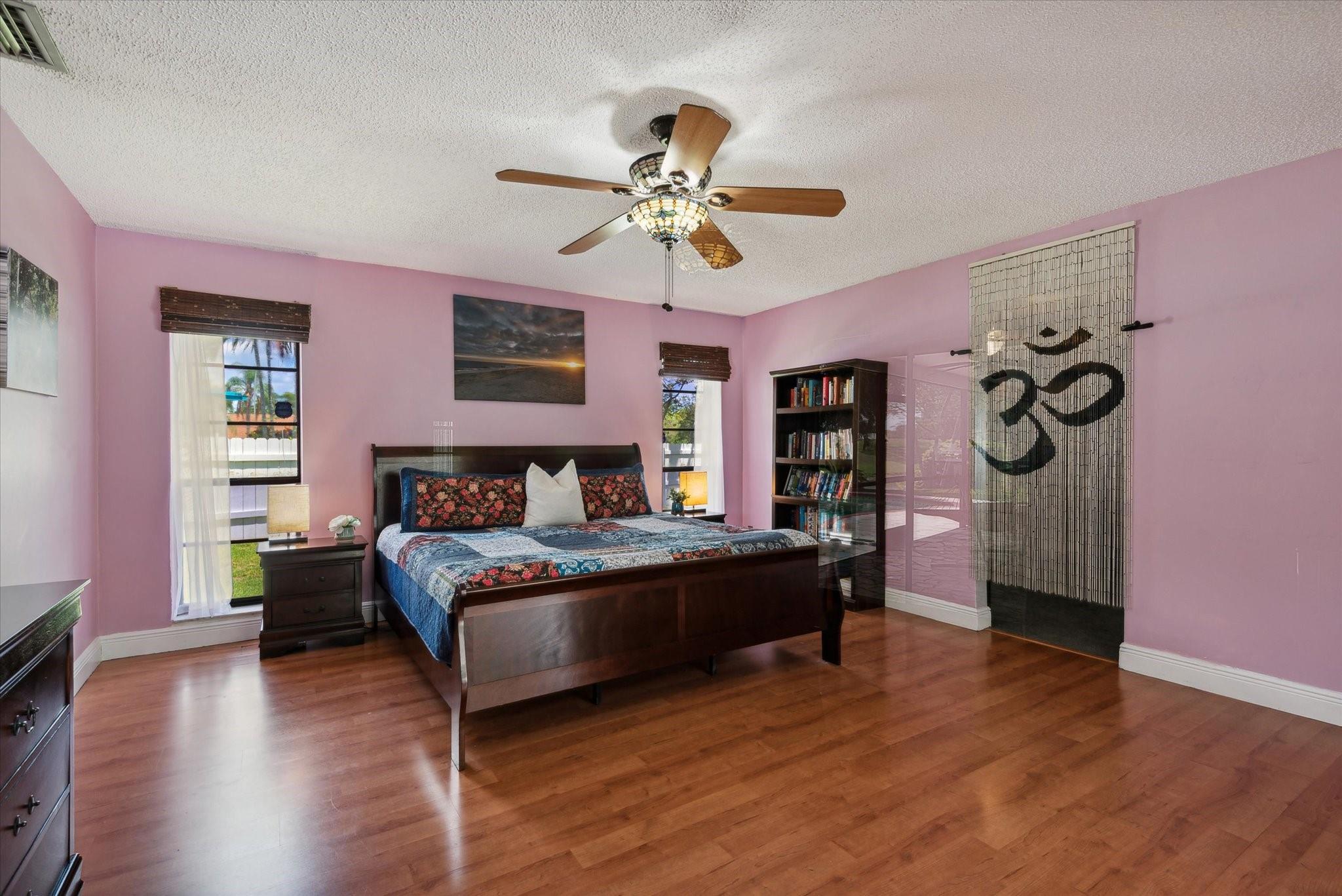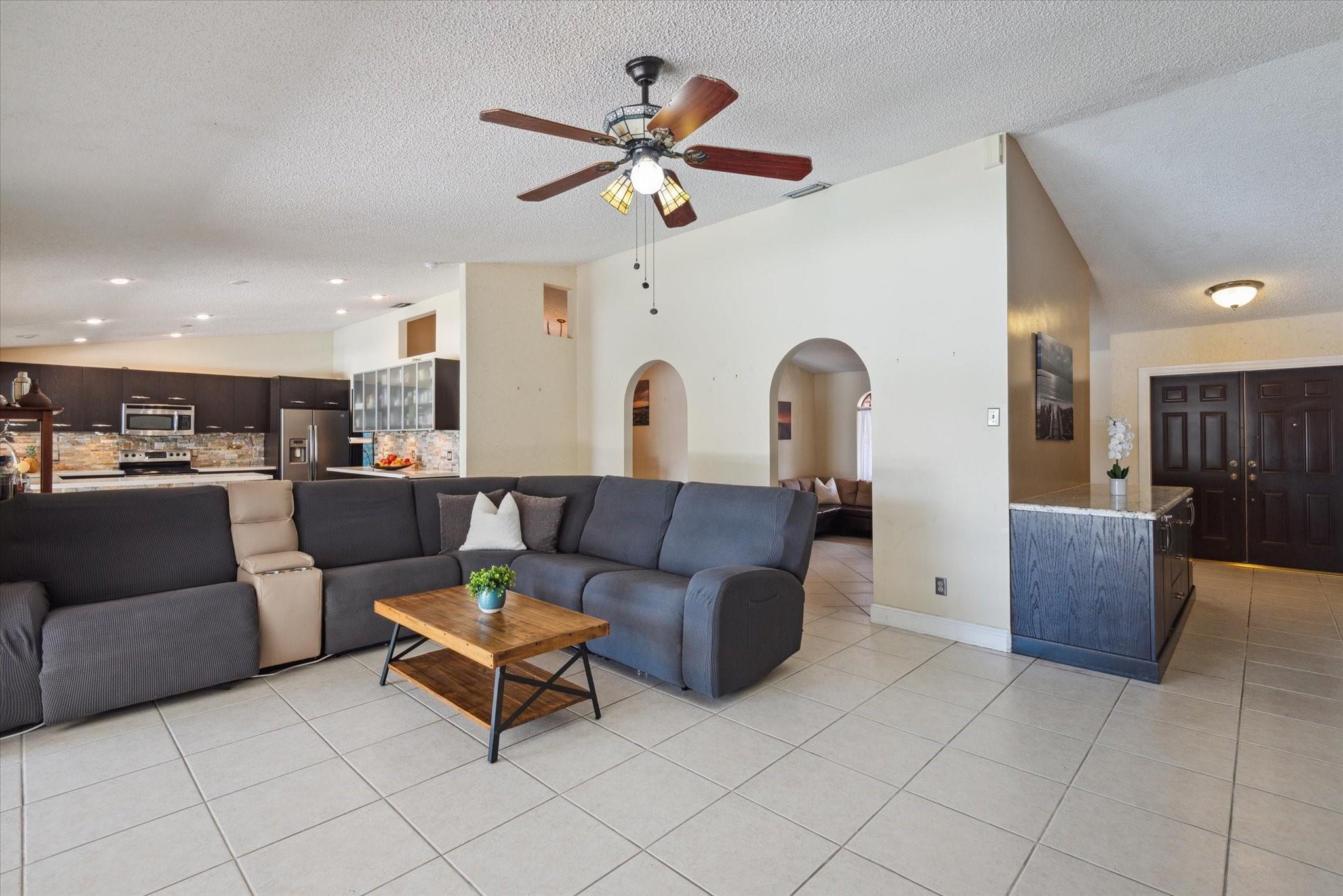 LOCATION, LOCATION, LOCATION! Welcome to this exceptional lakefront retreat! Situated on one of the best wide lakefront lots in Jacaranda Lakes, this home offers a serene oasis with breathtaking views. Enjoy your own private dock, a 15x30 pool, and spacious side yards for play. The updated kitchen, family room, and primary ensuite provide lake views. Plenty of room to spread out in the 3 large bedrooms. Both bathrooms are tastefully updated. The ensuite has a cabana bath plus a huge walk-in custom closet. Hurricane protection includes accordion shutters and an impact garage door. Located on a quiet street, this home is within walking distance to a town park within the neighborhood offering tennis/pickleball & playground. Don’t miss this opportunity to own a slice of lakeside paradise!