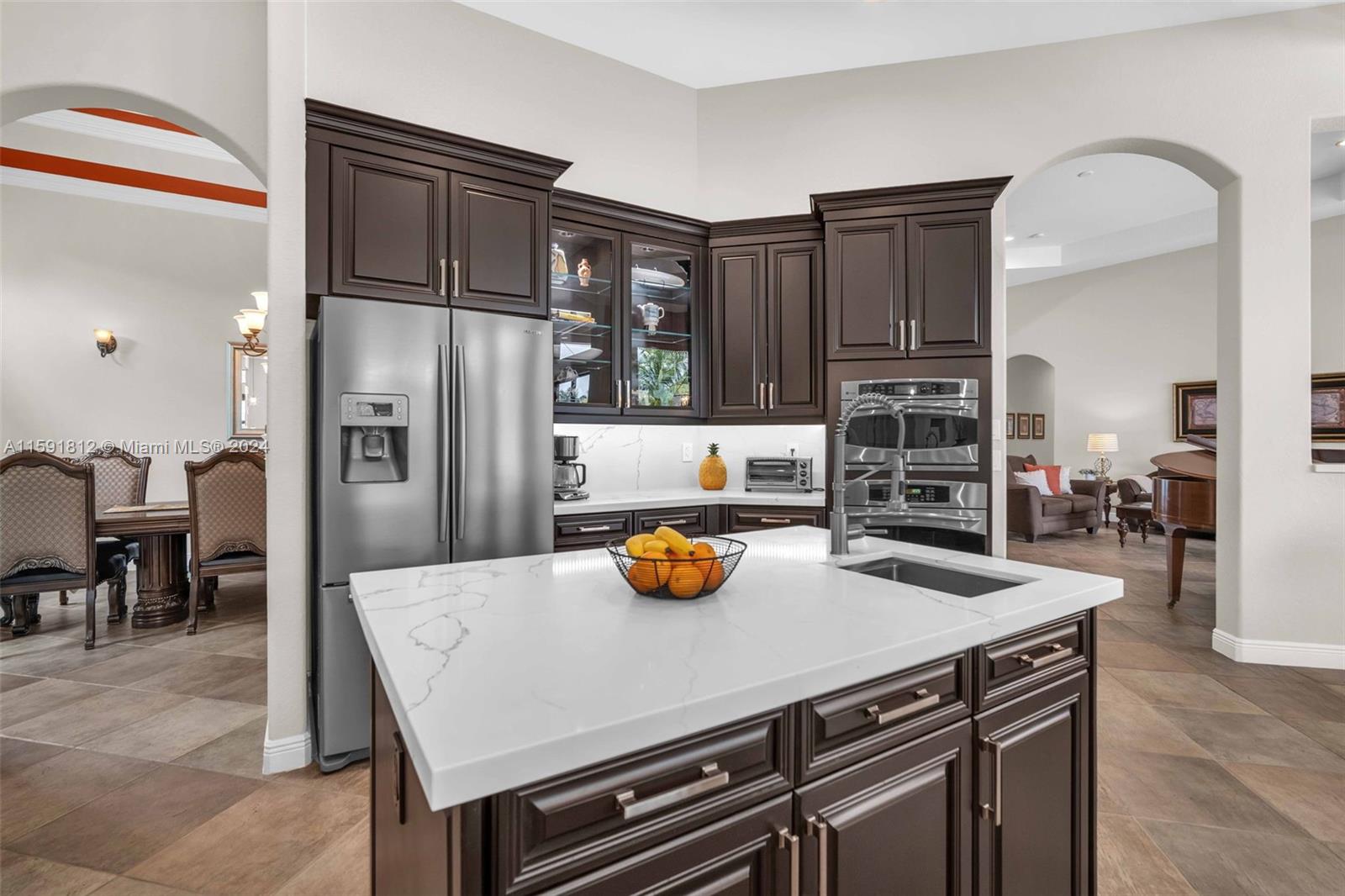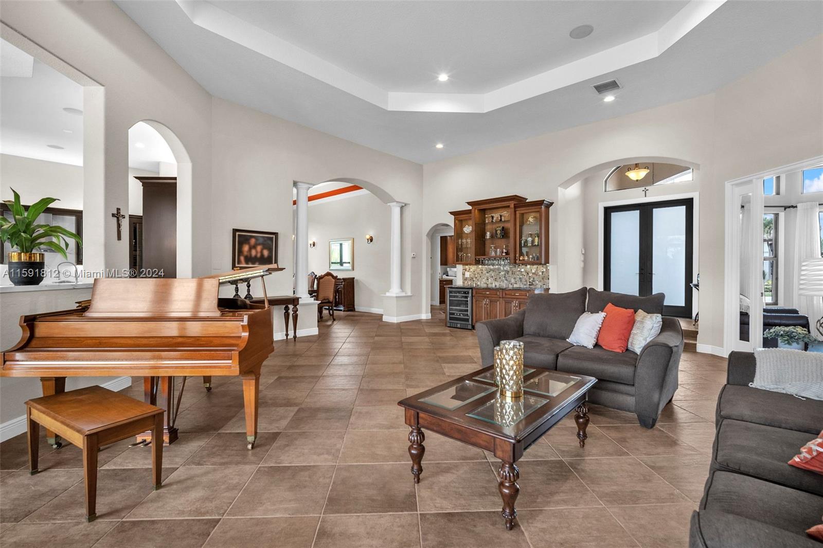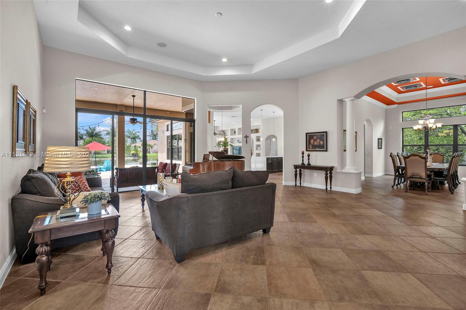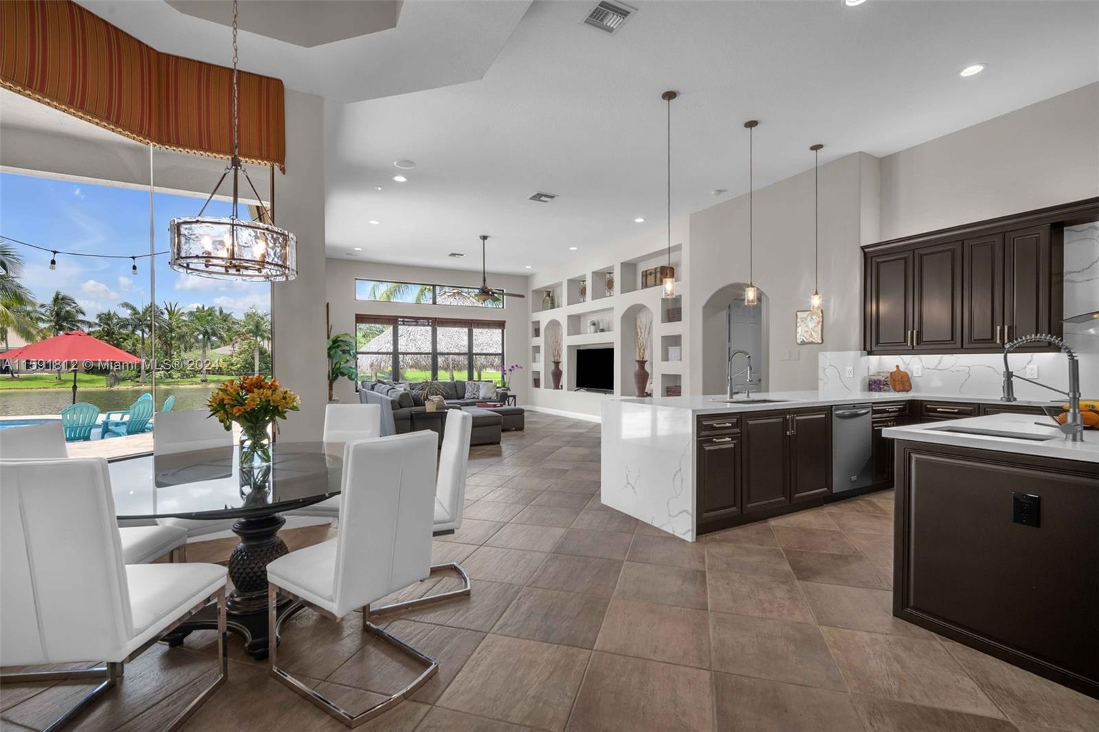 Welcome to the epitome of luxury living in the prestigious gated community of Riverstone. This stunning estate boasts breathtaking lake views and an array of unparalleled amenities. The open floor triple split plan blends sophisticated elegance with modern comfort, featuring a renovated kitchen w/ SS appliances. Entertain in grand style in the formal dining room or retreat to the outdoor oasis and find a pristine pool w/ jacuzzi, summer kitchen, fire pit, & tiki hut. The master suite is a sanctuary with his/hers bathrooms. This home also includes a movie room, office, gym, and bonus room. Roof and impact windows installed 2022. Situated in the heart of Davie where equestrian life is celebrated & surrounded by fine dining & shopping. This property is more than a home; it’s a lifestyle.