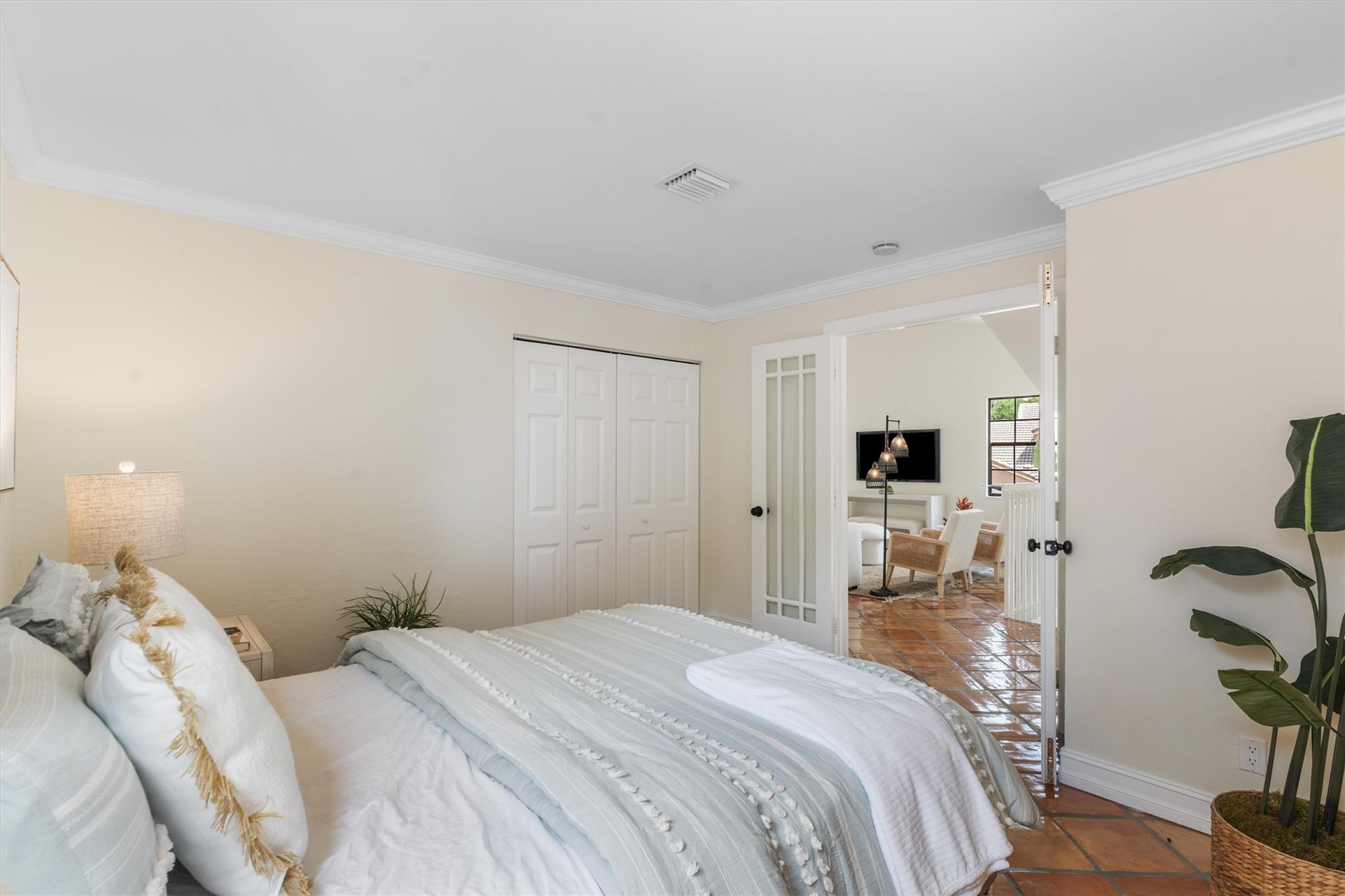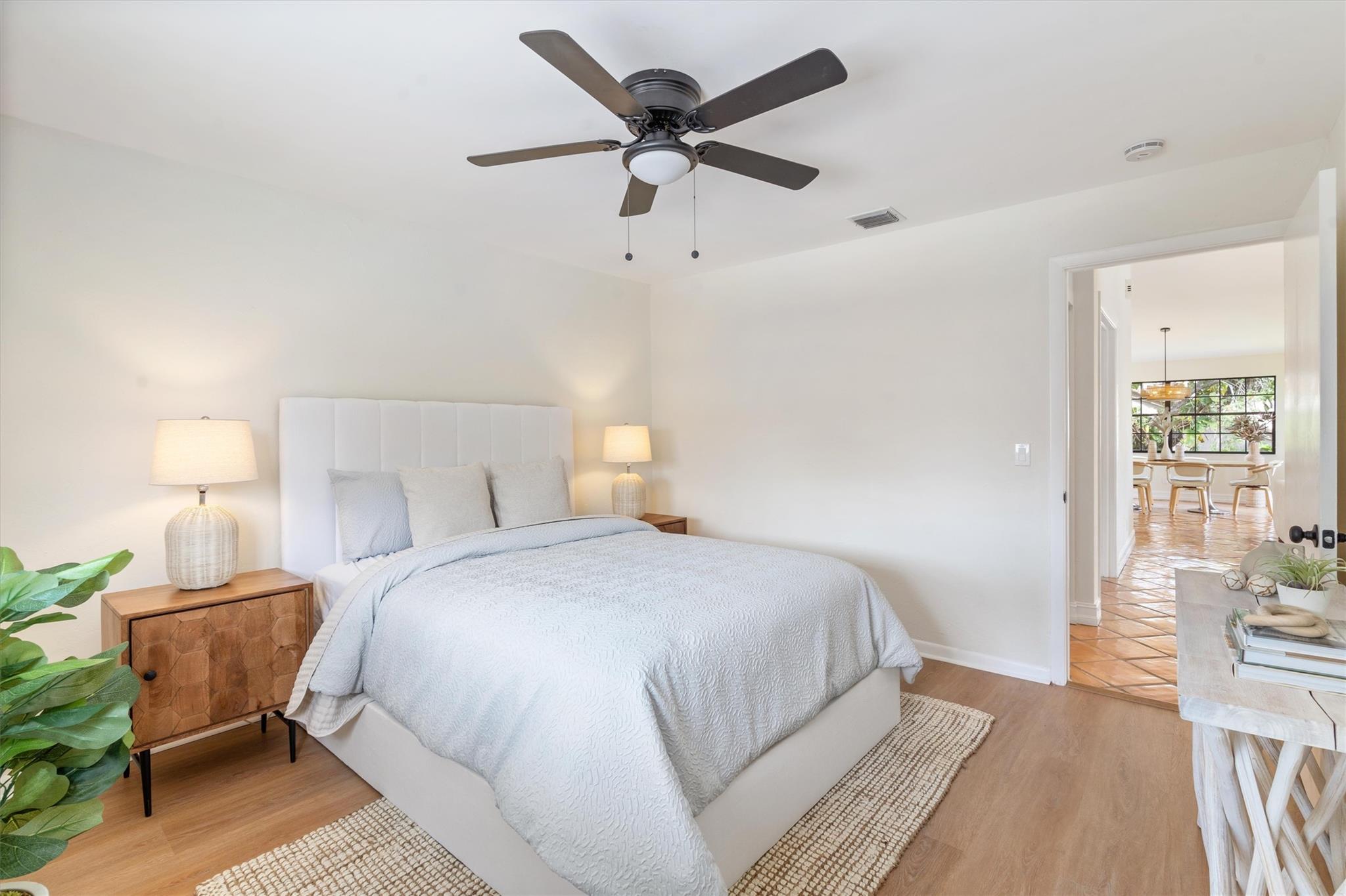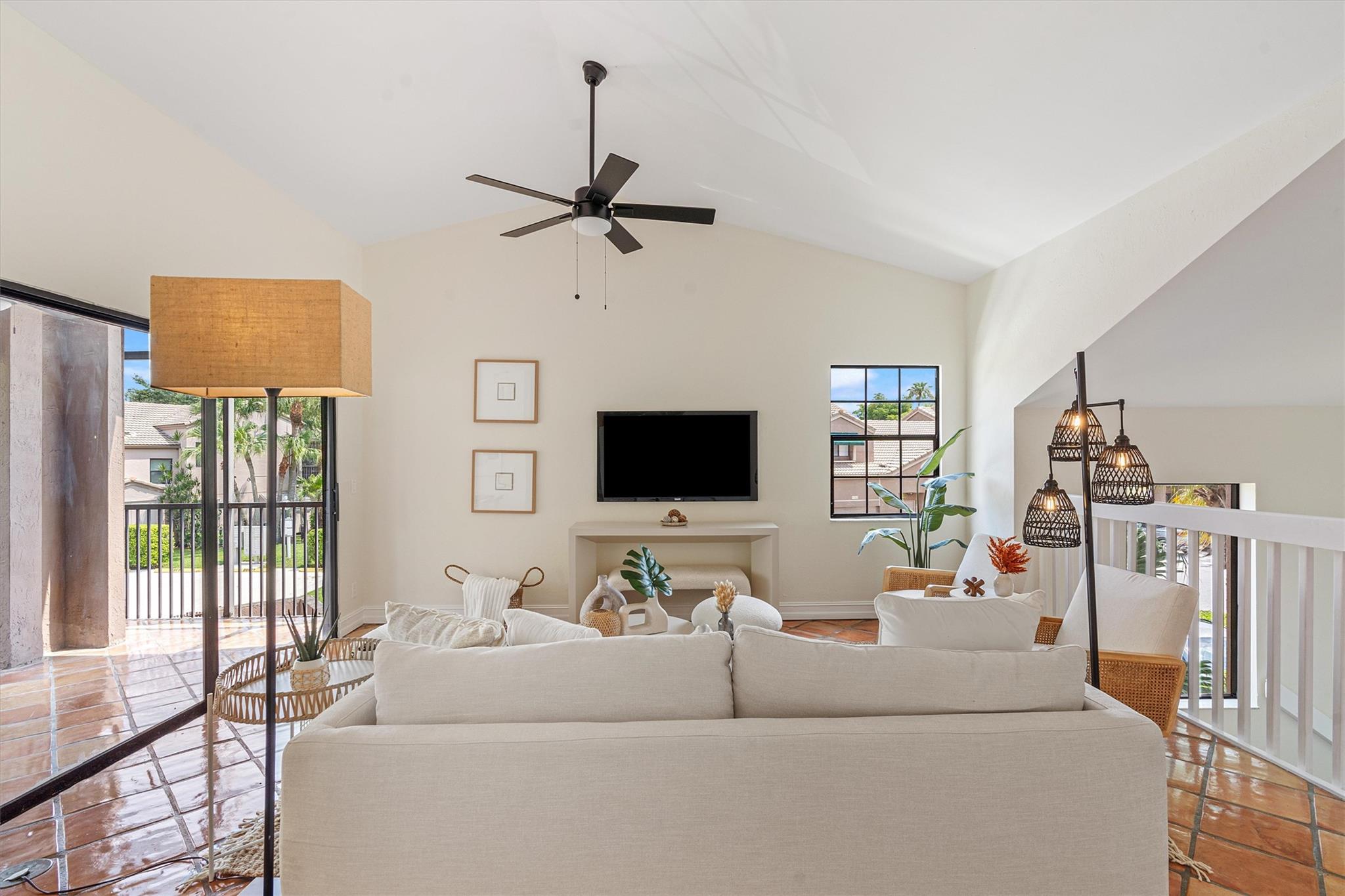 This captivating home exudes charm and tranquility. Newly renovated corner townhouse is warm and inviting. Boasting fresh paint, waterproof wood flooring in bedrooms and baths, and timeless clay tile in the living space. New kitchen features solid wood shaker cabinetry, quartz counters, high-end stainless appliances, and a spacious pantry. New designer lighting, fans, mirrors, showers, toilets, vanities and stunning double master vanity. Luxurious touches include an oversized shower with a new glass enclosure. Enjoy the newer high-efficiency A/C system and spacious layout with vaulted ceilings, walk-in closets, and a large master suite. Large covered lanai for outdoor entertainment. Even the garage is freshly painted. One year association dues paid by seller with full price offer!