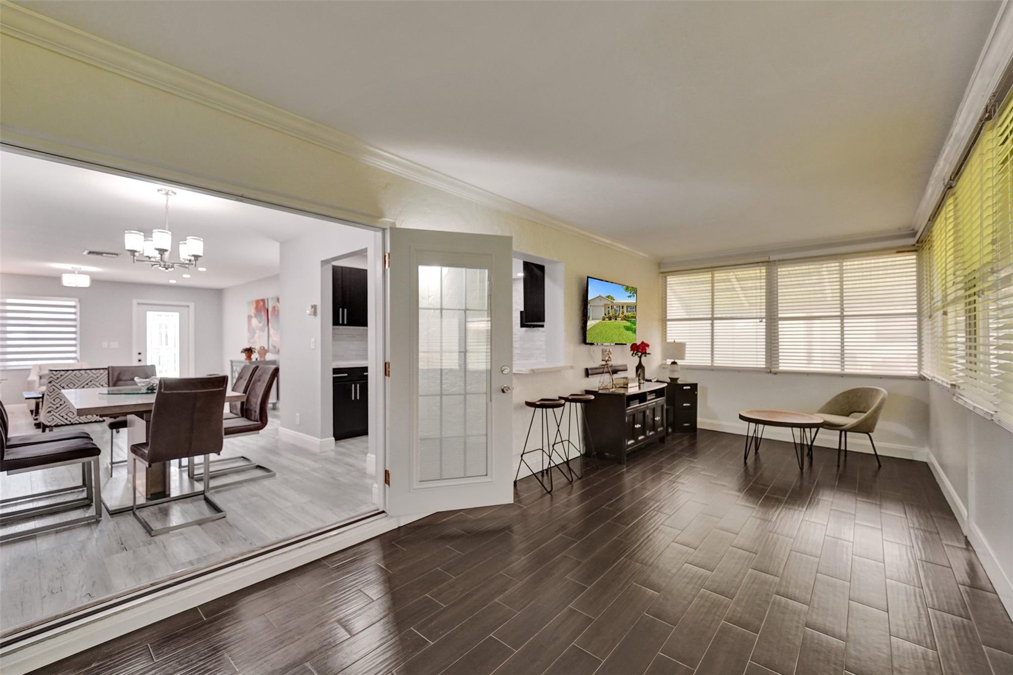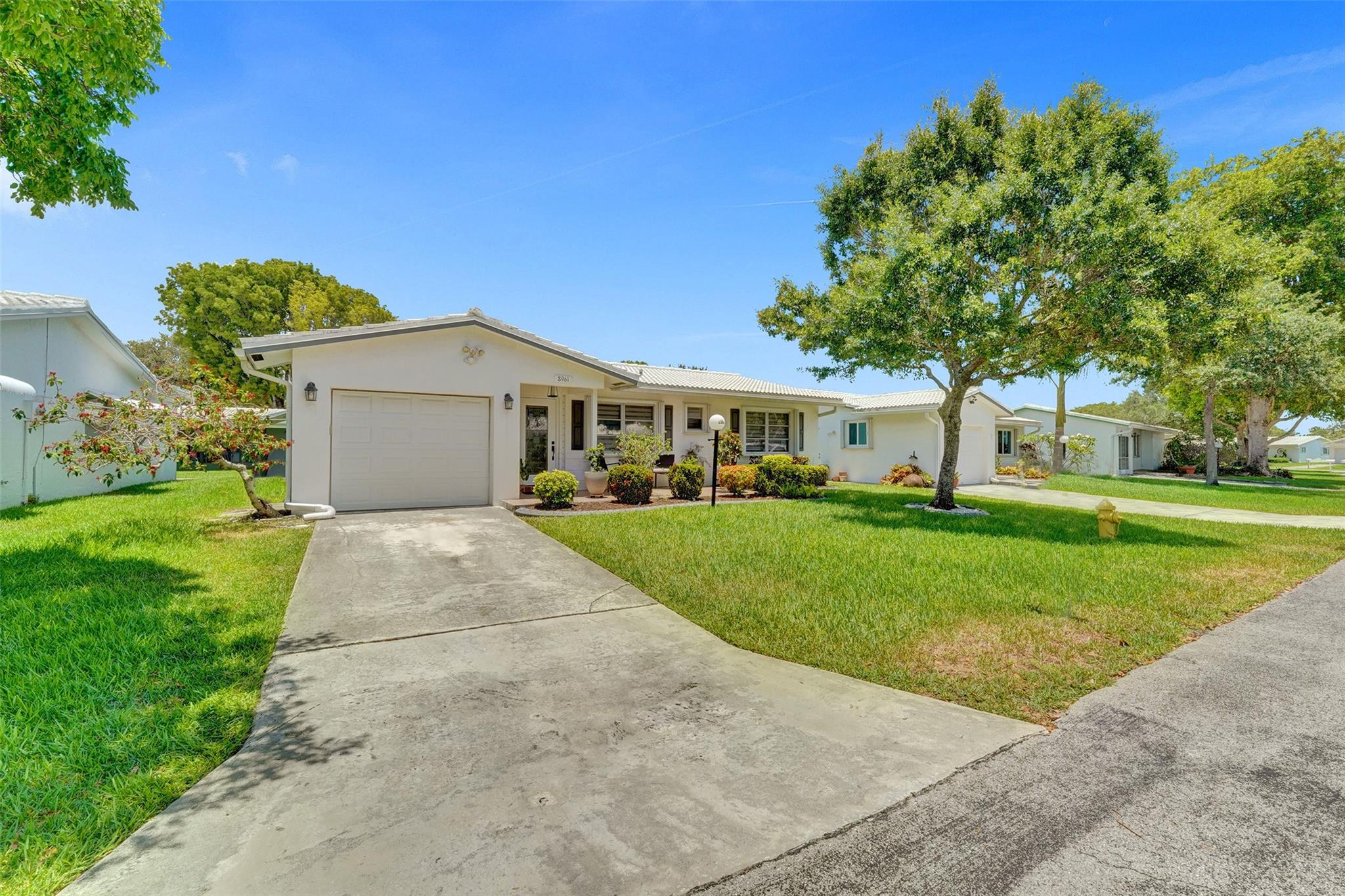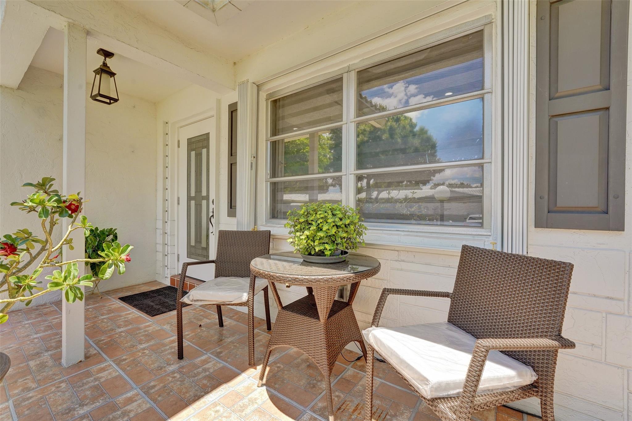 This amazing and move-in-ready 2-bedroom, 2-bathroom home with a one-car garage shows like a model. Nestled in a serene setting, it features accordion shutters and a new impact-resistant glass front door for peace of mind. The interior boasts exquisite waterproof vinyl flooring throughout, spacious walk-in closets, and newly remodeled bathrooms, and zebra curtains on windows. Enjoy the front porch or the inviting Florida room year-round. Additional highlights include a newer A/C unit and a roof that's 8 years old. The vibrant community offers two Olympic-sized pools, a fitness center, saunas, tennis courts, billiards, ping pong, and an active clubhouse with a courtesy bus. Association fees cover roof maintenance, exterior painting, lawn care, internet, cable TV, and more.