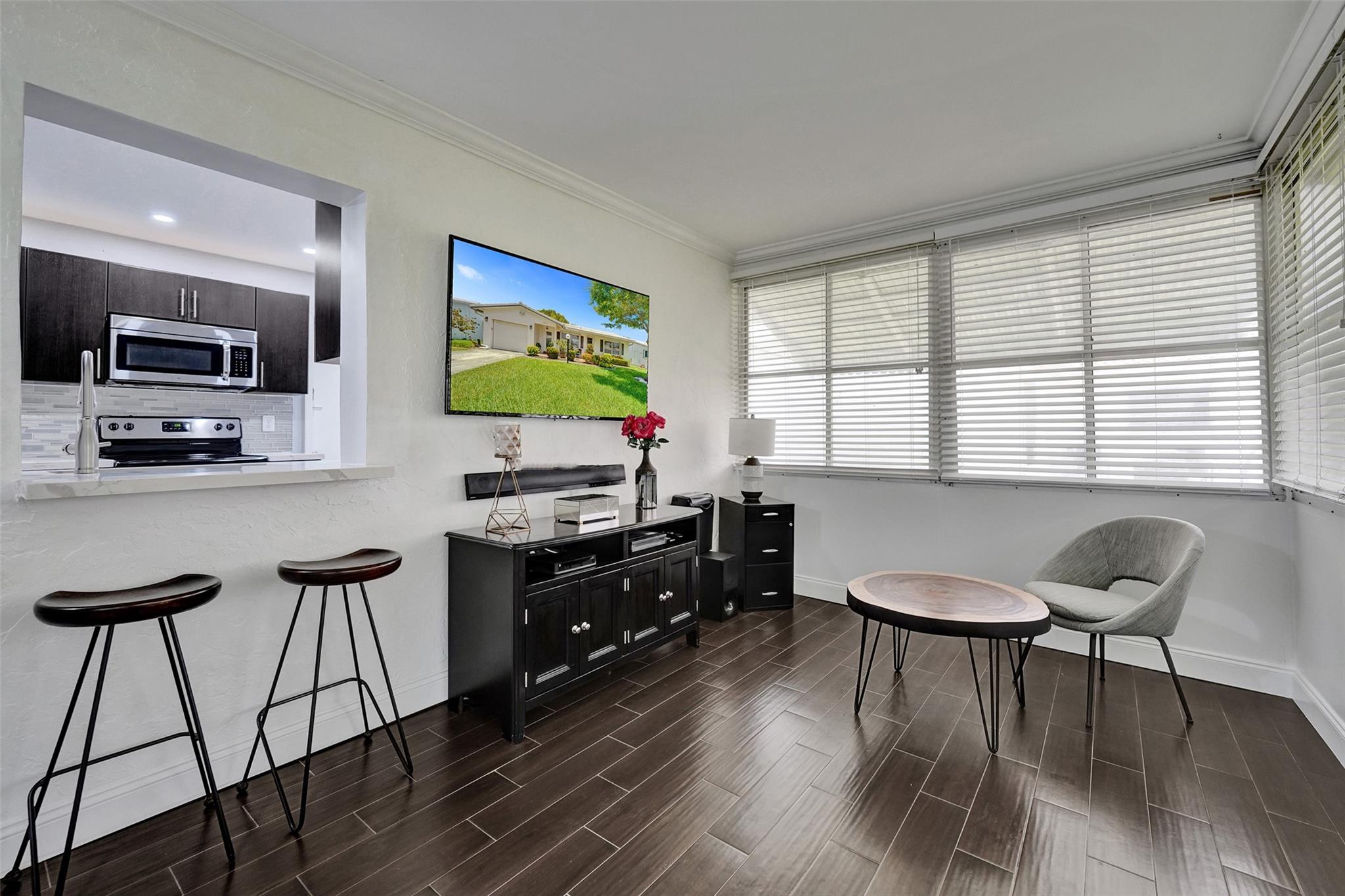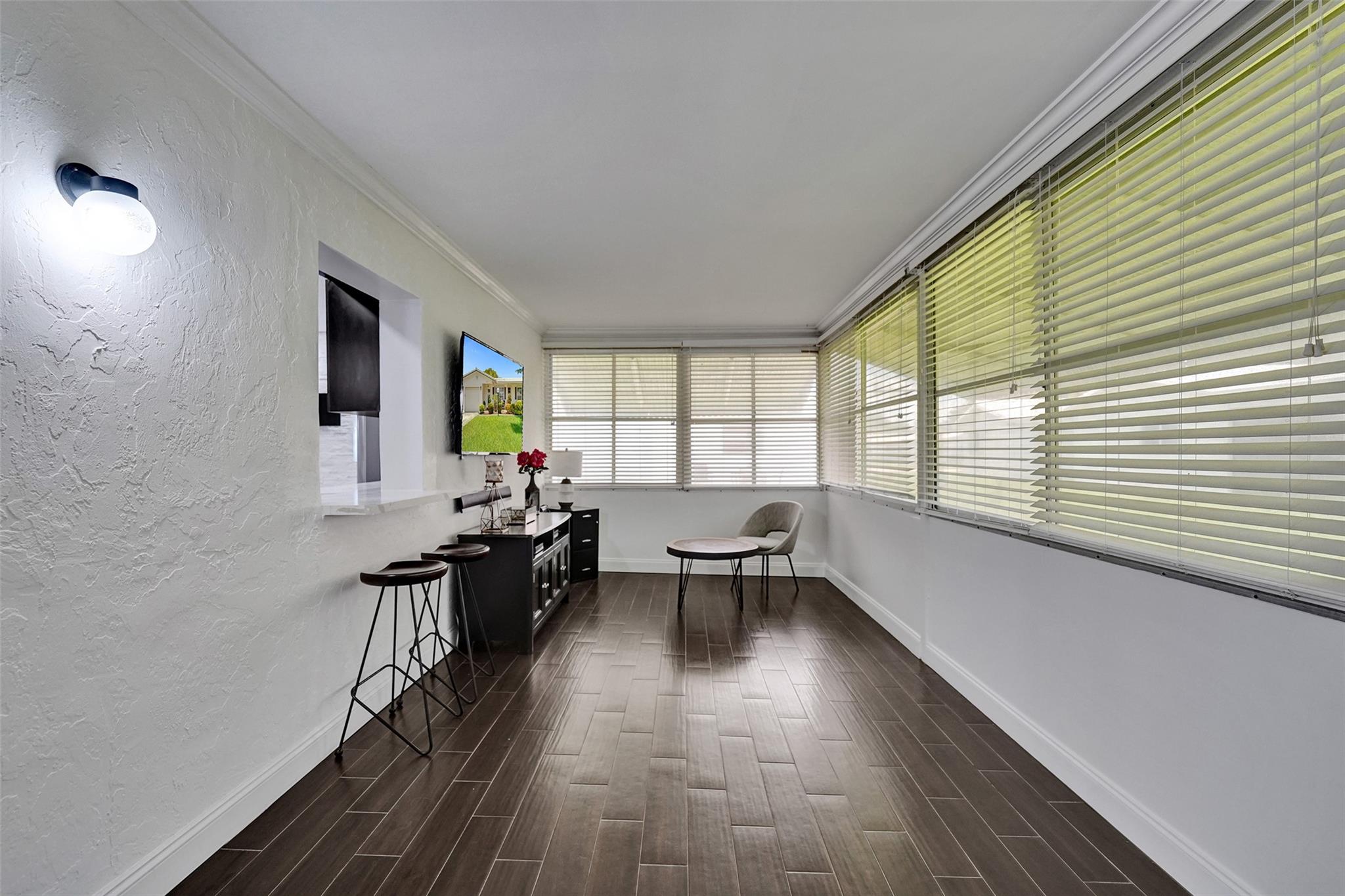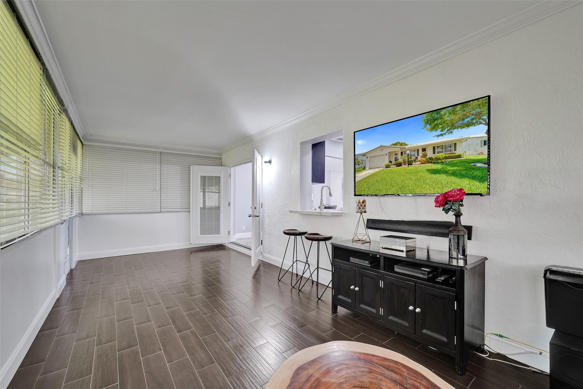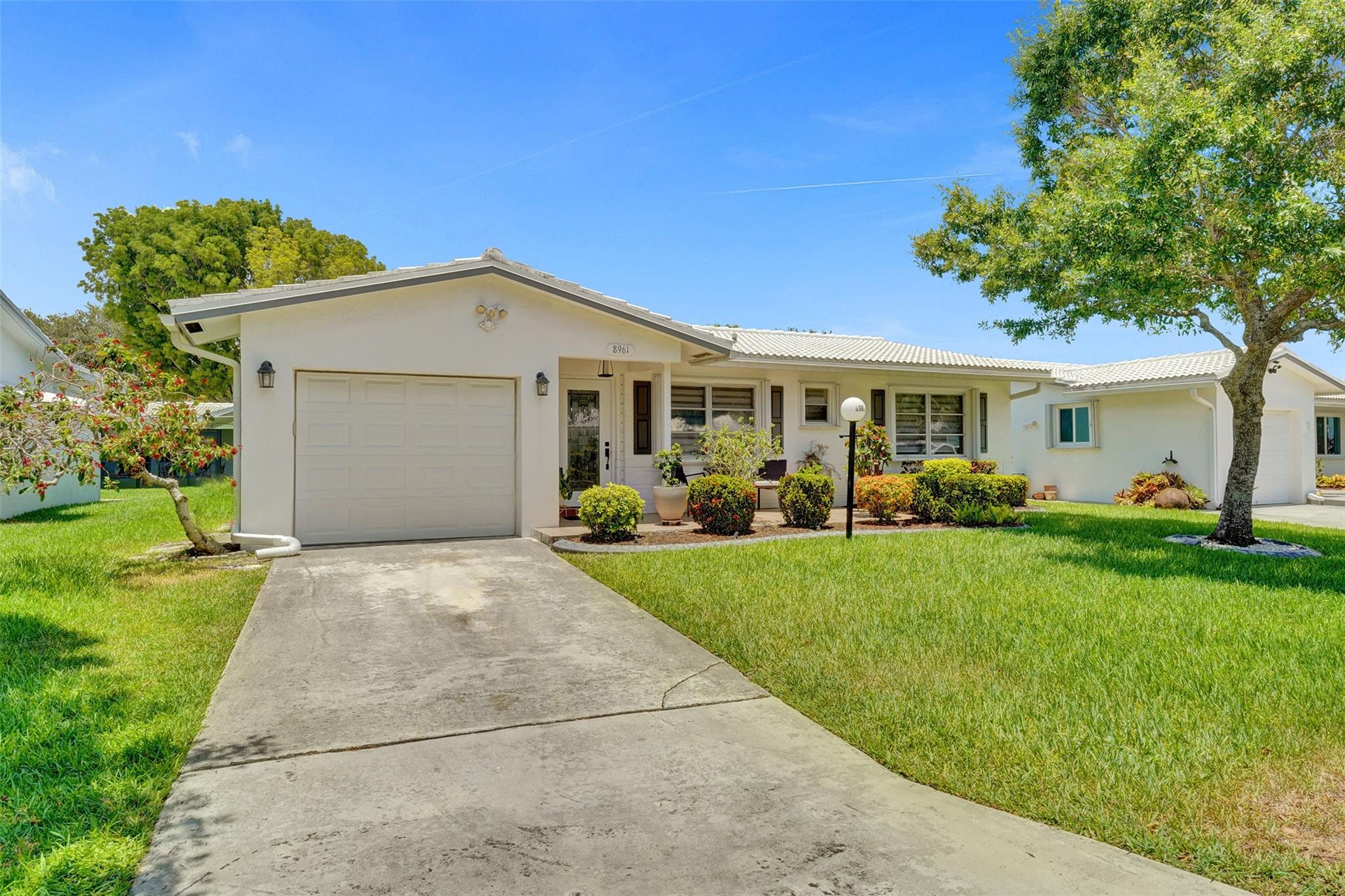 This amazing and move-in-ready 2-bedroom, 2-bathroom home with a one-car garage shows like a model. Nestled in a serene setting, it features accordion shutters and a new impact-resistant glass front door for peace of mind. The interior boasts exquisite waterproof vinyl flooring throughout, spacious walk-in closets, and newly remodeled bathrooms, and zebra curtains on windows. Enjoy the front porch or the inviting Florida room year-round. Additional highlights include a newer A/C unit and a roof that's 8 years old. The vibrant community offers two Olympic-sized pools, a fitness center, saunas, tennis courts, billiards, ping pong, and an active clubhouse with a courtesy bus. Association fees cover roof maintenance, exterior painting, lawn care, internet, cable TV, and more.