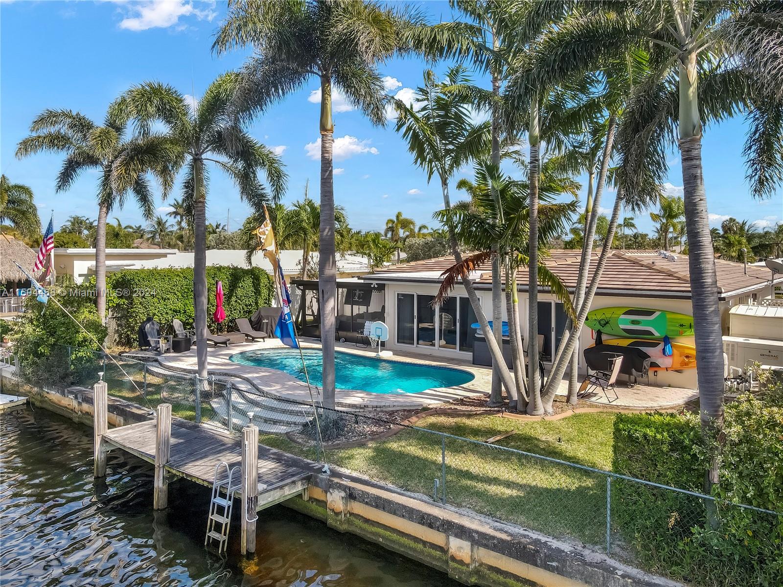 Beautiful waterfront home in a great neighborhood on a rare wide canal with amazing views. Relax in your screened in Lanai or your heated saltwater pool. Primary bedroom features a brand new spacious spa-like bathroom. Home features new roof 2023, new impact windows and doors 2022, natural gas whole house generator with automatic transfer switch and 75 feet of seawall. This is a 2 bedroom 2 bath house that recently had the 2 car garage converted into a room with a bathroom and a closet. There is a fixed bridge that has 10 feet of clearance at low tide that is now being raised approximately 27 inches. Details of this are on the City of Pompano Beach website. Home is conveniently located near the beach, Pompano Pier,restaurants,TopGolf and the new Harrahs casino.