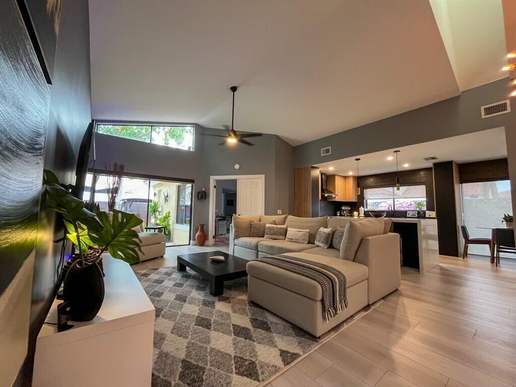 2 BED; DEN/3RD BEDROOM; 2 BATH SMART HOME IN ONE OF THE BEST NEIGHBORHOODS IN PLANTATION. OPEN CONCEPT HOME WITH 20FT VAULTED CEILINGS, SKYLIGHTS OVER DINING ROOM, MODERN KITCHEN WITH TONS OF STORAGE, HIGH-END APPLIANCES & QUARTZ WATERFALL ISLAND. SPACIOUS LIVING ROOM OVERSEEING THE BACKYARD. GENEROUS MASTER SUITE WITH BLACK-OUT SHADES, 2 WALK-IN CLOSETS & LARGE BATHROOM WITH MODERN SHOWER. SECONDARY SUITE WITH LARGE CLOSET AND ADJACENT FULL BATHROOM. NEW ENGINEERED WOOD FLOORS & FRESH LANDSCAPING. SMART 2 CAR GARAGE + 2 CARS ON PRIVATE DRIVEWAY. SECURITY SYSTEM WITH 8 CAMERAS, WATER, SMOKE, AND MOVEMENT SENSORS. SMART LIGHTS, MOTORIZED SHADES AND MANY MORE FEATURES.