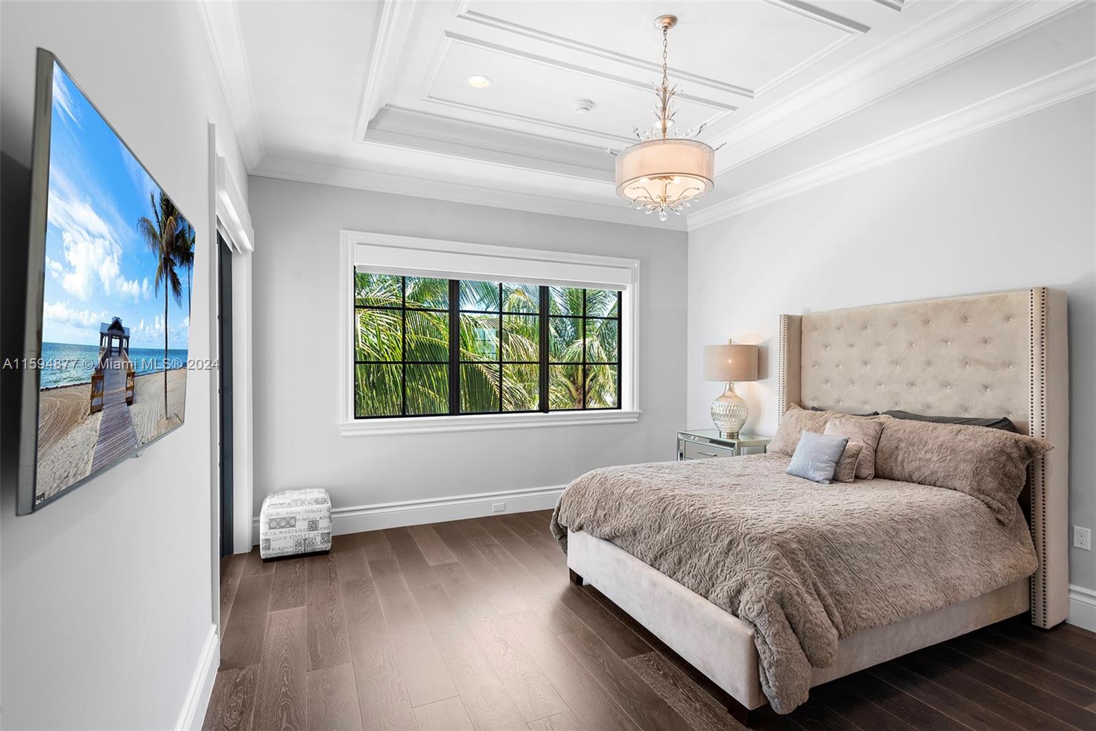 Welcome to an exquisite point lot estate in Coral Ridge Country Club, Ft Lauderdale. This SE estate boasts striking design, soaring ceilings, and 330' of waterfront, ideal for boaters. Custom finishes highlight the luminous open floor plan. Features include a grand great room, marble and wood floors, Crestron smart home system, VIP suite, gym, club room, loft, theater, and elevator. The chef's kitchen, with quartzite countertops, butler's pantry, and top-of-the-line appliances, flows into the family room. Expansive pocket doors enhance indoor-outdoor living. The primary suite offers water views, a sitting area, and dual bathrooms with a soaking tub and spa shower. Outdoors, enjoy covered areas, a pool, and a gourmet summer kitchen.