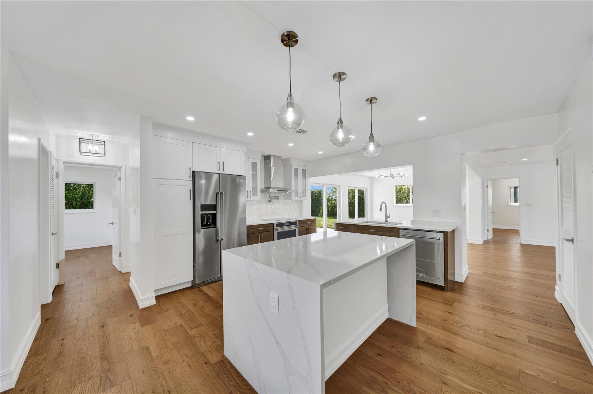 GREAT PRICE BELOW APPRAISAL VALUE; Redone 3BR/2BA home w/PERMITS boasting a 2car gar. w/new appliances, roof, floors, impact windows, doors & MORE! This modern open-concept layout is one you must see to believe. Located in the desirable community nr Imperial Point, this residence is conveniently located less than 2 miles from Fort Lauderdale Beach in close proximity to Westminster Academy .8mi., away, Pine Crest School 1/2mi., US1 1mi., beaches 2.5 mi. The fully fenced private oversized backyard offers ample space for entertainment and even the possibility of adding a swimming pool. With strategically placed Google Nest cameras surrounding the exterior, enjoy peace of mind knowing your home is under constant protection, allowing you to focus on what matters. Nothing to do here but move in!