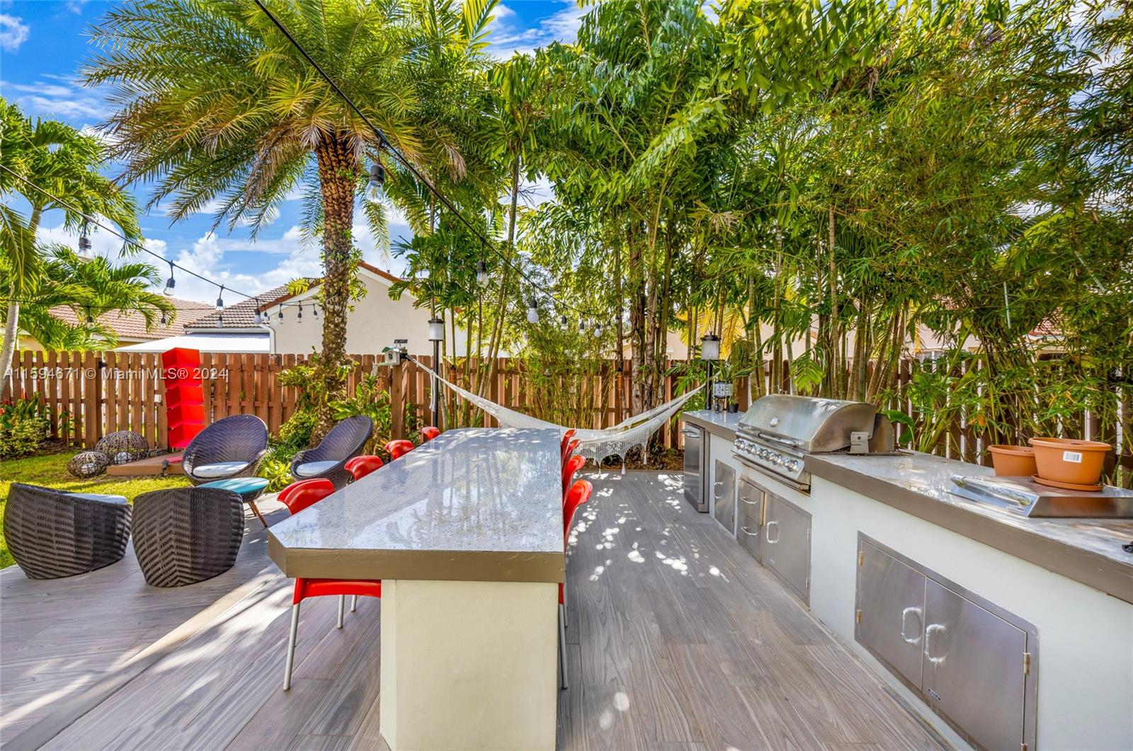 Beautifully remodeled home in the Falls neighborhood. Spanish tiles, impact doors and windows, and a brand new tile roof (2024). Integrated living room with new kitchen cabinets with Swiss hardware and brand new appliances is next to the sliding doors providing ample light when hosting your friends and family! 4 bedrooms/3 baths with a huge den on the first floor which can be an office or an extra bedroom. Outdoor deck with built-in barbecue is perfectly integrated to the house through the sliding doors.
