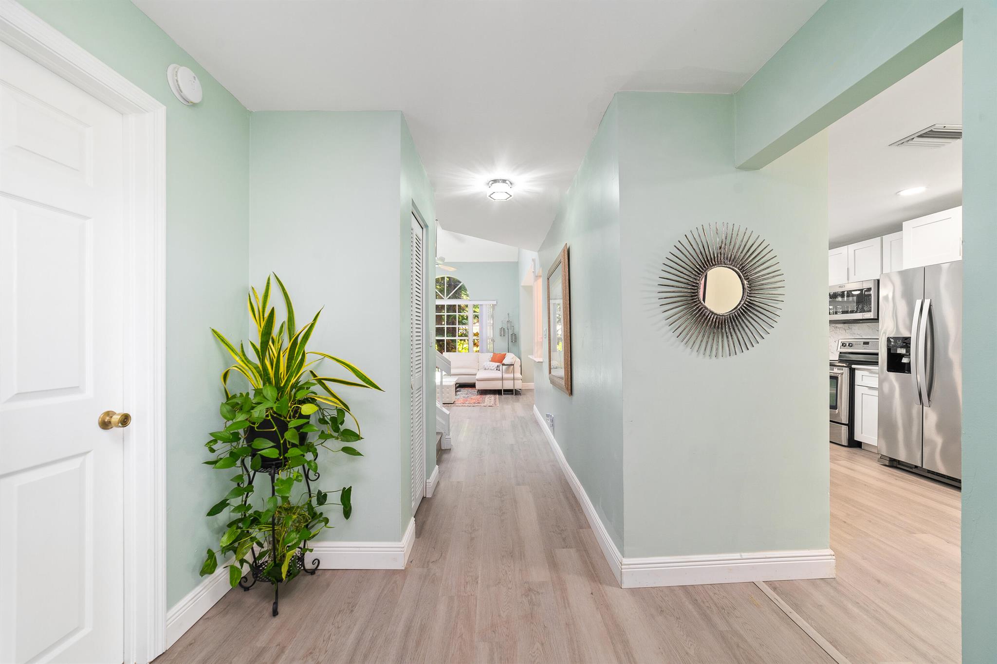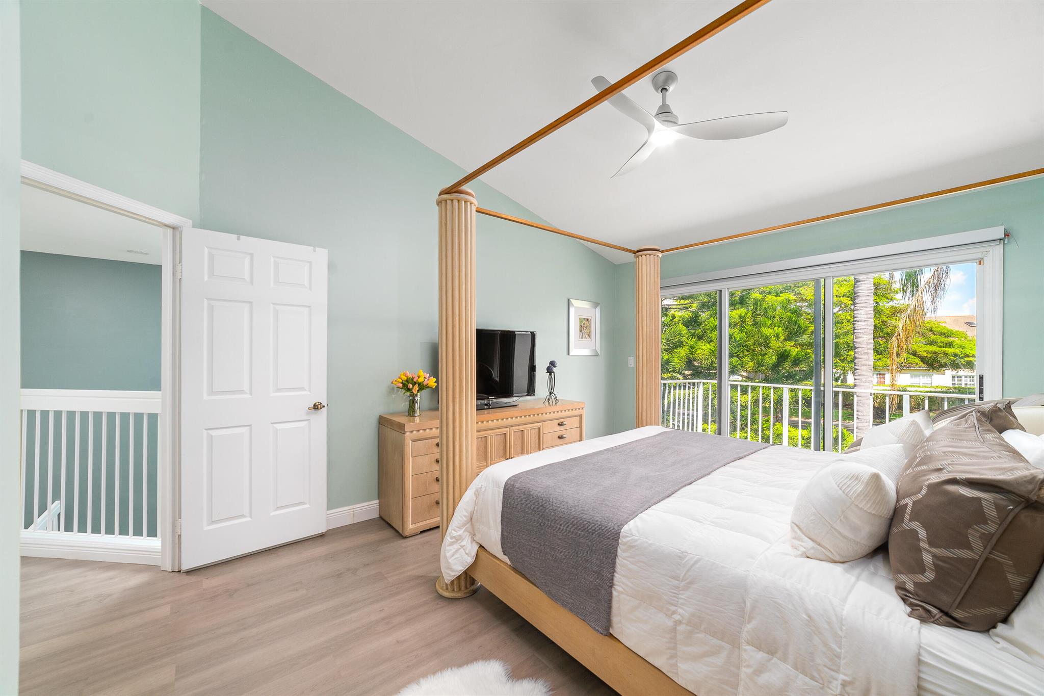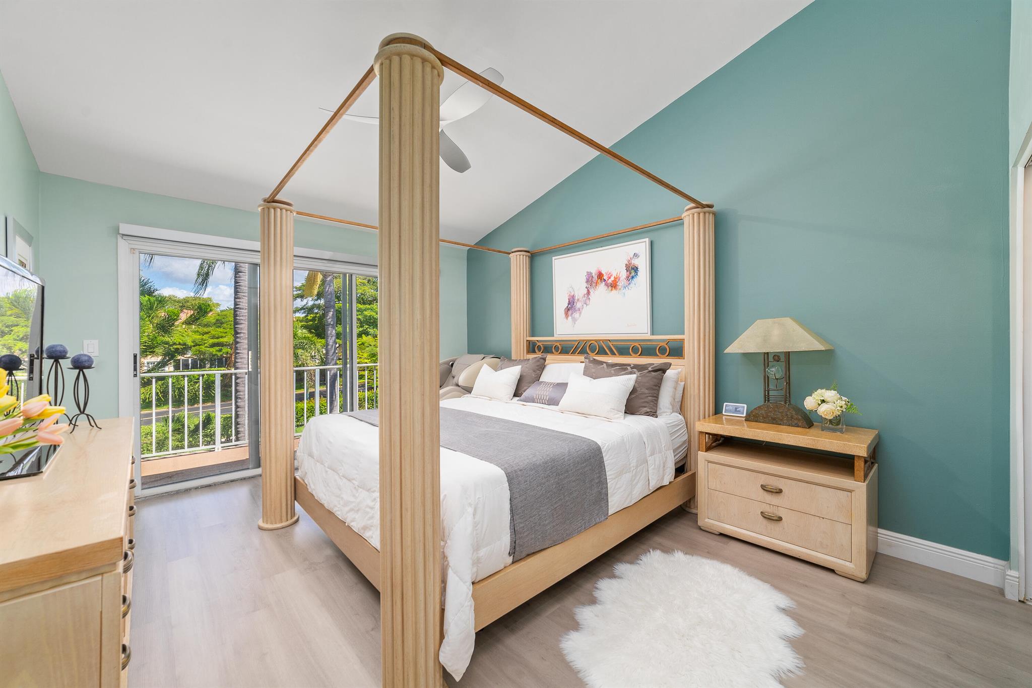 Presenting a stunning and charming 3-bedroom, 2 1/2 bathroom townhome nestled in the prestigious Greens subdivision of Boca Golf & Tennis Club. This meticulously renovated residence exudes sophistication and elegance, boasting upgraded quartz countertops, new cabinets, and stainless-steel appliances in the kitchen, which seamlessly opens to the dining area flooded with natural light. The airy and luminous interior features high vaulted ceilings and expansive windows that create a welcoming ambiance throughout. Recent upgrades include a new roof, new engineered hardwood flooring throughout the entire home, and all bathrooms are completely and tastefully remodeled. Enjoy outdoor living in the screened lanai accessible through sliding glass doors from the kitchen. The laundry area, equipped