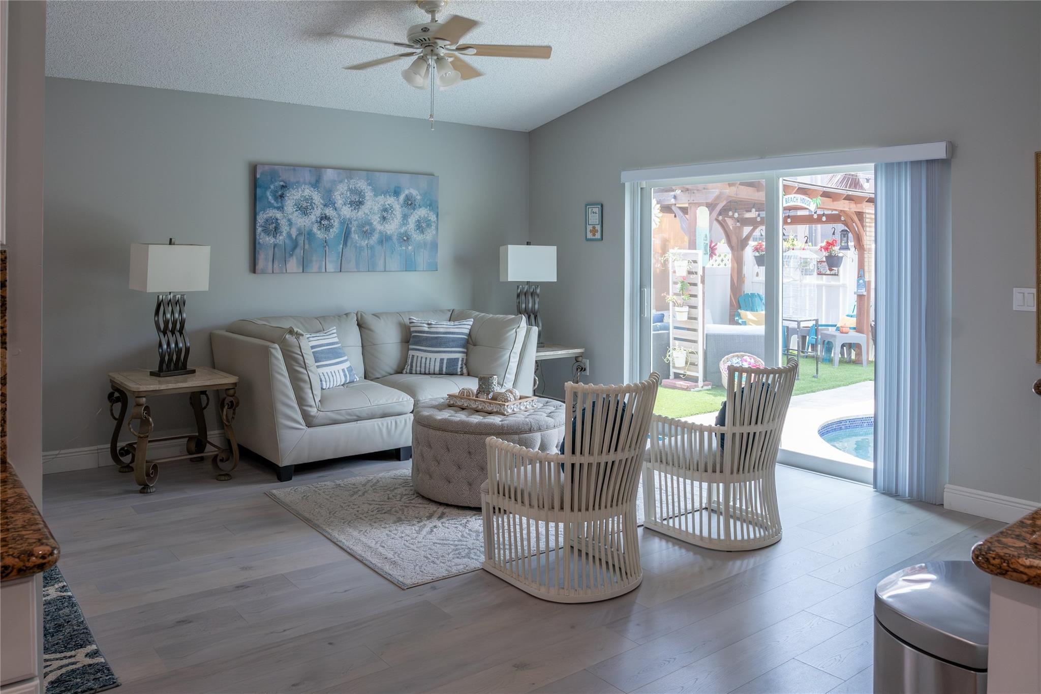 Single family home in Pine Crest a gated community located in Coral Springs. 3 bed 2 bath home has laminate wood floor and carpet in the bedrooms, and a stunning kitchen with granite countertops & stainless steel appliances. Master bedroom features a walk-in closet, and a master en-suite with a separate shower, tub & dual sinks. Open feel with vaulted ceilings, light, bright & spacious. The home features a peaceful retreat area in the backyard with a shaded gazebo and a beautiful private pool with artificial turf that requires no maintenance. The home features a paved driveway leading up to a 2-car garage, AC was installed 5 years ago. Combination of hurricane-proof windows, hurricane-proof sliding doors, and accordion shutters. Laundry room indoors. Fenced backyard. Low HOA!