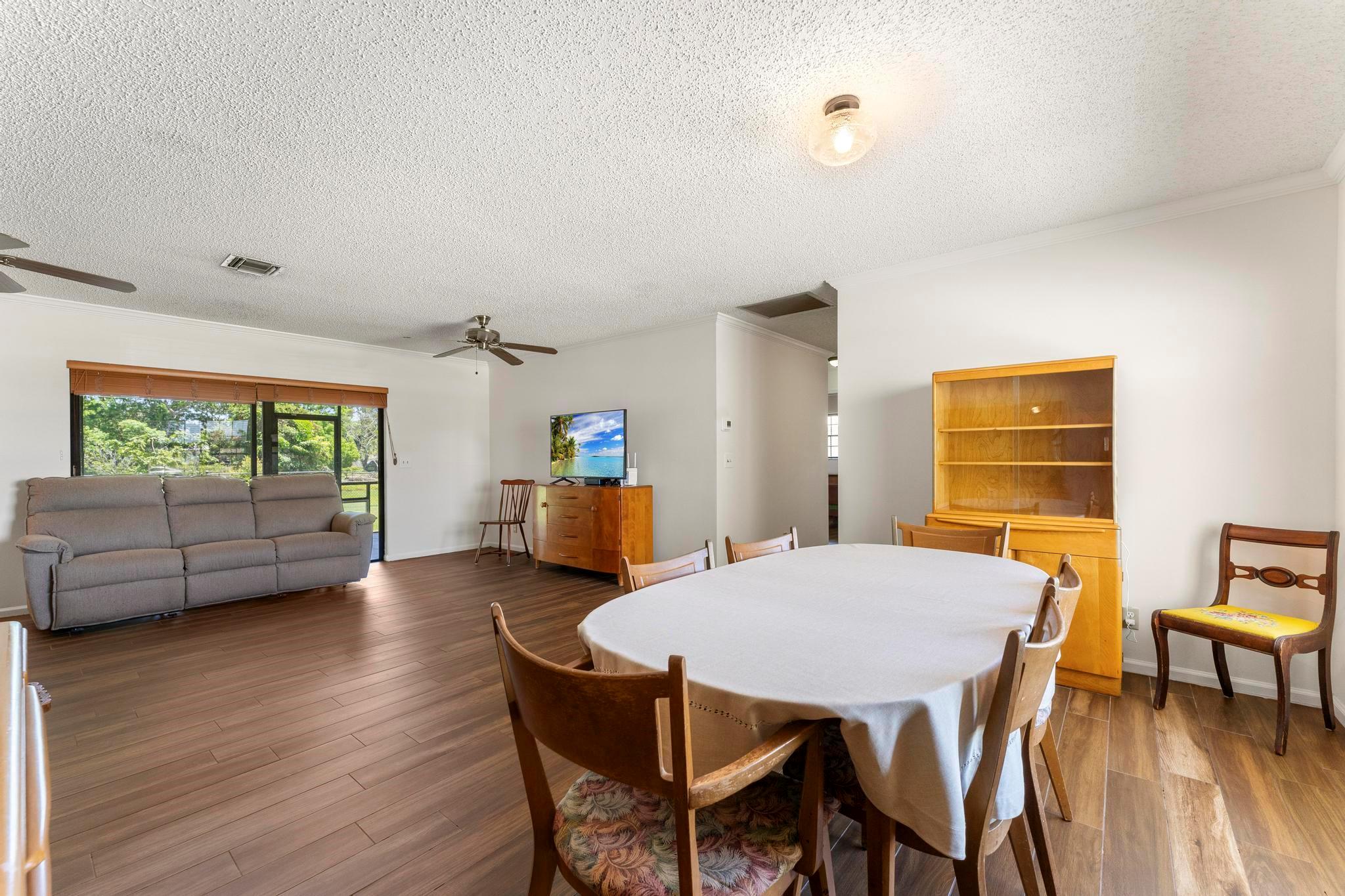 Welcome to this inviting 3-bedroom, 2-bathroom home with a 1-car garage and no HOA! Inside, you'll find beautiful wood tile flooring throughout and a spacious living room, perfect for welcoming your guests. The updated kitchen features stylish wood cabinetry, granite countertops, tile backsplash, and a convenient pantry for extra storage. The generously sized primary bedroom offers a walk-in closet. Enjoy outdoor gatherings in the screened patio or in the large backyard. This charming home is ready to welcome you!