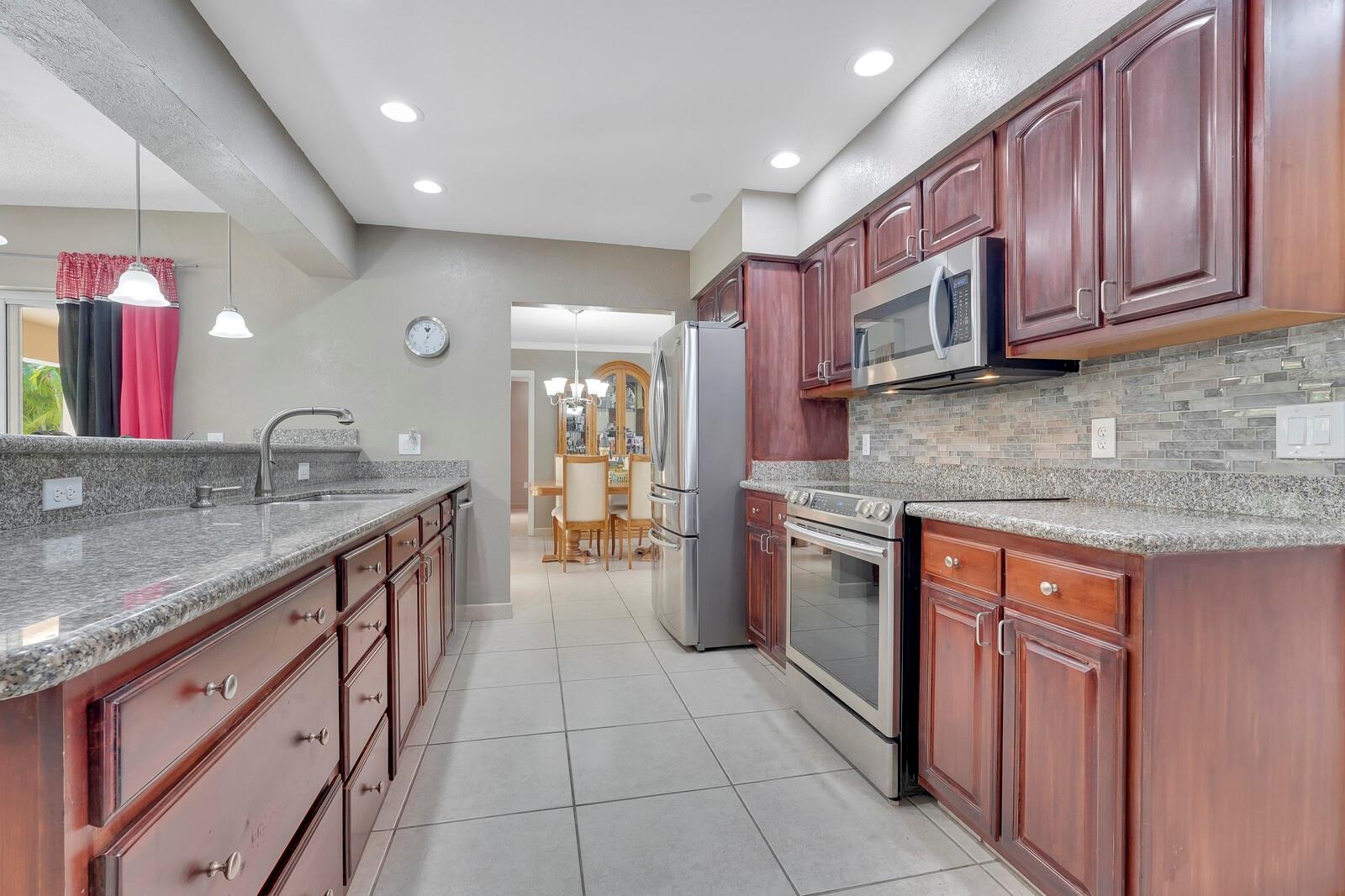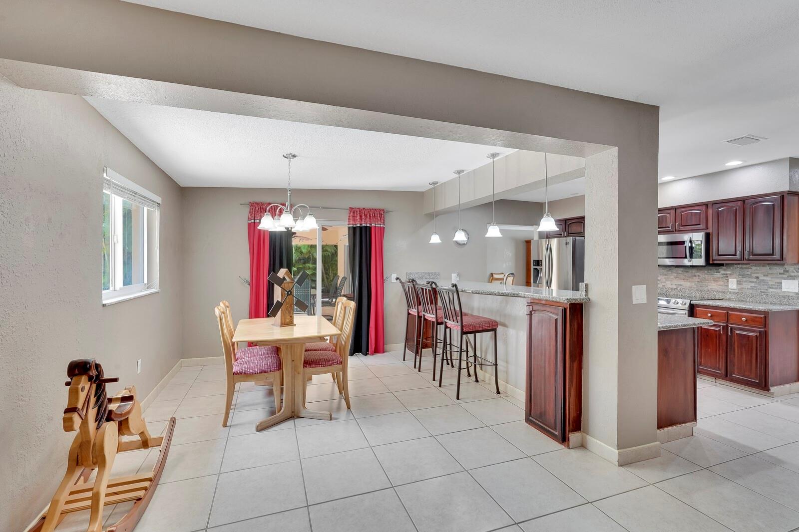 A stunning POOL home is nestled on a quiet cul-de-sac with no HOA. The home boasts a split floorplan with ceramic tile throughout. The layout includes TWO living spaces for versatility. The renovated kitchen has granite countertops, cherrywood cabinetry, SS appliances, & a large breakfast bar. The concrete cool deck wraps around an oversized pool, complemented by a brand-new pool pump (2024) & newer solar panel pool heating (2020). This home comes with numerous upgrades including hurricane impact windows, new exterior paint (2024), a tankless water heater (2018),& separate well water irrigation. *List of upgrades is available. Conveniently located near the Sawgrass Expressway, this property ensures an easy commute & access to top-notch schools, shopping, dining, & entertainment.