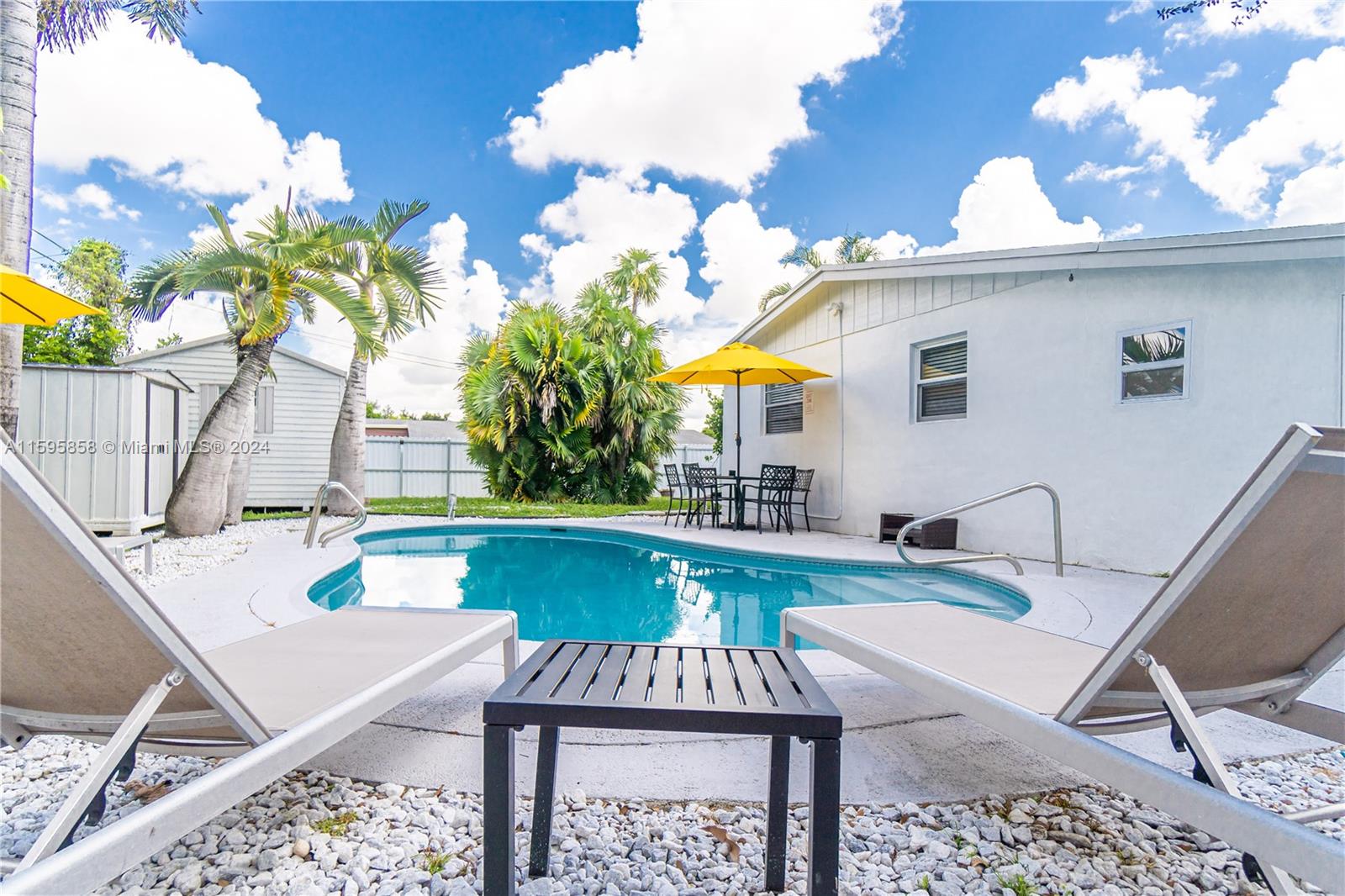 Welcome to this spacious pool home, offering 3 bdrms/2 baths, situated on a generous 7000+ sq ft lot. Upon entering, you'll be greeted by bright & inviting lvg areas w/ tile floors that flow seamlessly throughout the house. The updated kitchen is sure to impress, boasting modern features & ample space for culinary endeavors. The baths have also been tastefully updated, adding a touch of luxury to your daily routine. This home is equipped w/ a newer AC system & most of the windows have been upgraded to impact-resistant glass, providing peace of mind and enhanced security. Storage is plentiful w/ the added convenience of a permitted 12 ft shed. Step outside to discover your own private oasis—a sparkling pool awaits, offering a space to entertain friends & family. Don't miss this opportunity!