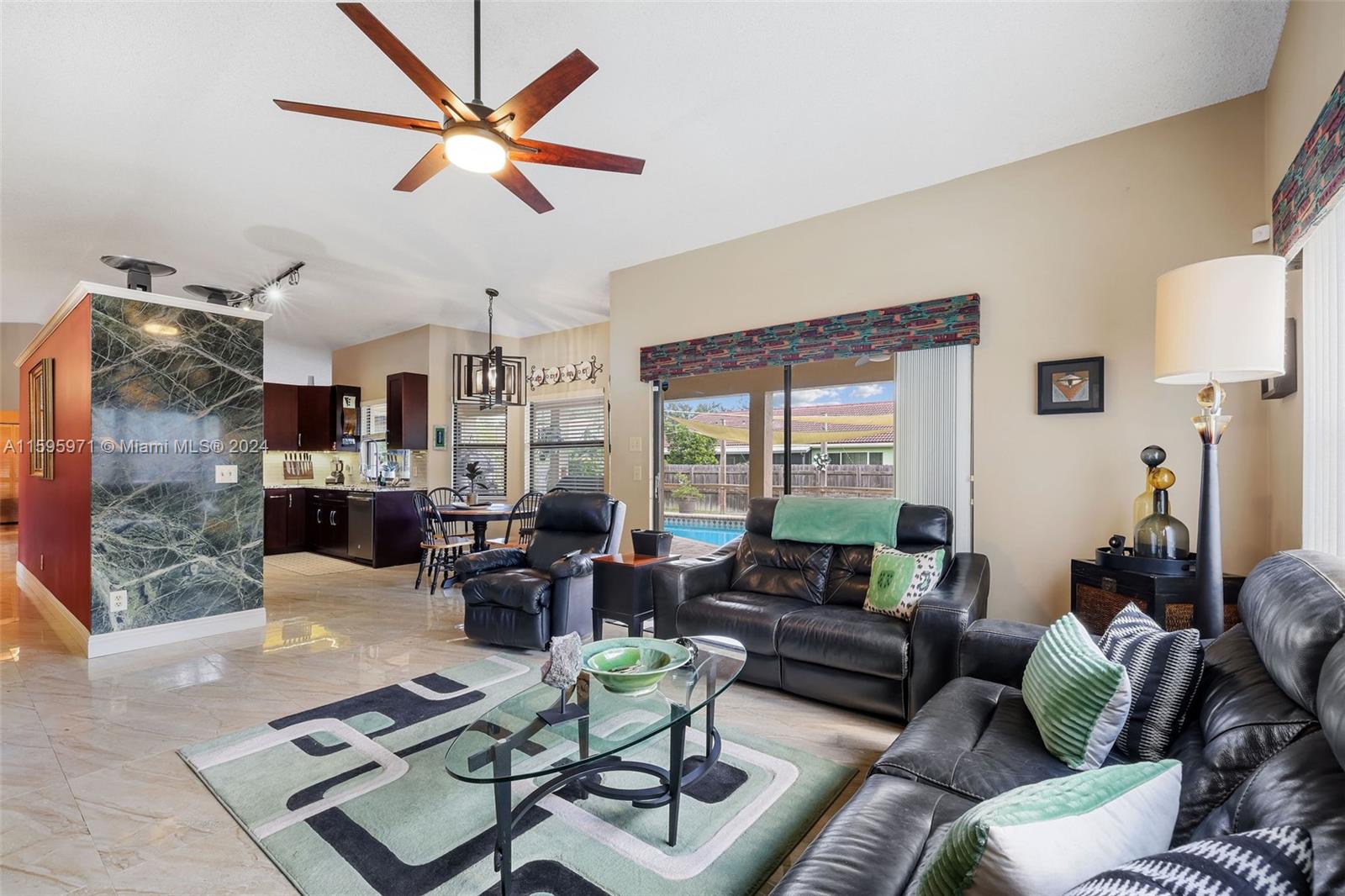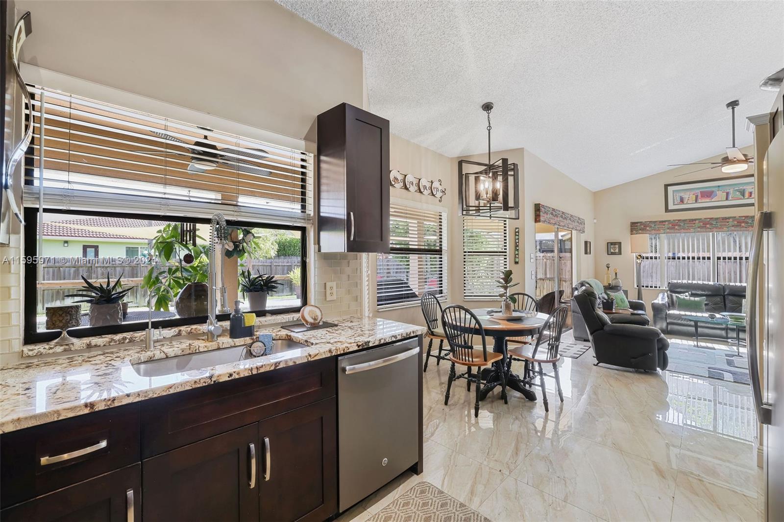 Welcome home to this immaculately kept 3 bedroom, 2.5 bath home featuring updated kitchen and appliances, updated large tiles (approx 32 inches) throughout living areas, carpeted large bedrooms. Roof was replaced approximately 9 years ago. Large, sprinklered, well kept lawn approx. 110 x 100 lot. Enjoy Beautiful backyard and open pool from your roofed patio. Spacious Laundry room plus a functional 2 car garage.